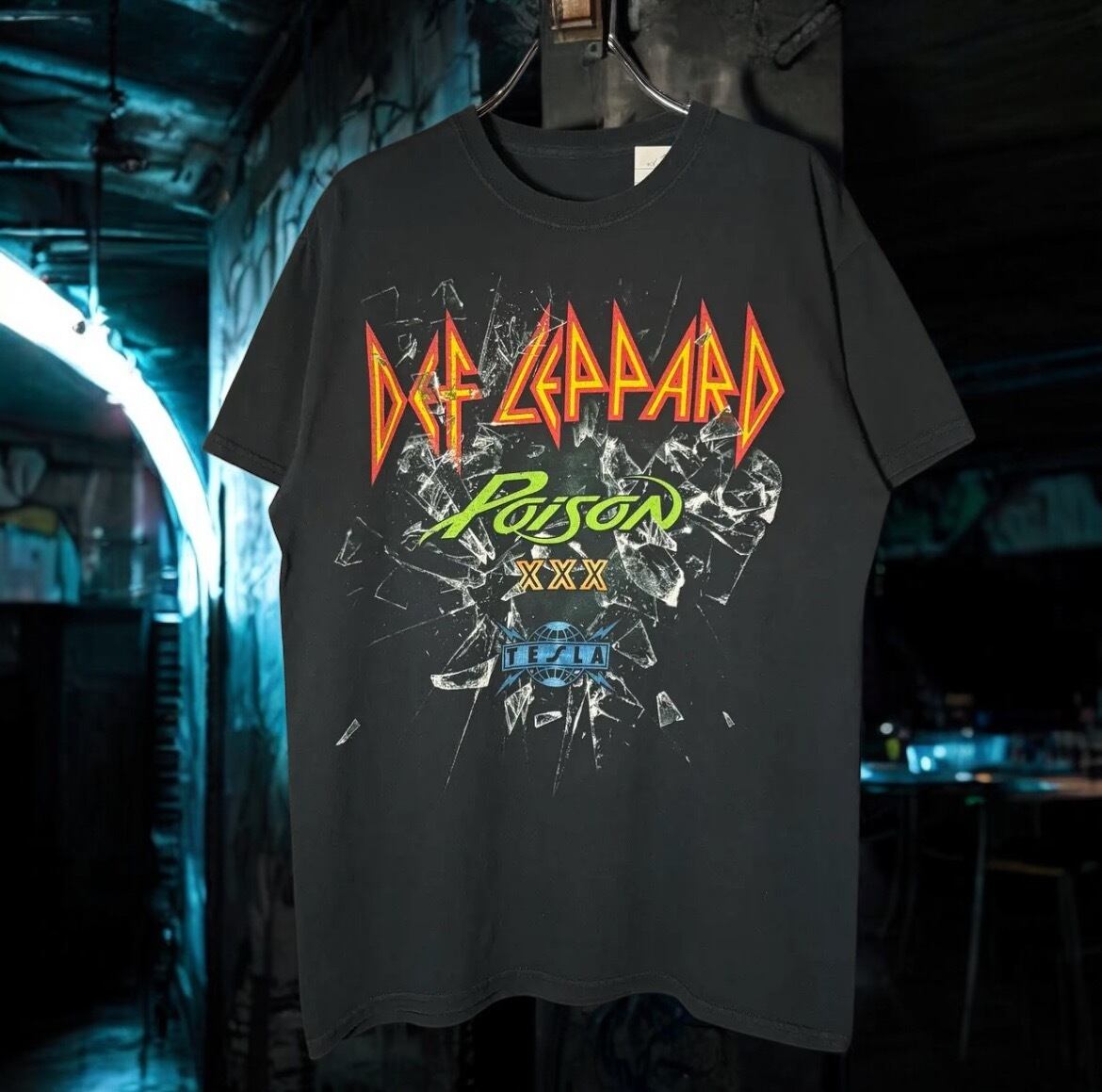 伝説的ロックバンド Def Leppard に加え、Poison、Tesla という豪華ラインナップによる2017年ツアーTシャツ。