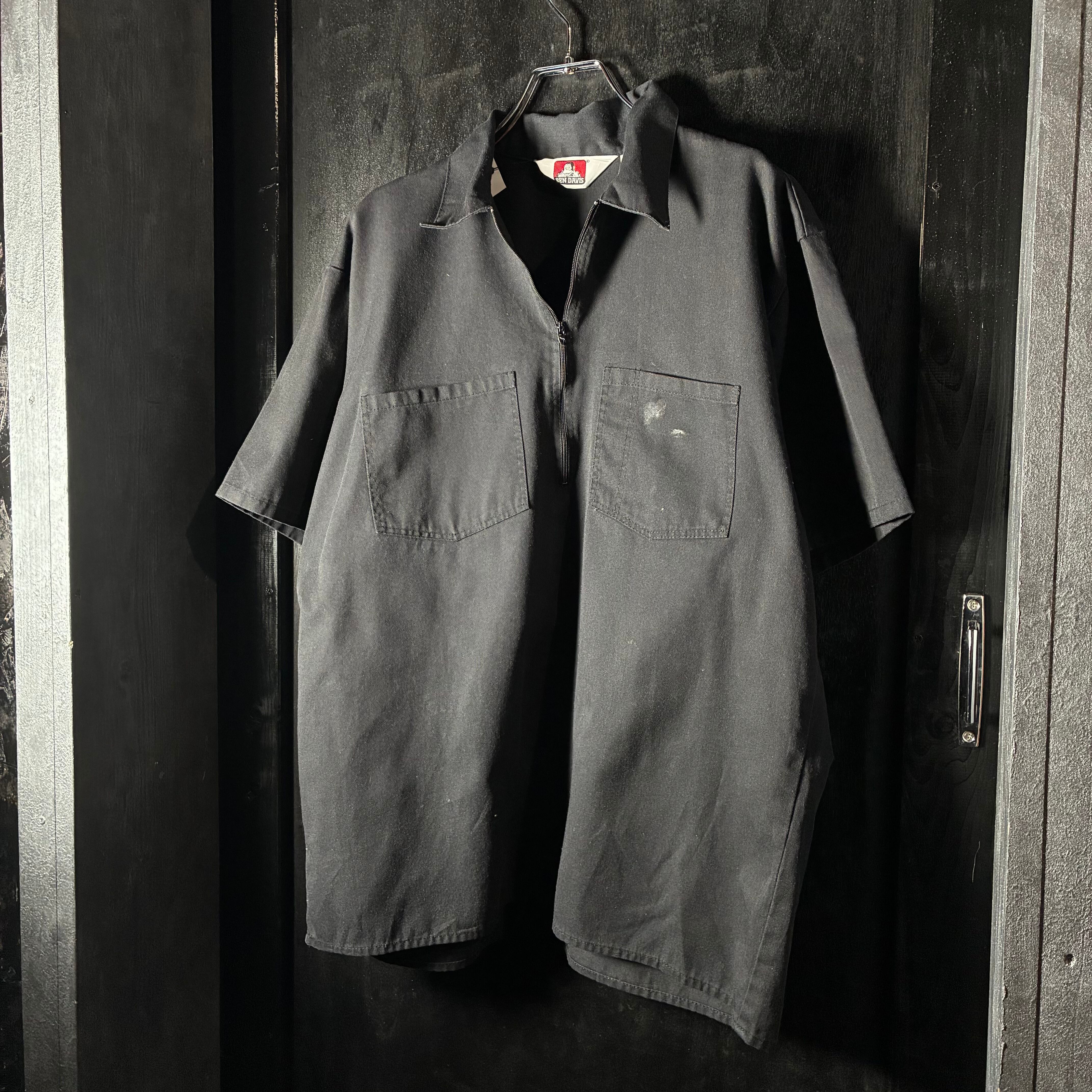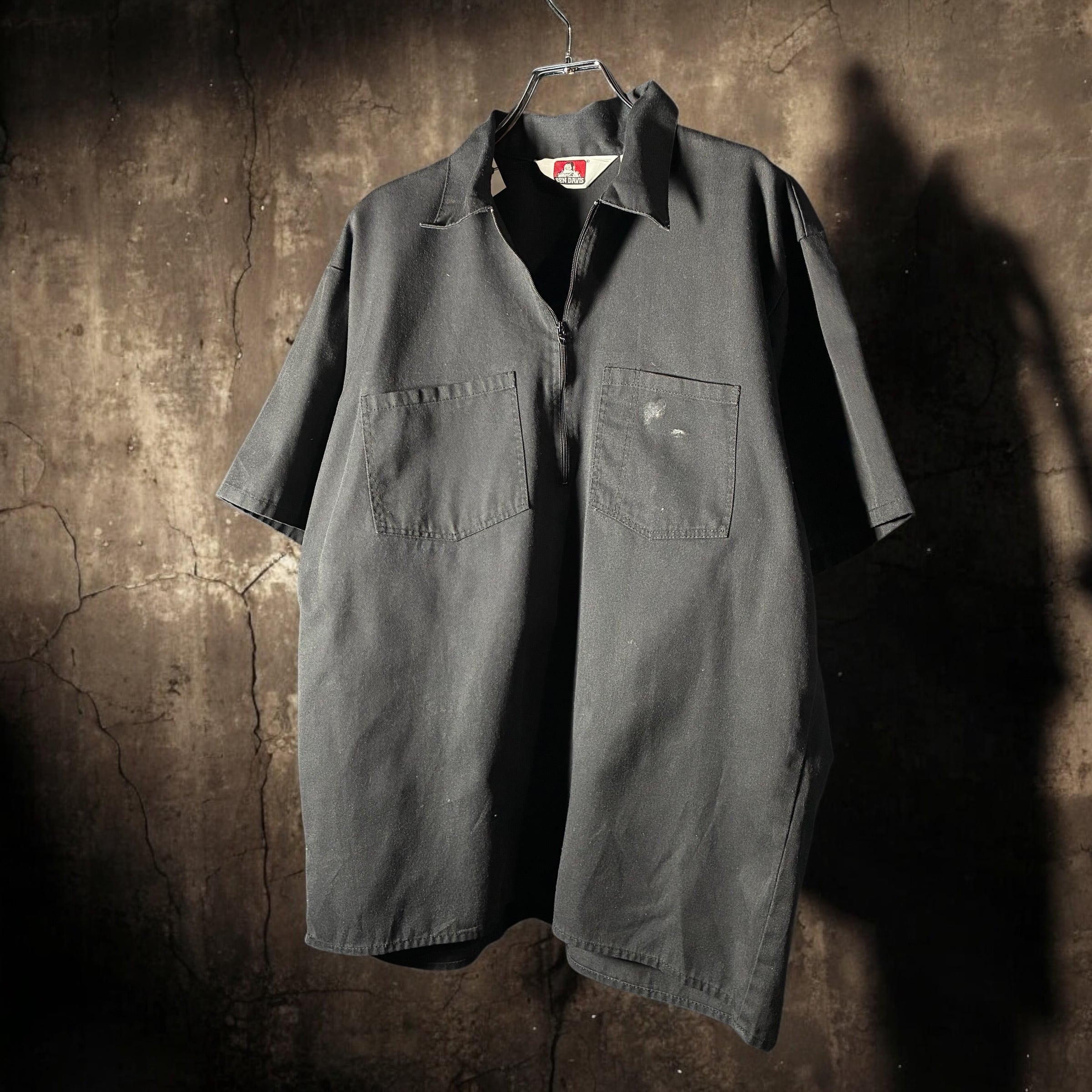 【90s MADE IN USA】BEN DAVIS ハーフジップワークシャツ ベンデイビス 黒 L