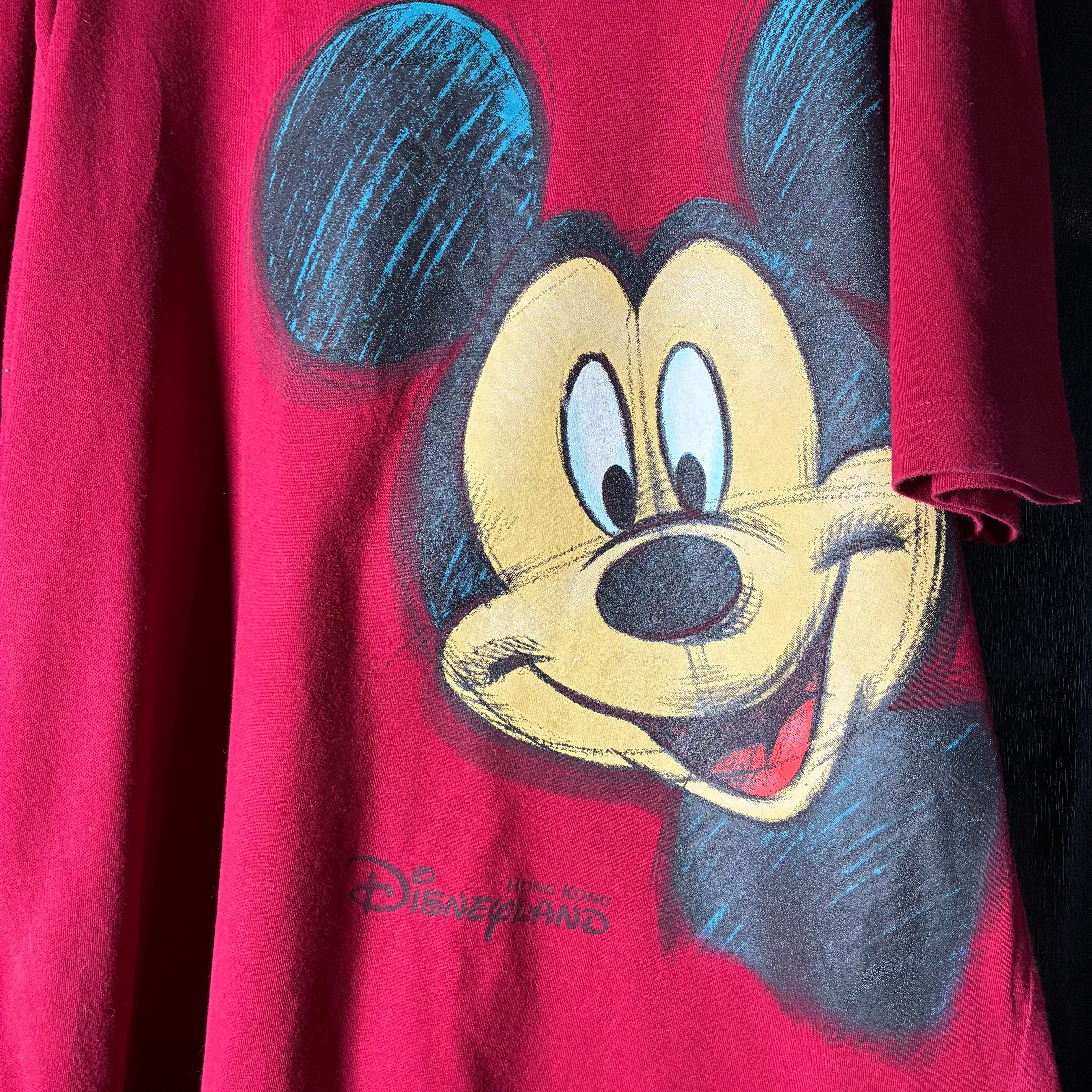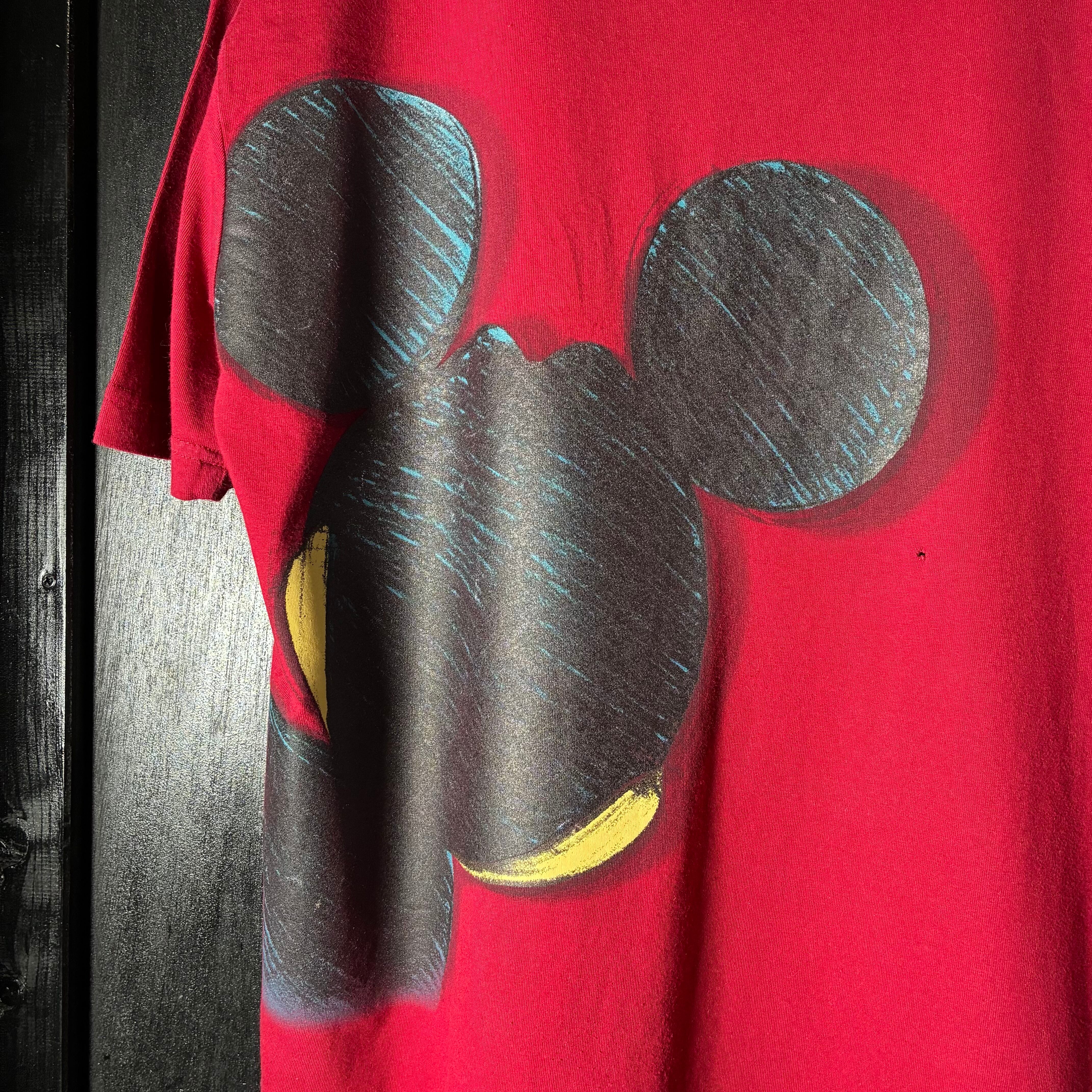 鮮やかなレッドボディに、ビッグサイズのミッキーマウスフェイスを大胆にプリントした一枚
