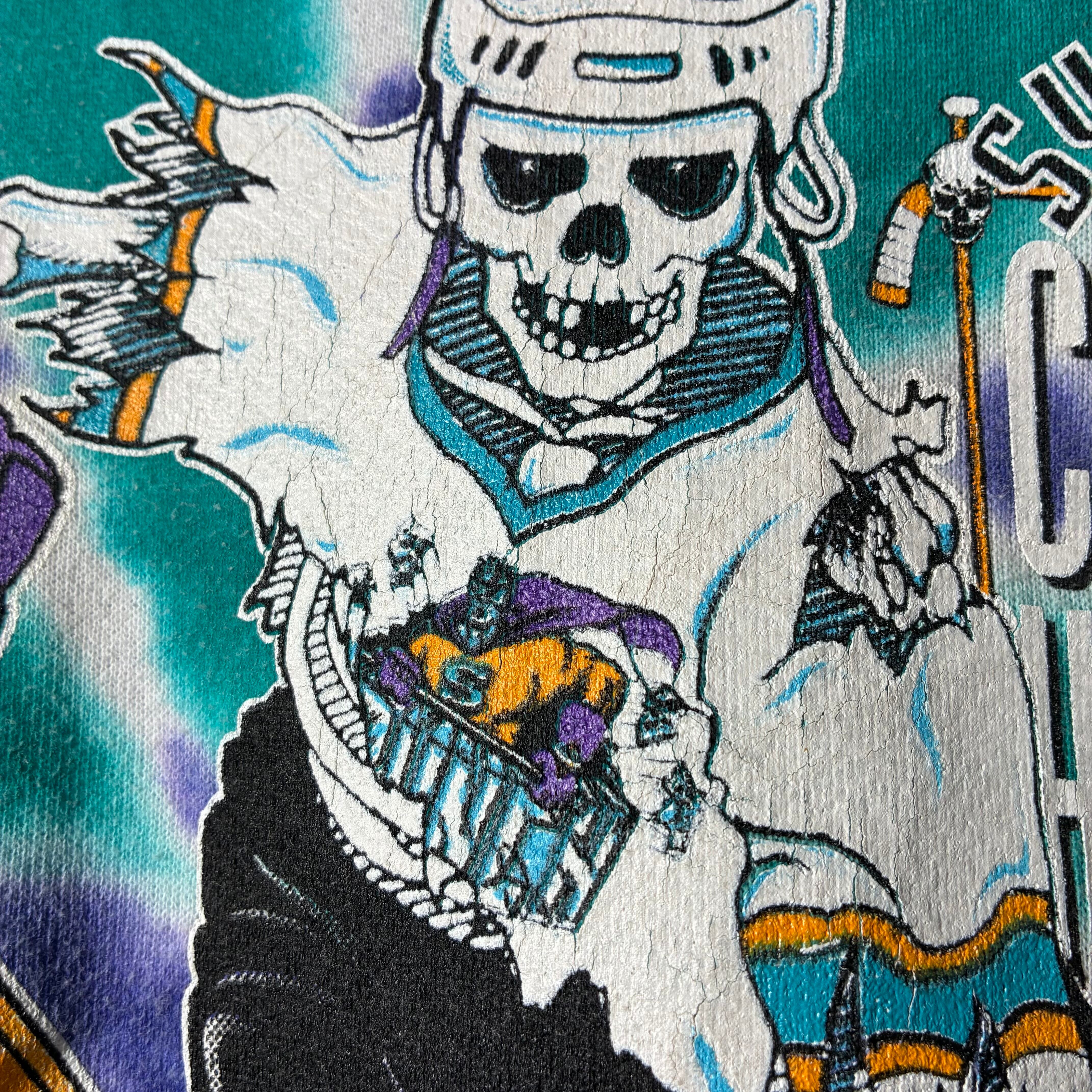 【90s USA製】JERZEES タイダイ染スウェット 骸骨ホッケー スーパーマン