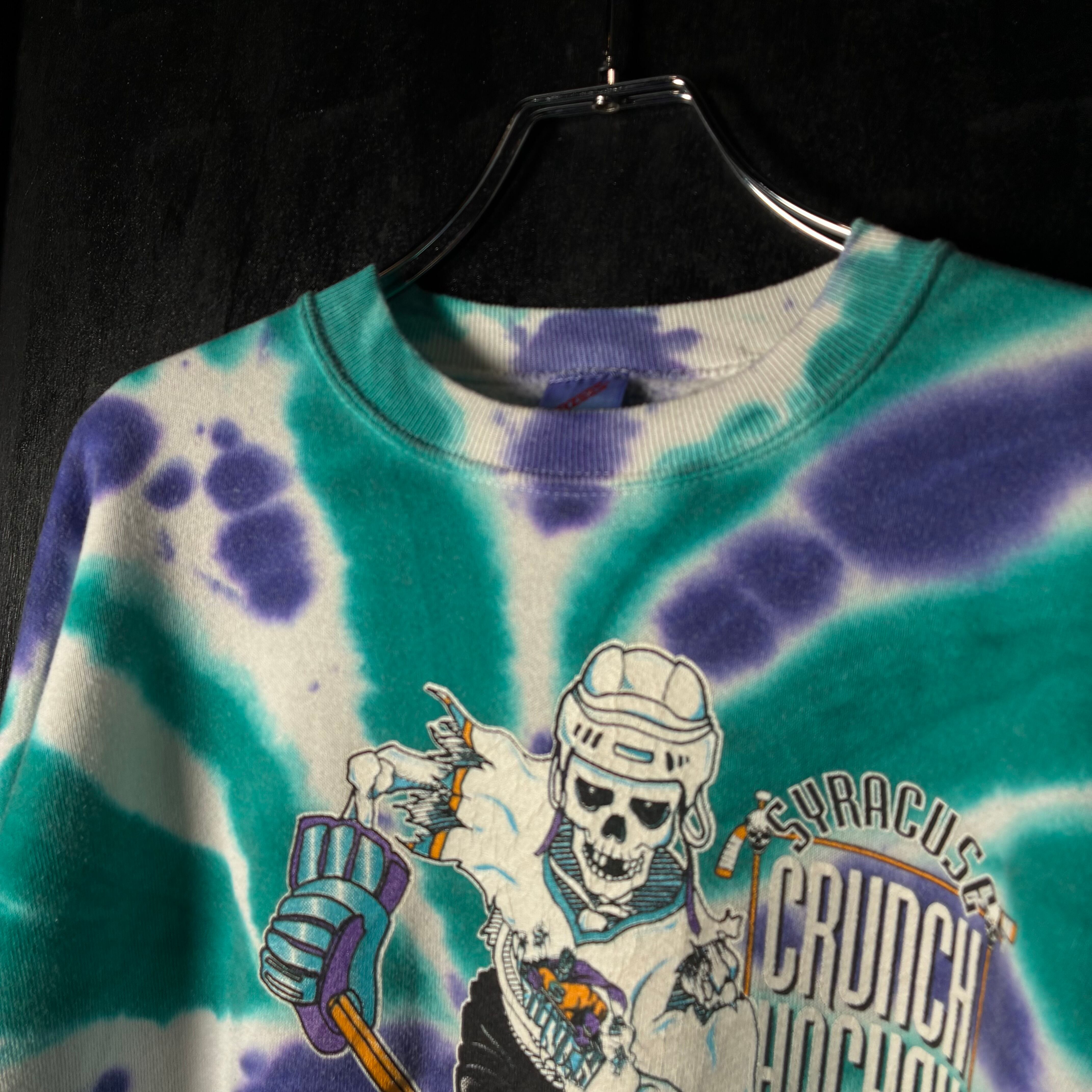 90s Jerzees製 Made in USA ボディを使用した、Syracuse Crunch Hockey のタイダイ・スウェット。