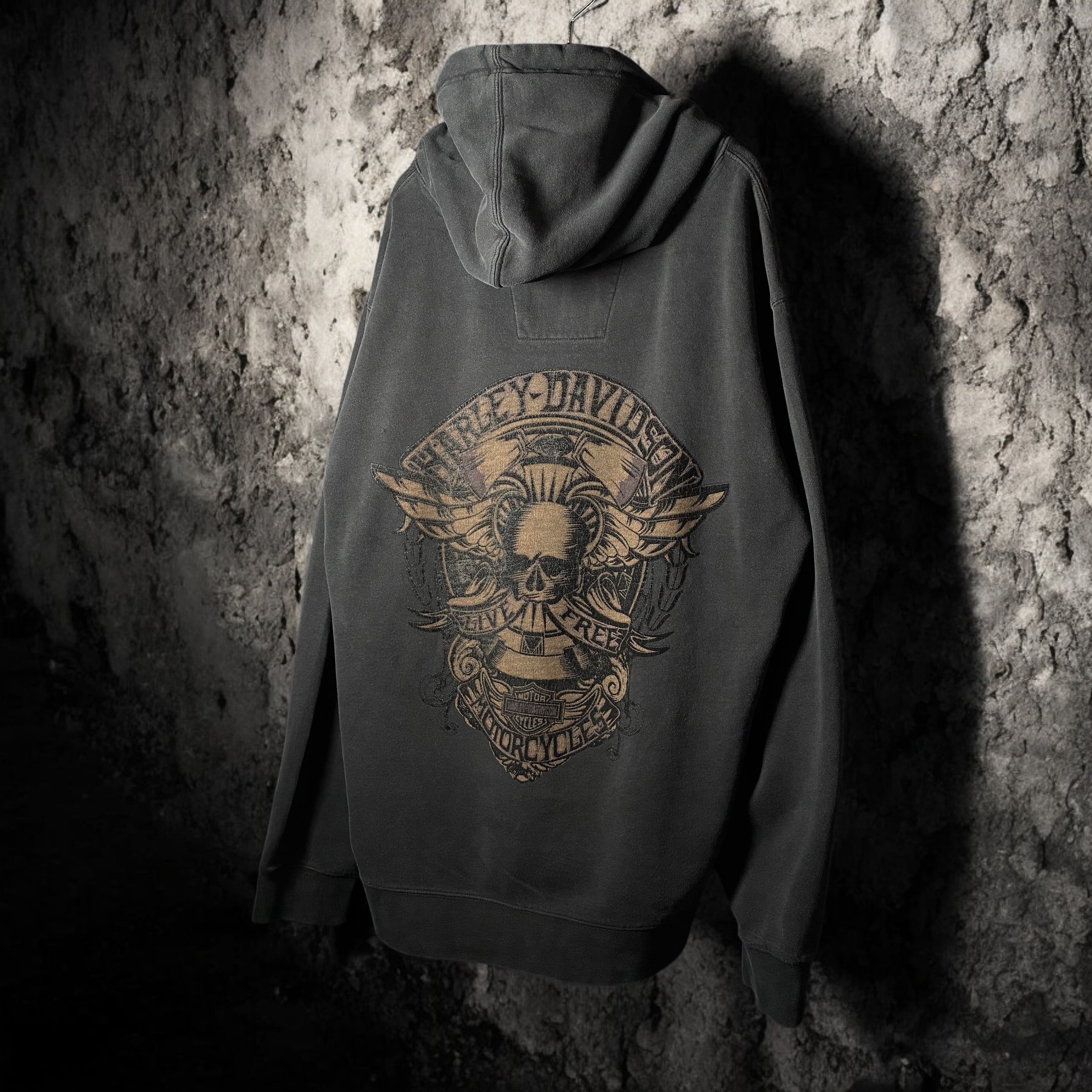 HARLEY-DAVIDSON プルオーバーパーカー Y2K ドクロ ベロア Vネックカスタム 黒