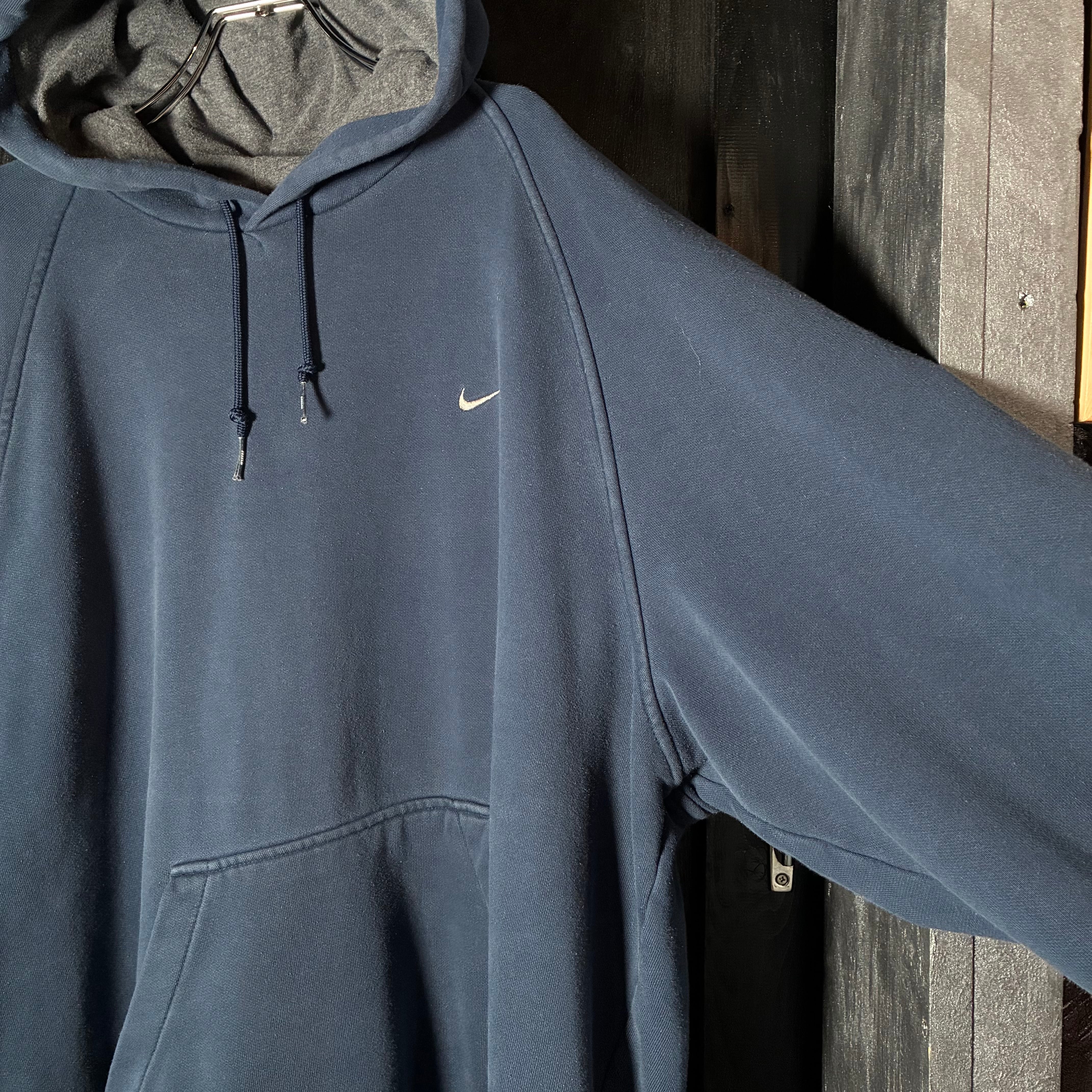 00s NIKE プルオーバーパーカー ラグラン ネイビー ワンポイント刺繍スウィッシュ XL