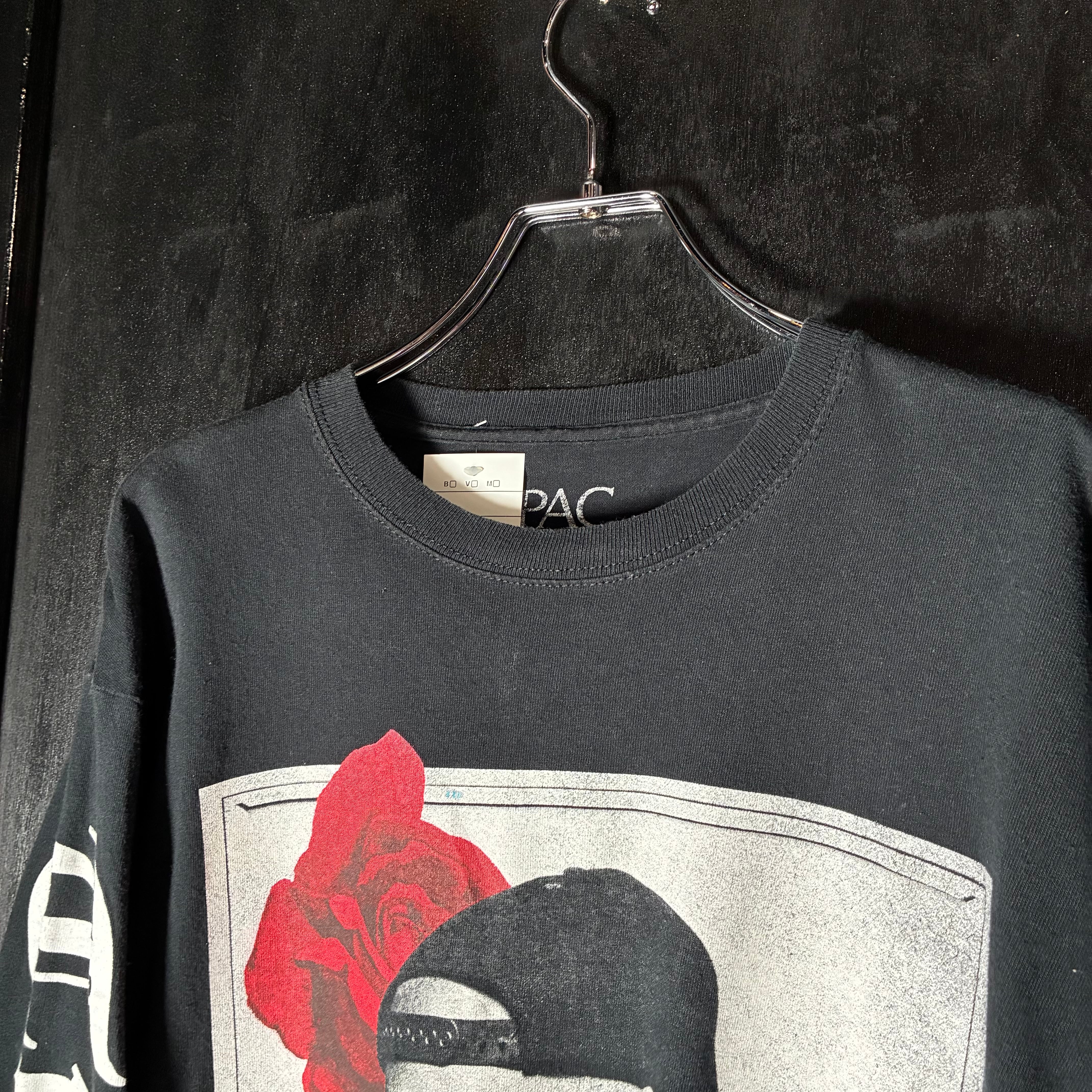 胸元には赤いバラとともに2PACの横顔がフォトプリントされ、袖プリントも高得点!