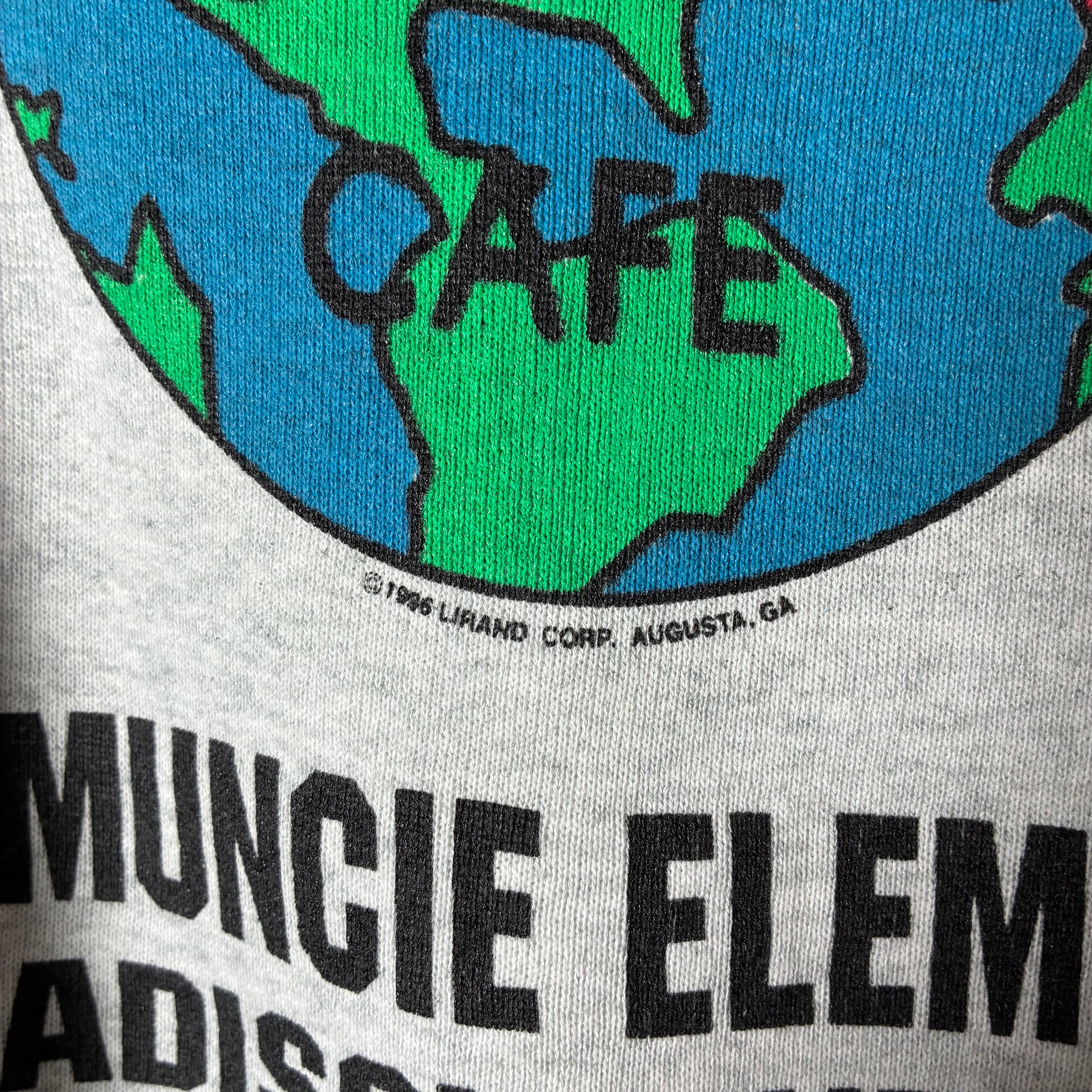 90年代らしい遊び心あふれるパロディデザインのスウェット。