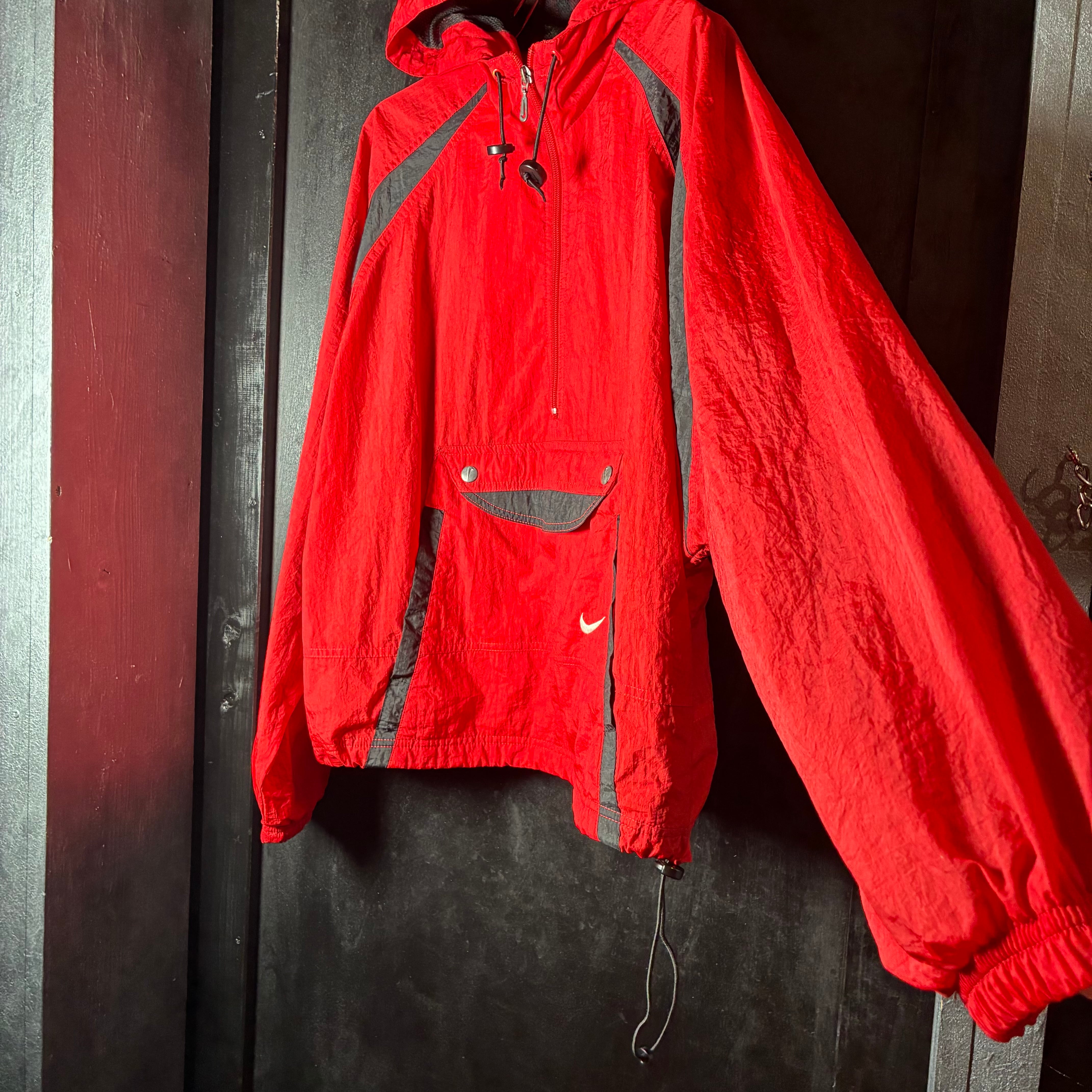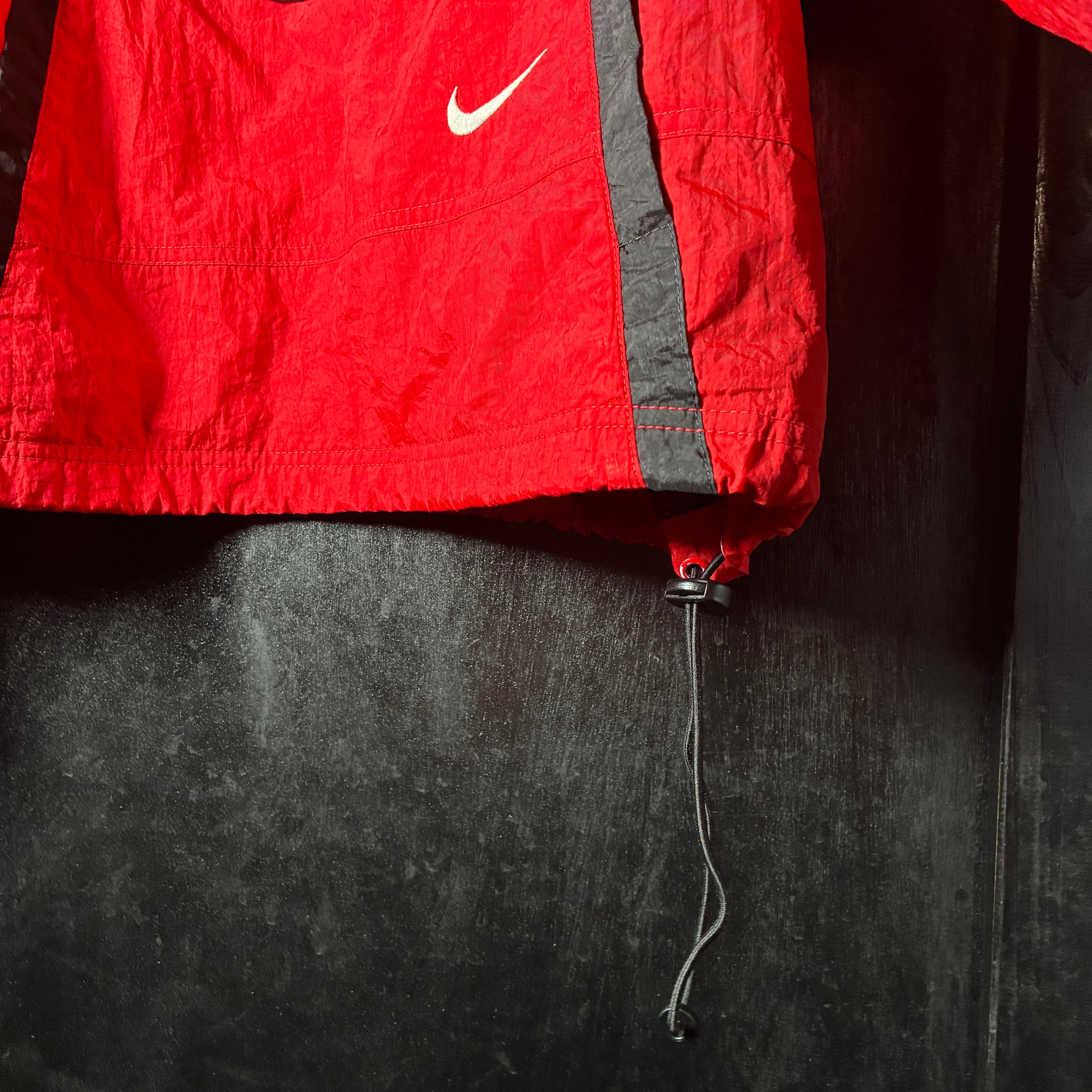 90s NIKE ハーフジップ ナイロンアノラック 赤黒 短丈ドローコード ナイキ