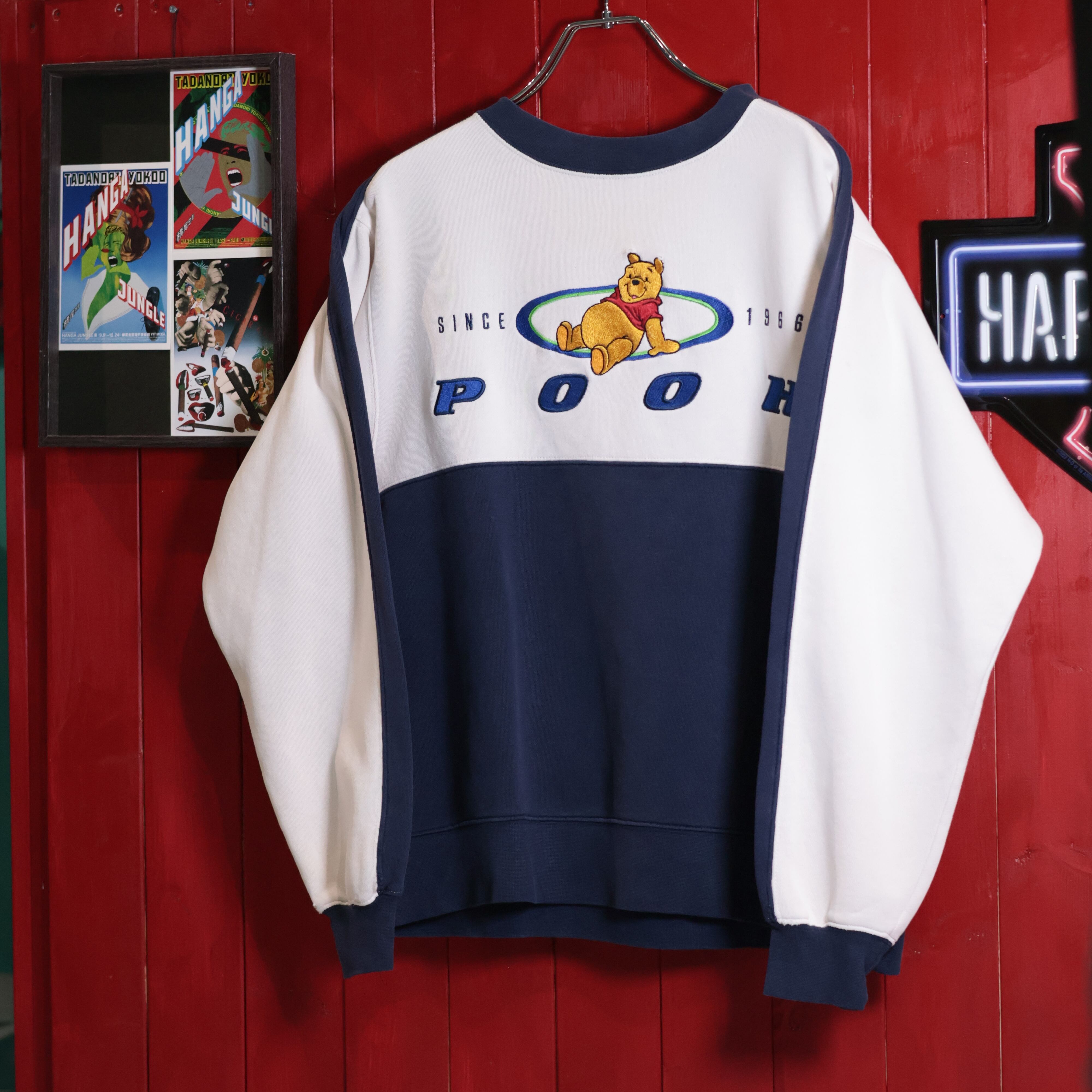Disney POOH ツートンカラースウェット 刺繍 ディズニー プーさん
