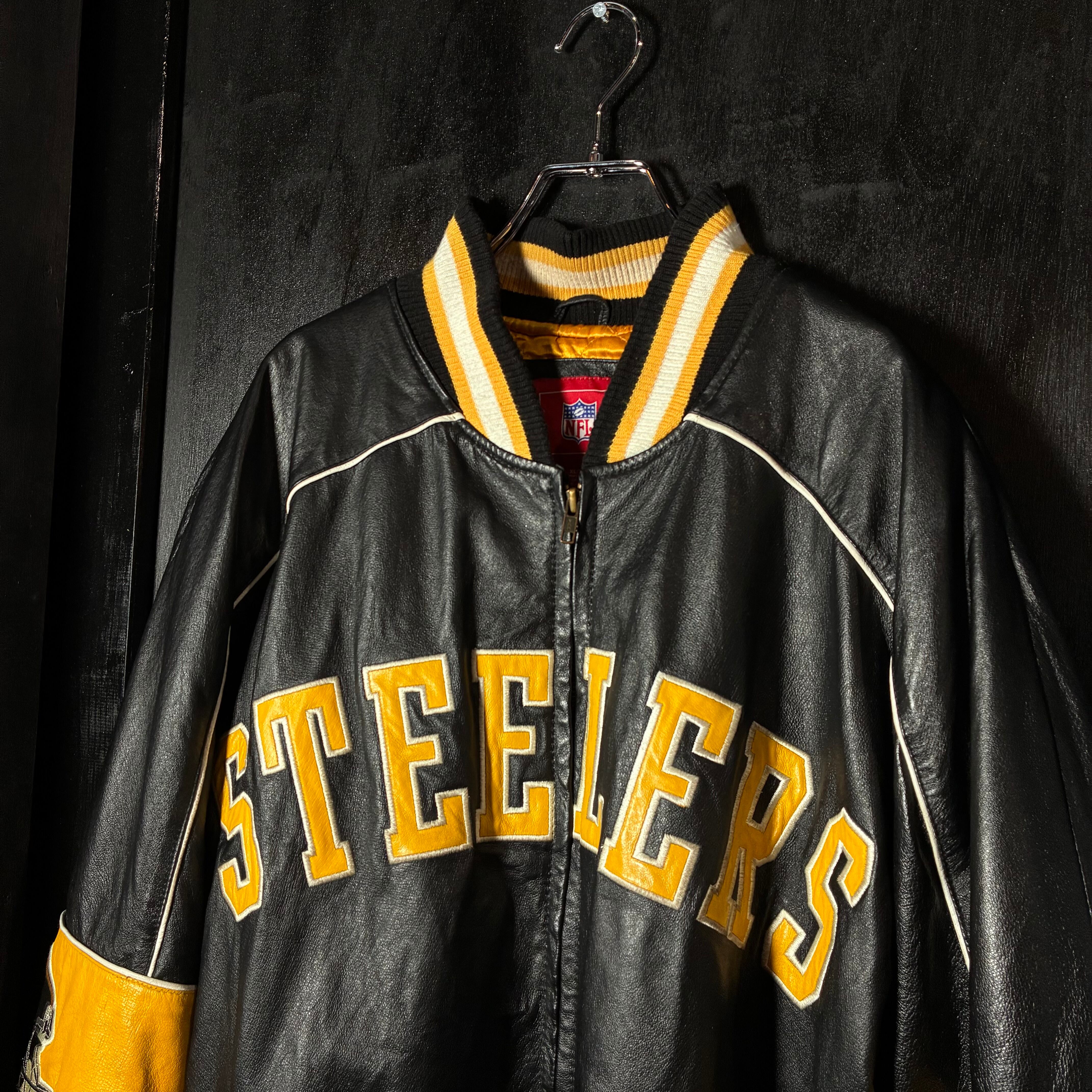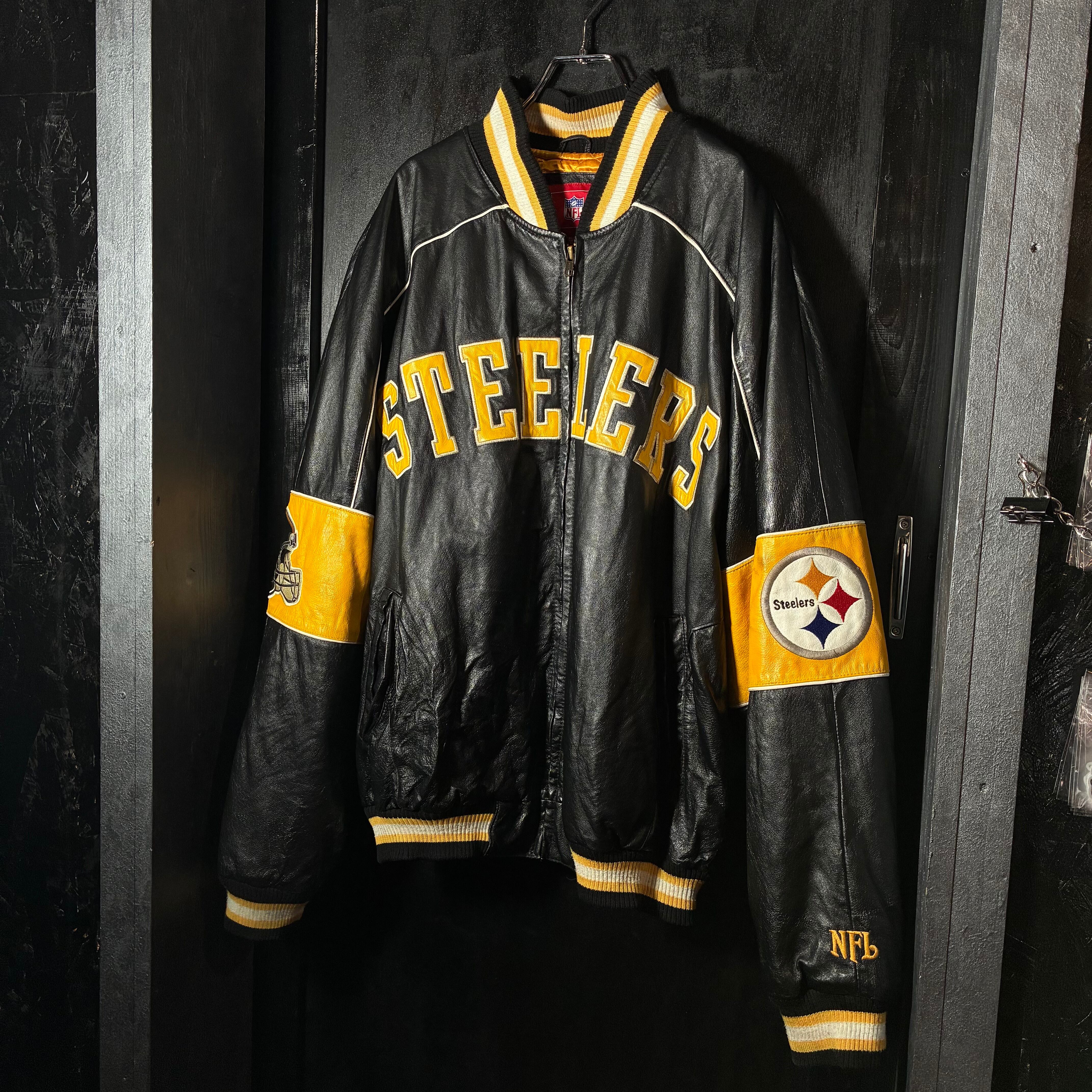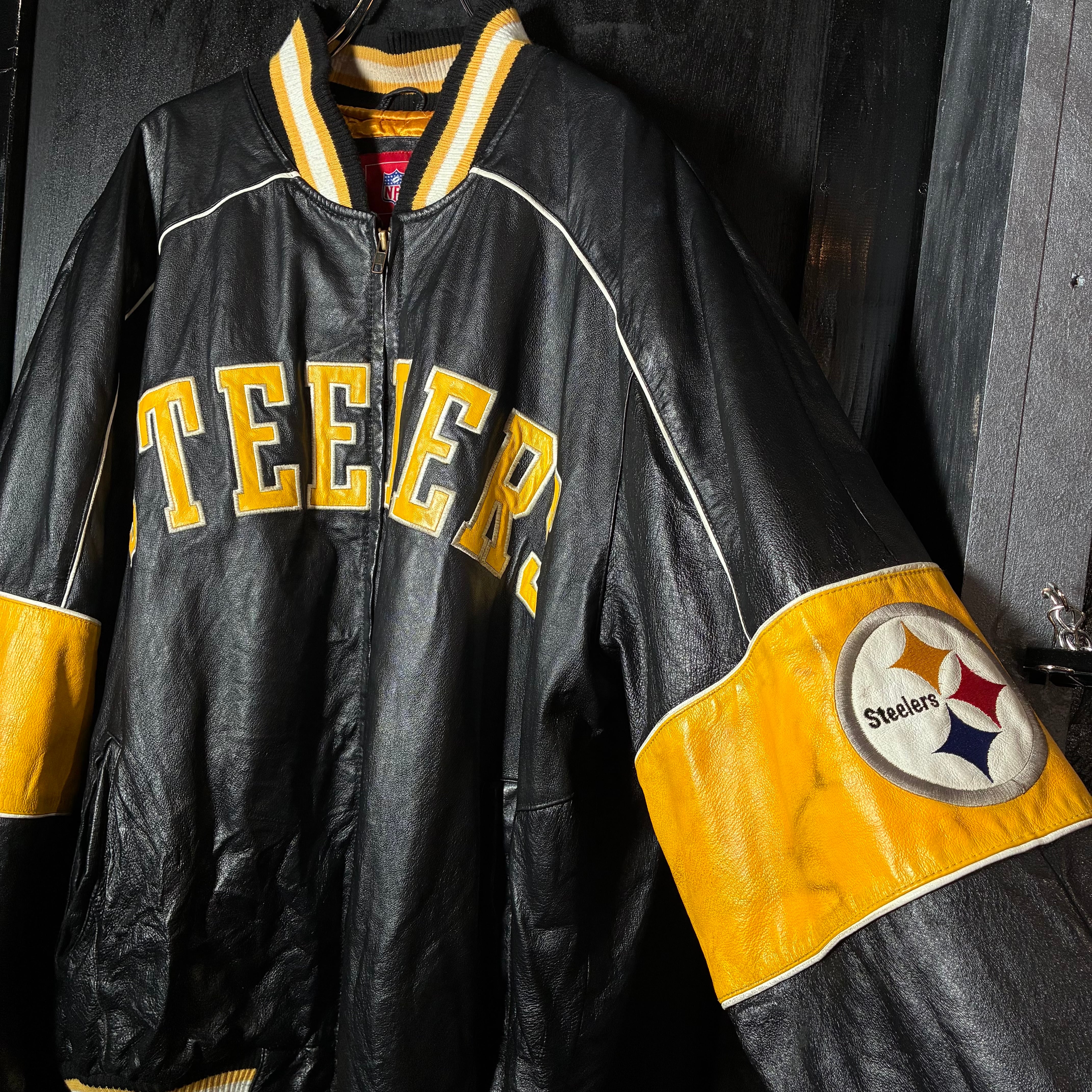 NFL STEELERS 本革 レザージャケット ブラック×イエロー XL