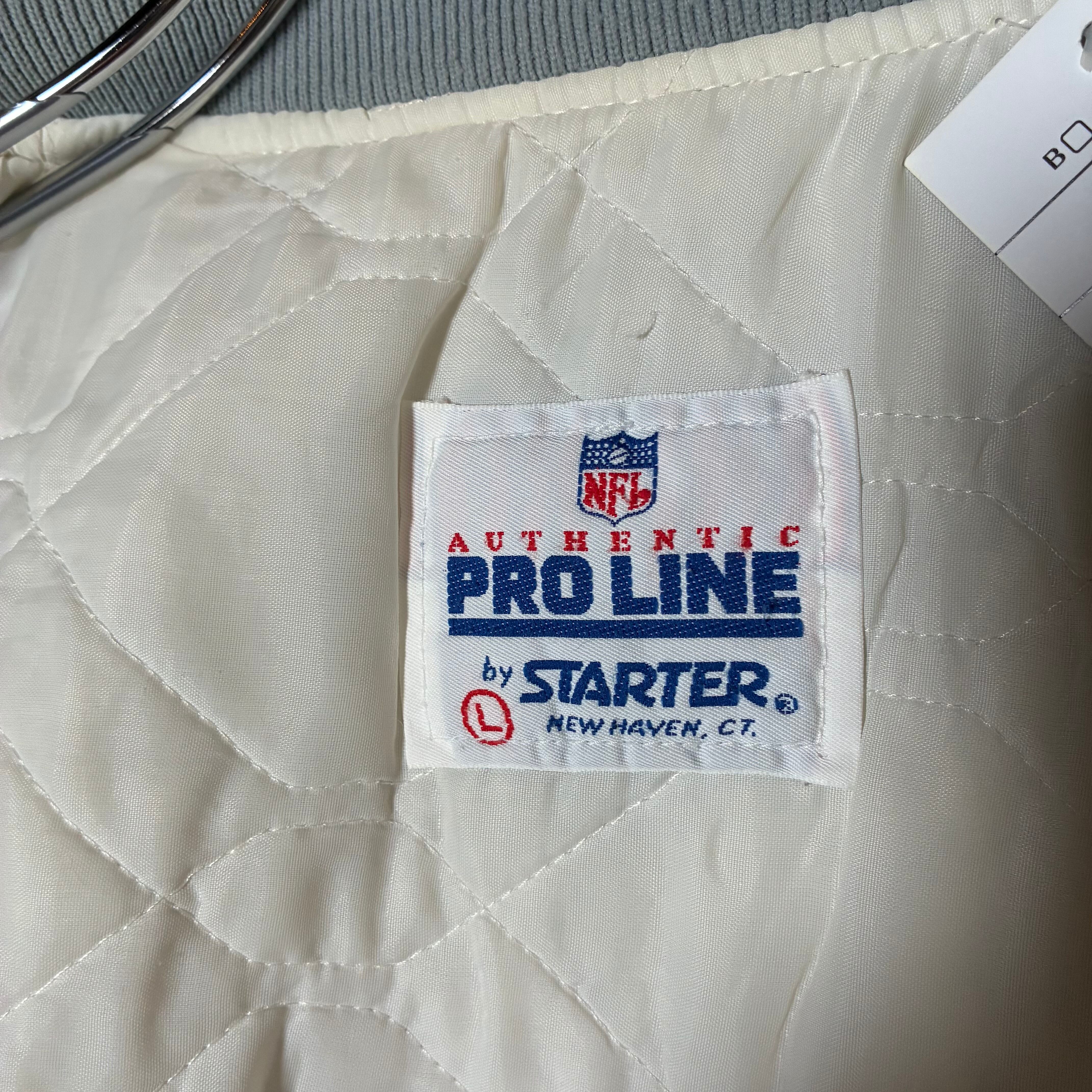 90年代アメリカ製、Starter(スターター)製 × NFL RAIDERS(レイダース) の中綿入りナイロンスタジアムジャケット。