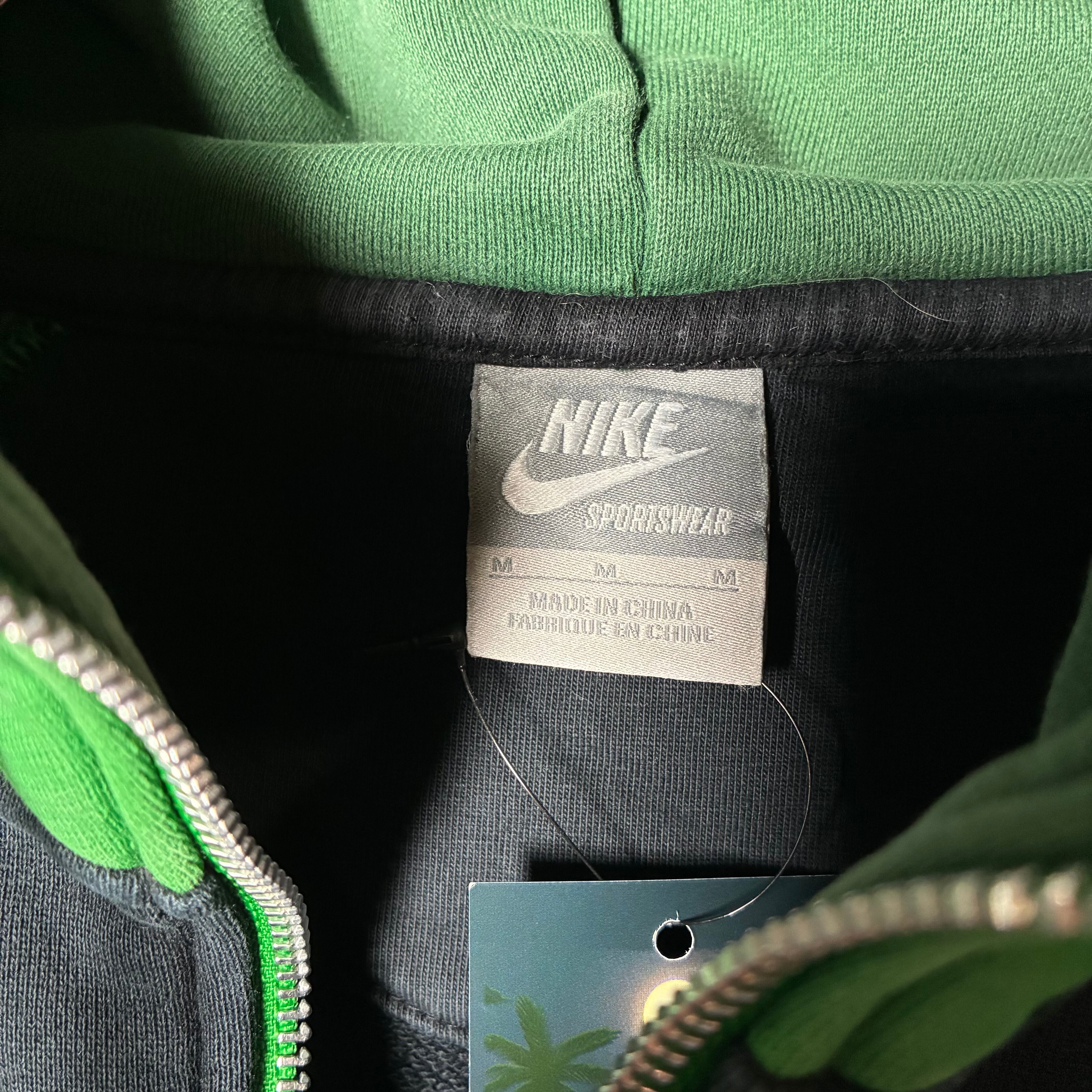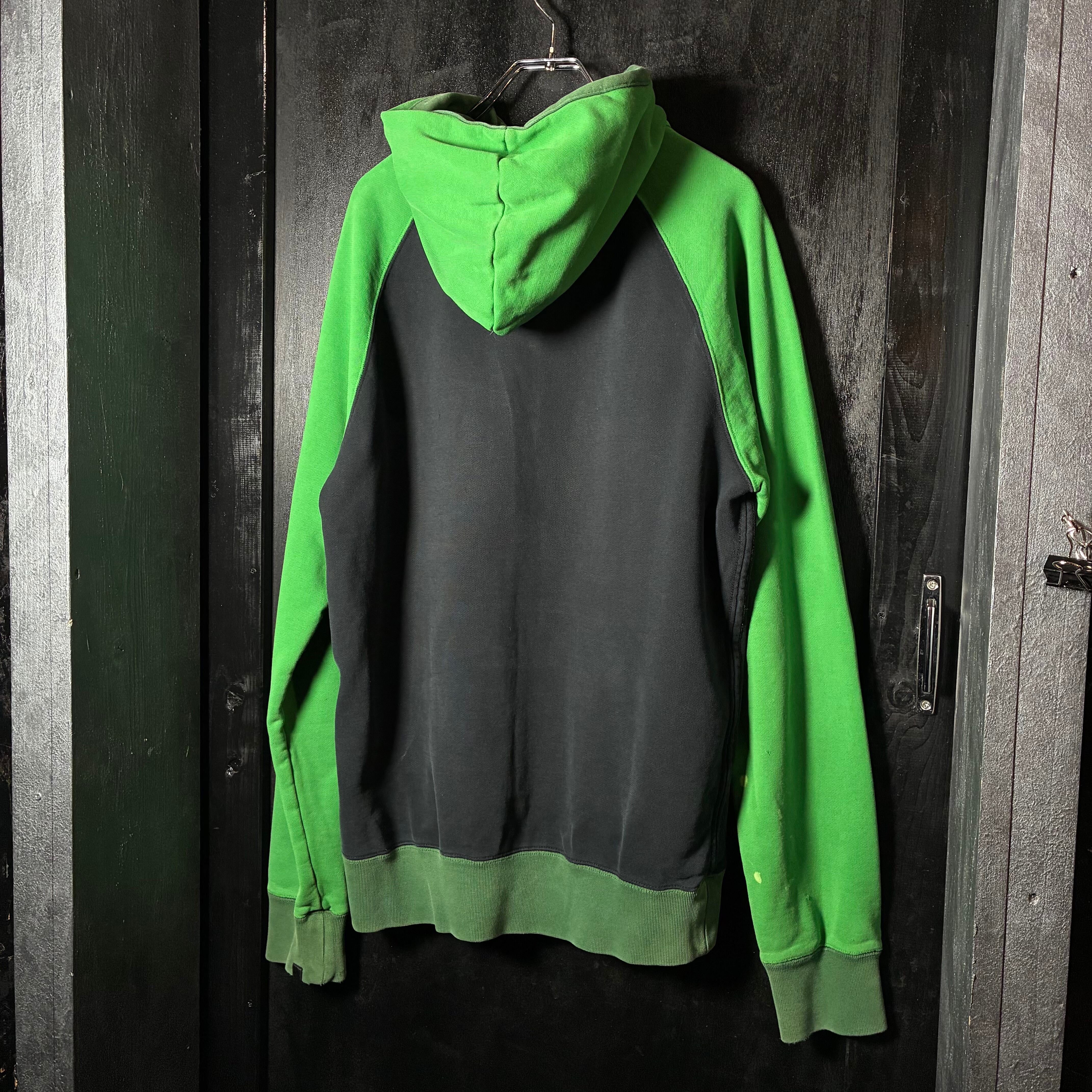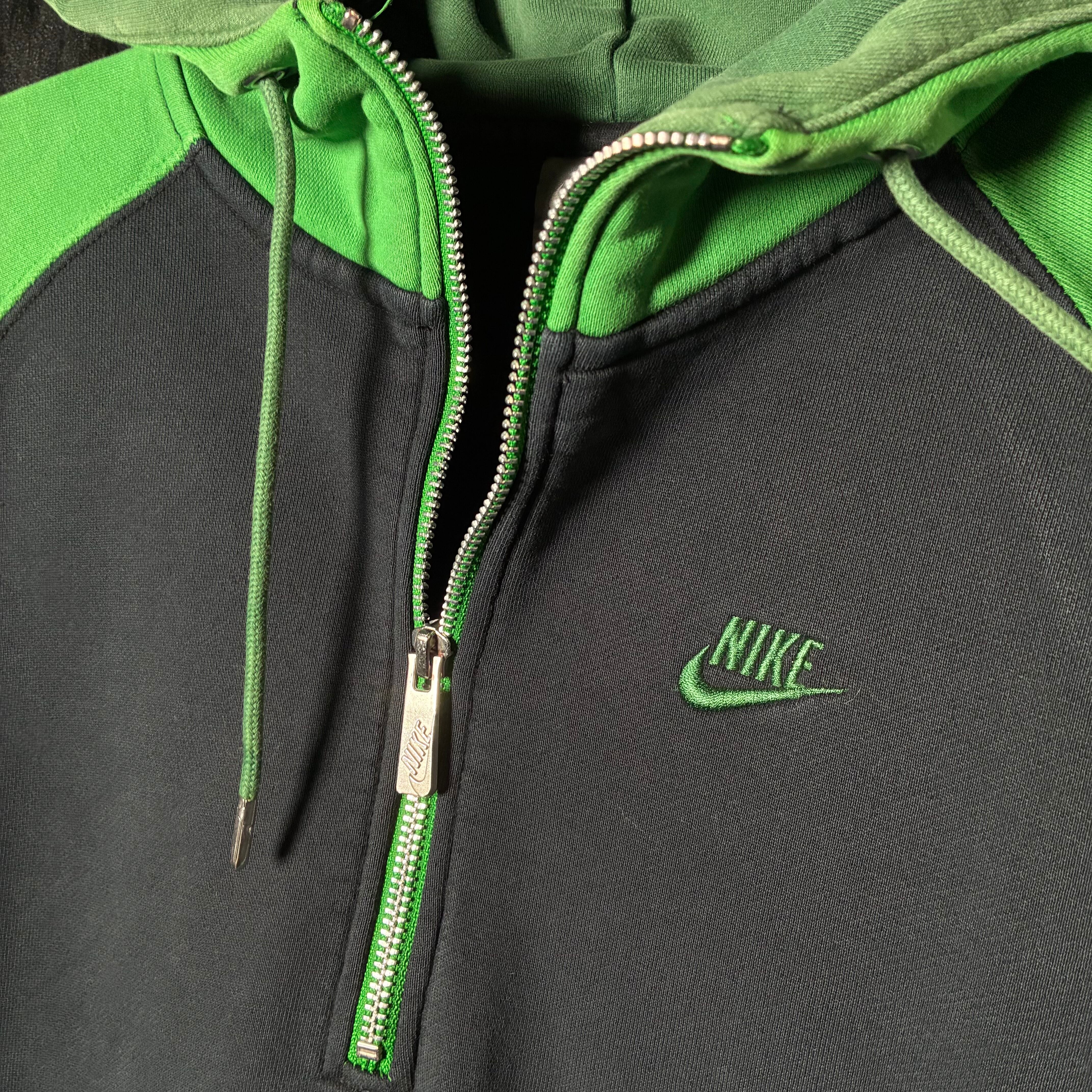 00s NIKE ハーフジッププルオーバーフーディ ラグラン 黒×緑 M