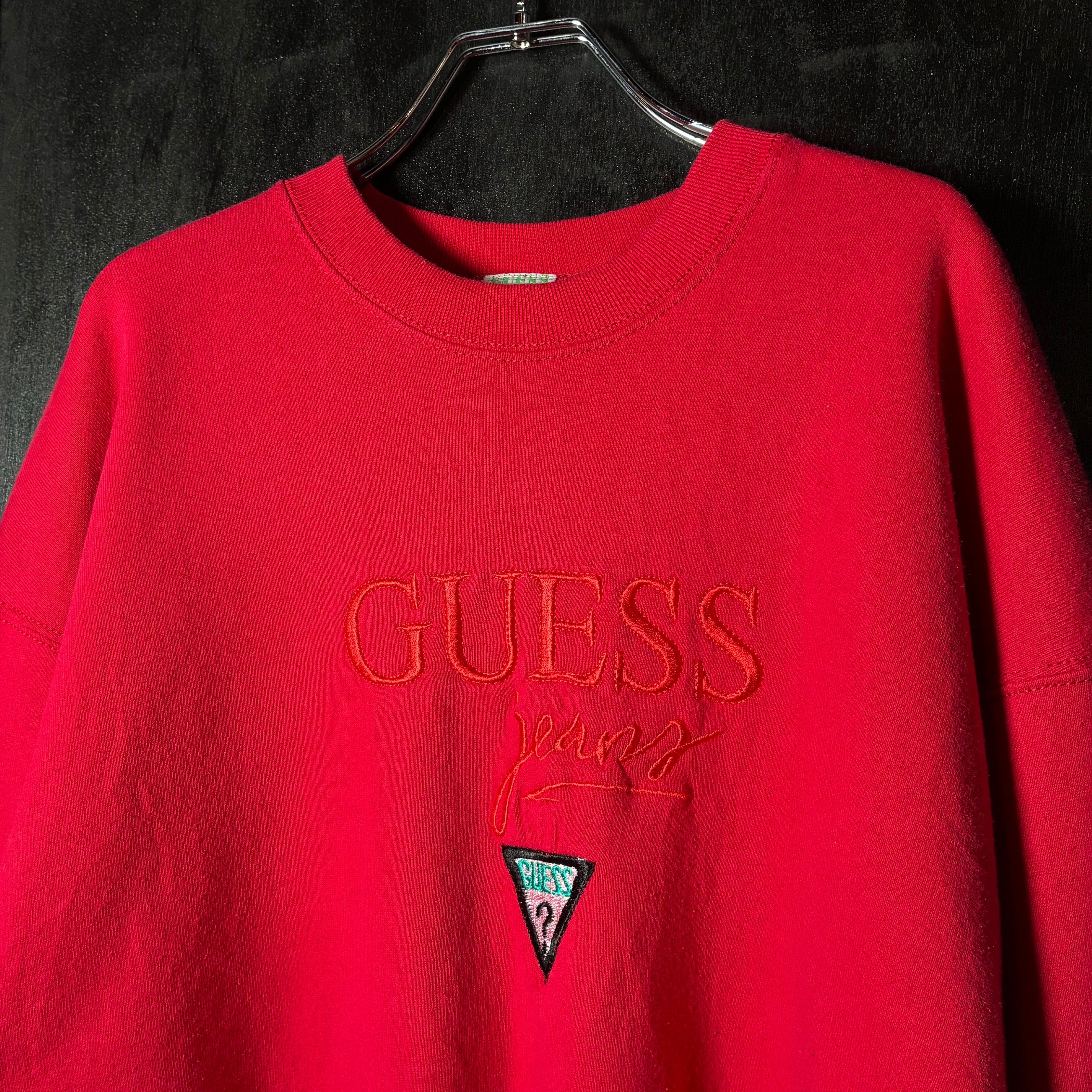 90s USA製 GUESS 刺繍ロゴスウェット 赤 ゲス