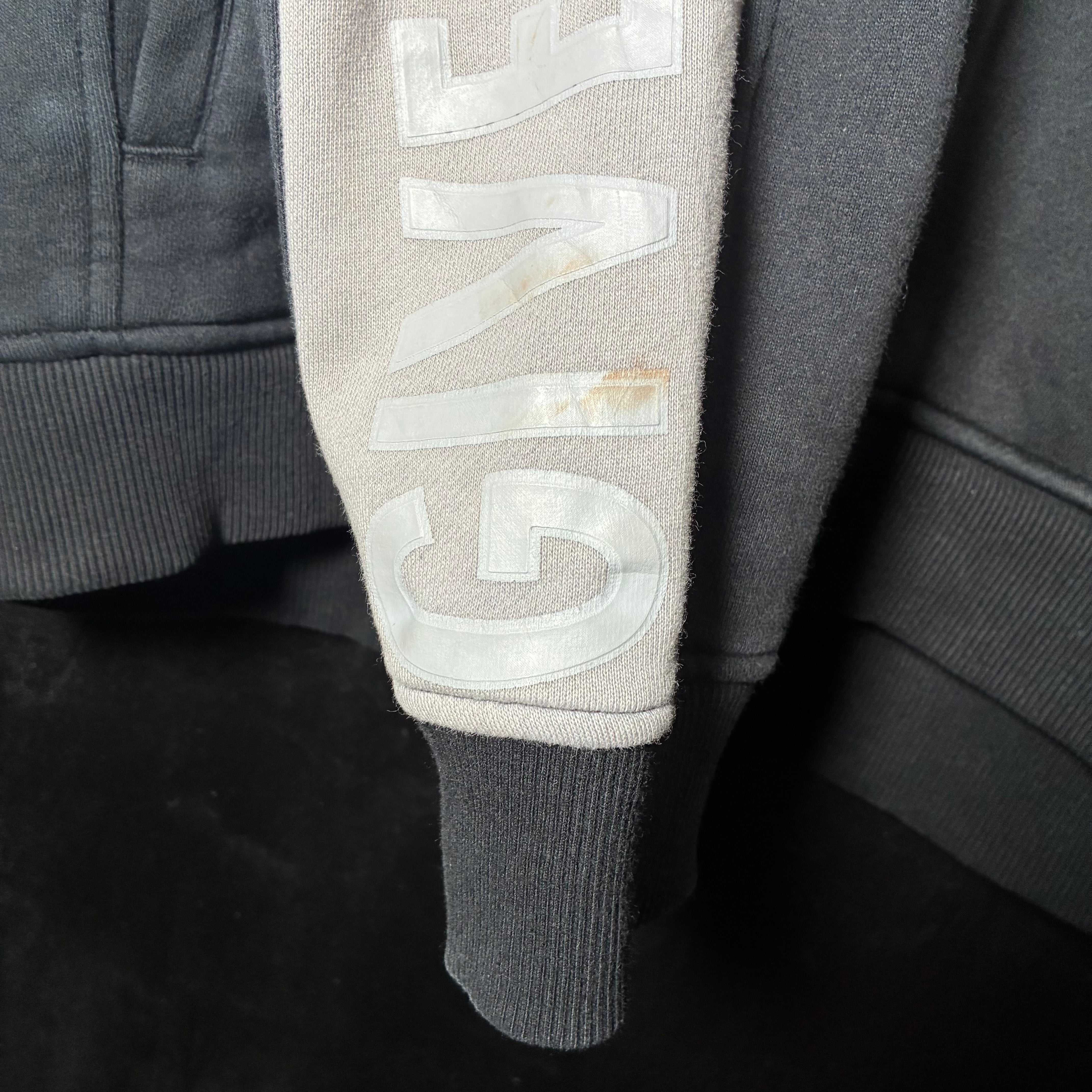 ブラック×グレーの切り替えに、袖プリントが存在感抜群。