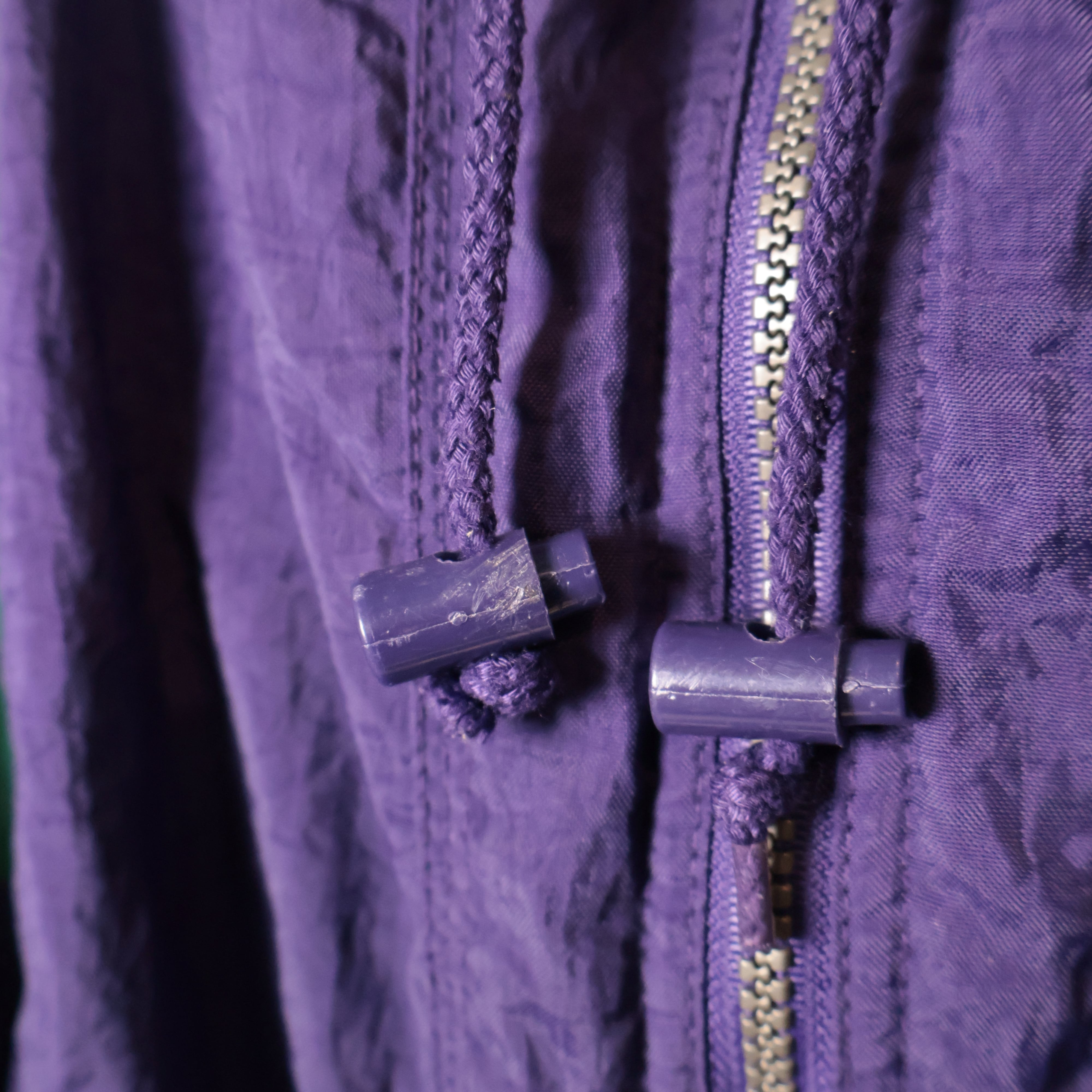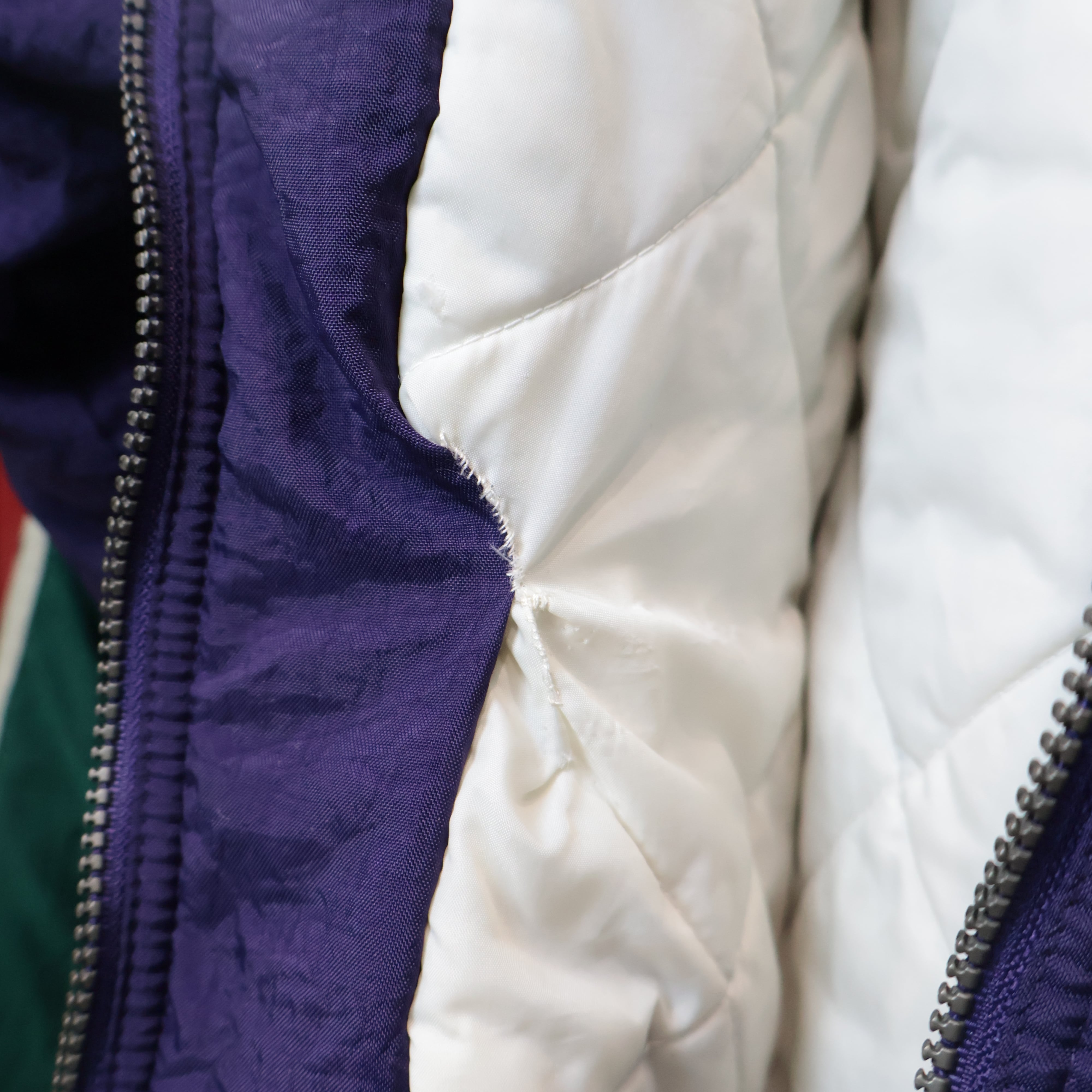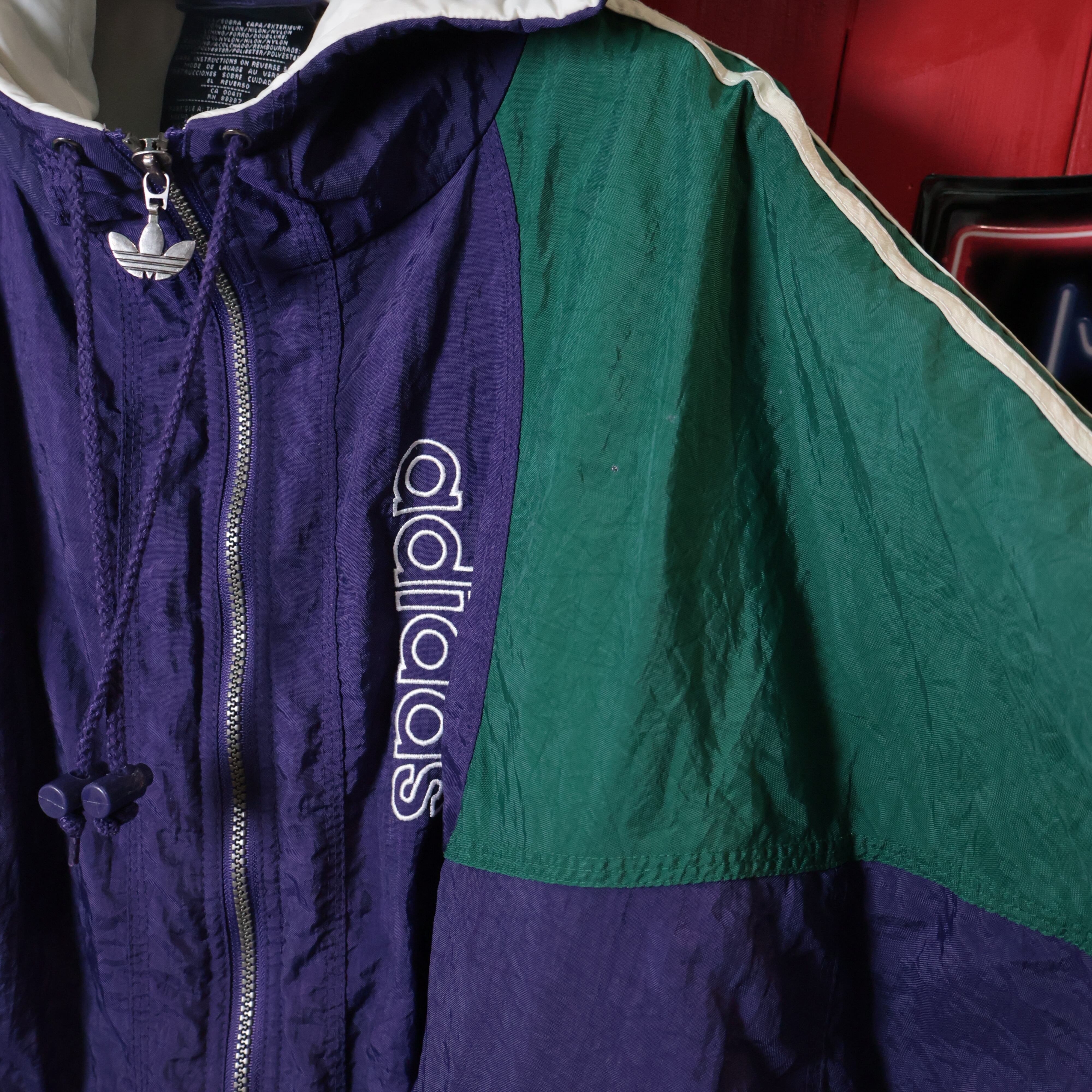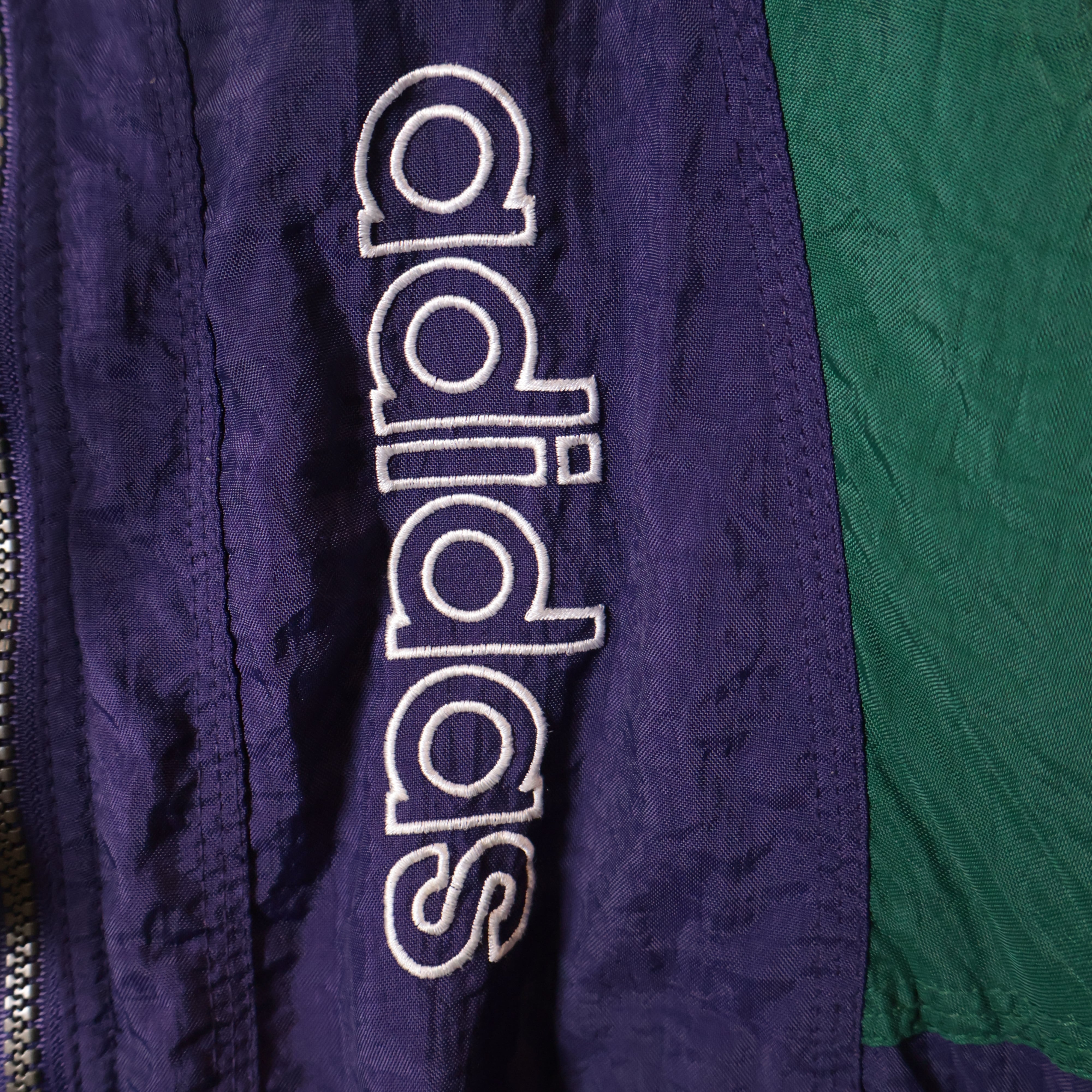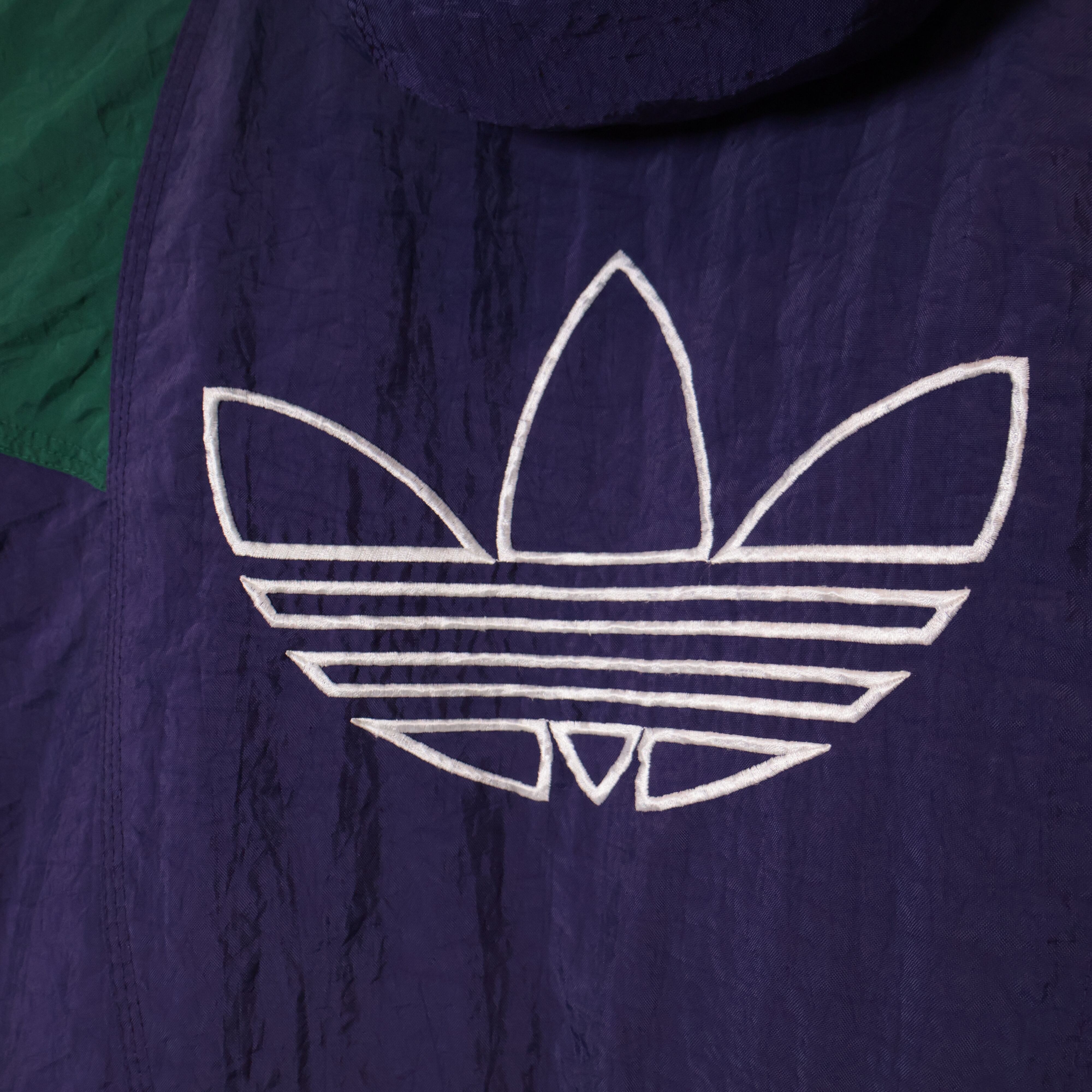 90s adidas 中綿ナイロンジャケット ツートンカラー 緑×紫 刺繍トレフォイル