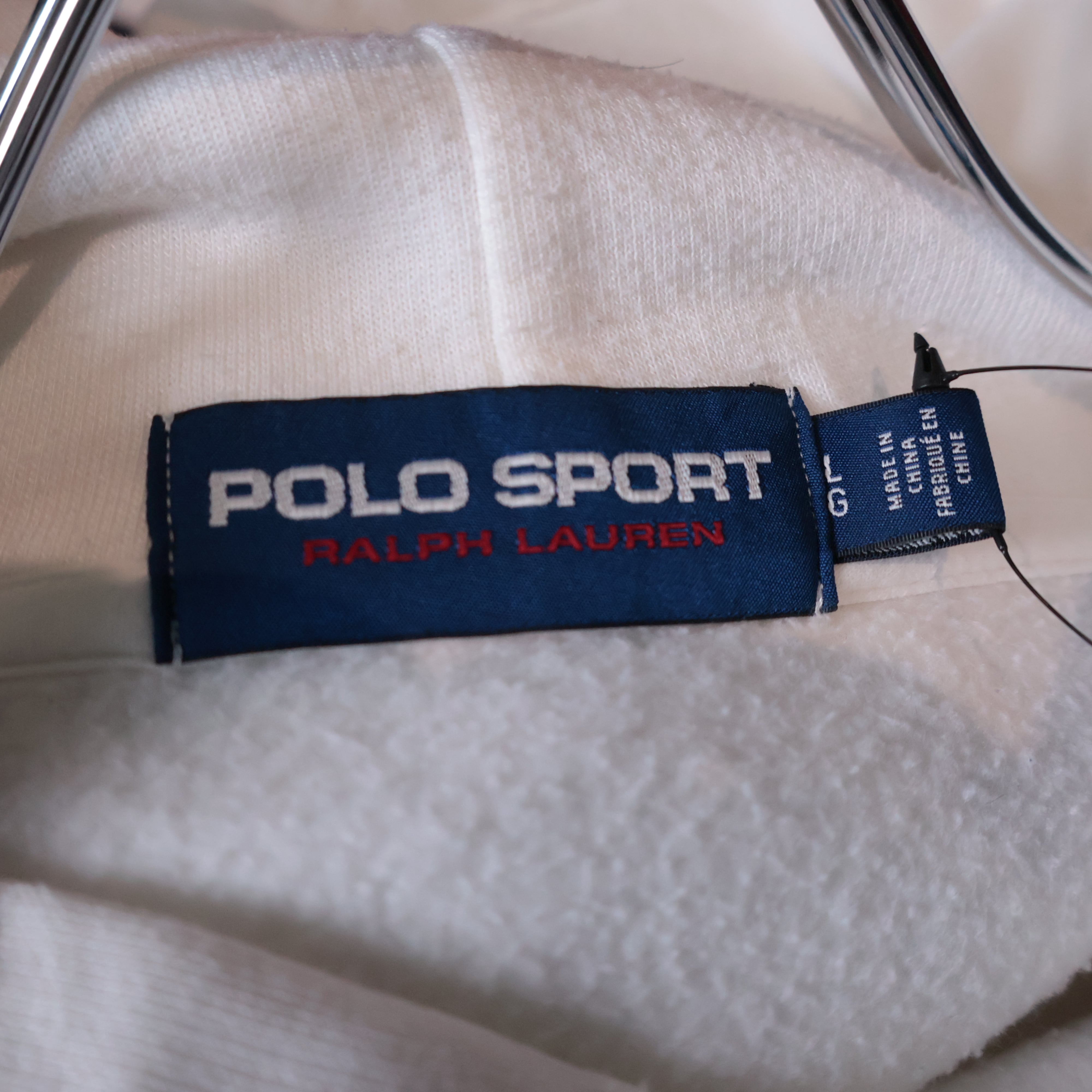 POLO SPORT プルオーバーパーカー 白 袖ロゴ L ポロスポーツ