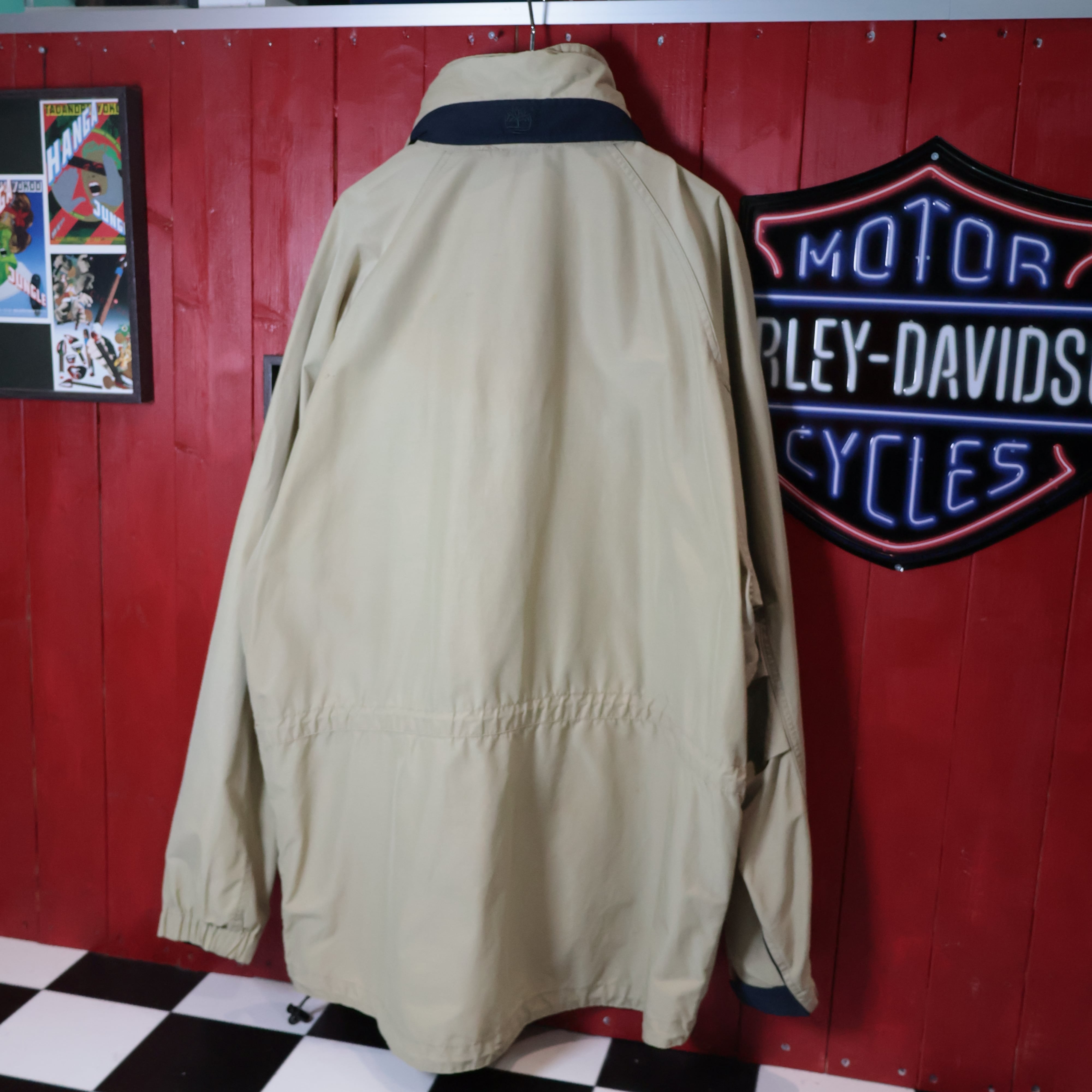 90s Timberland マウンテンパーカー ベージュ ミドル丈 ダブルジップ ドローコード L
