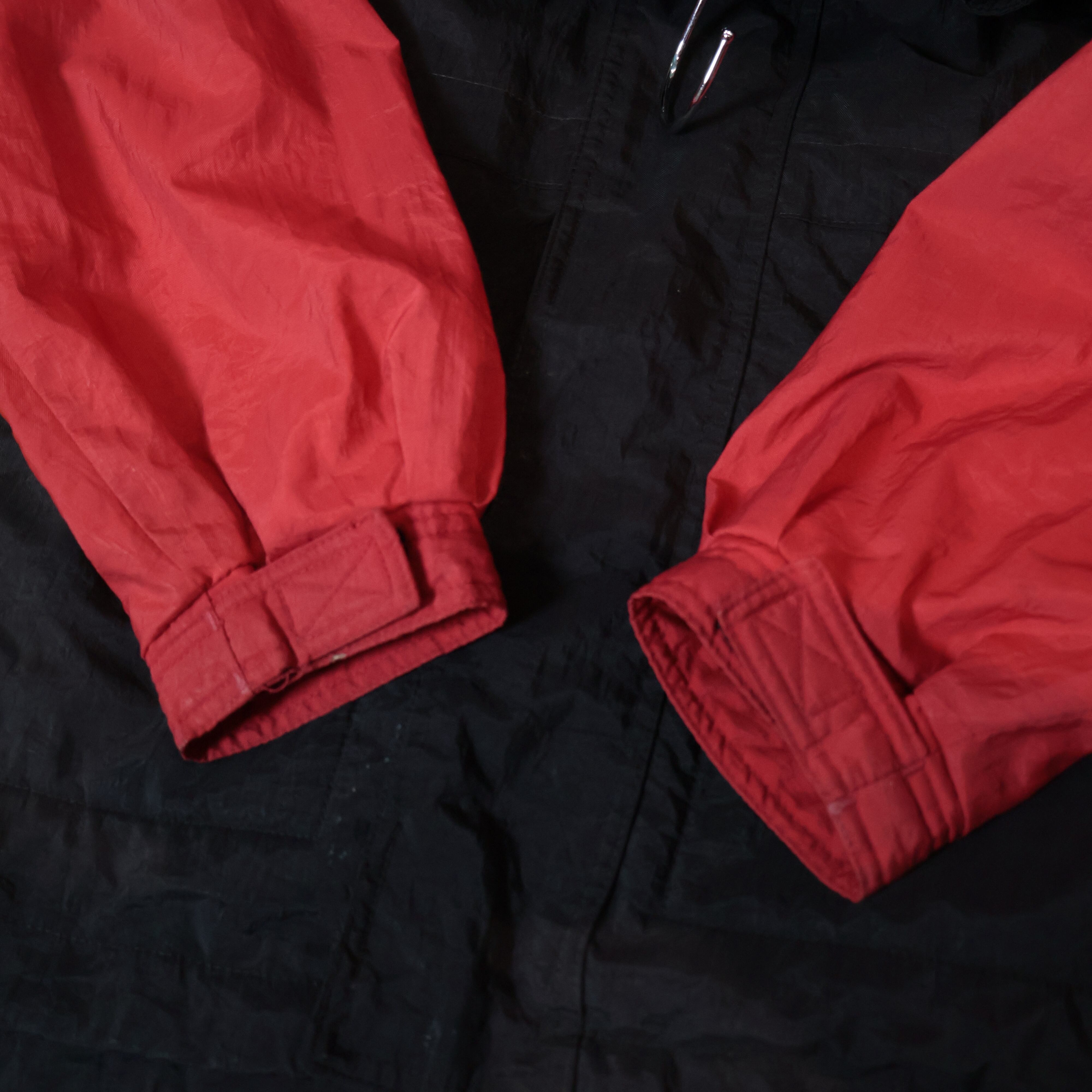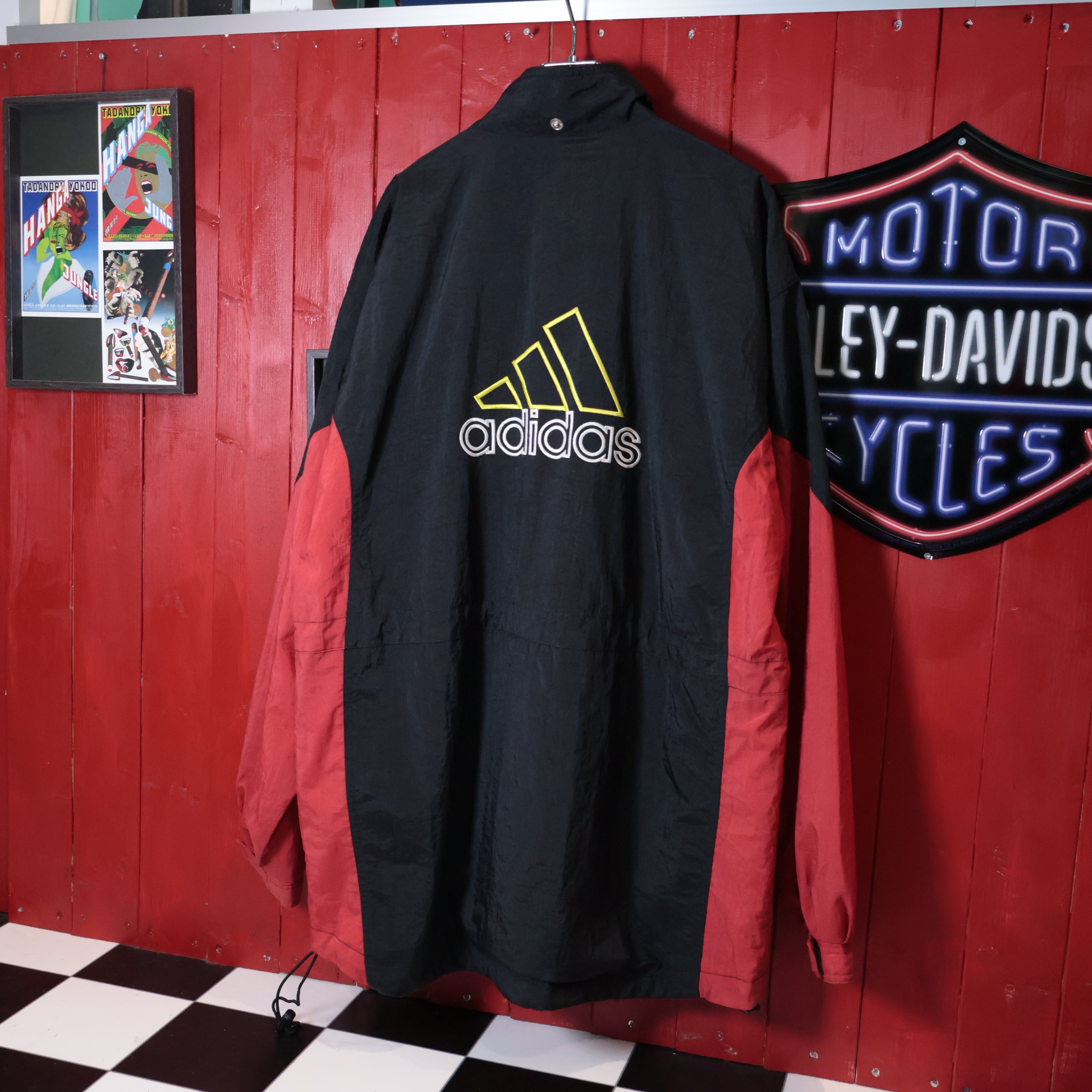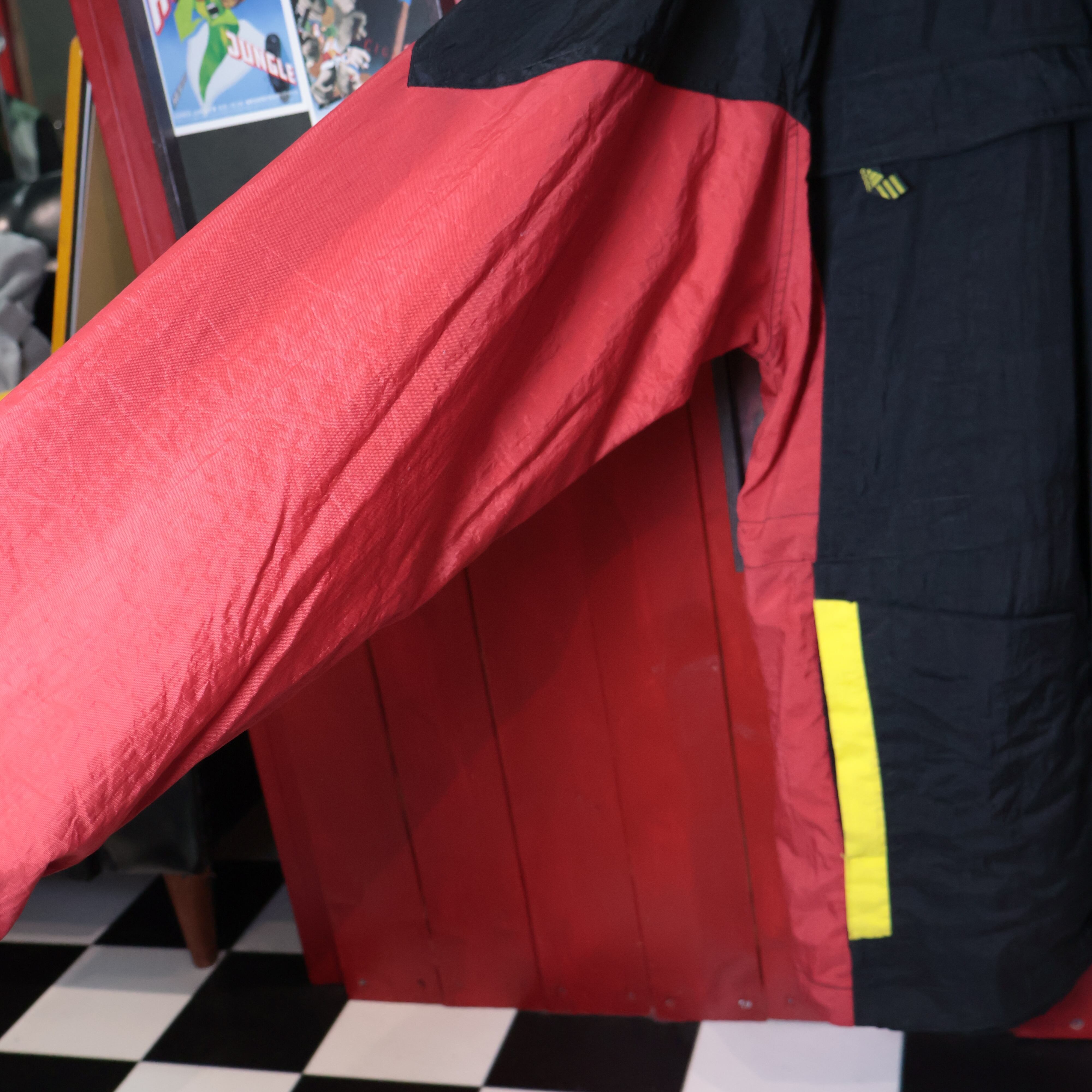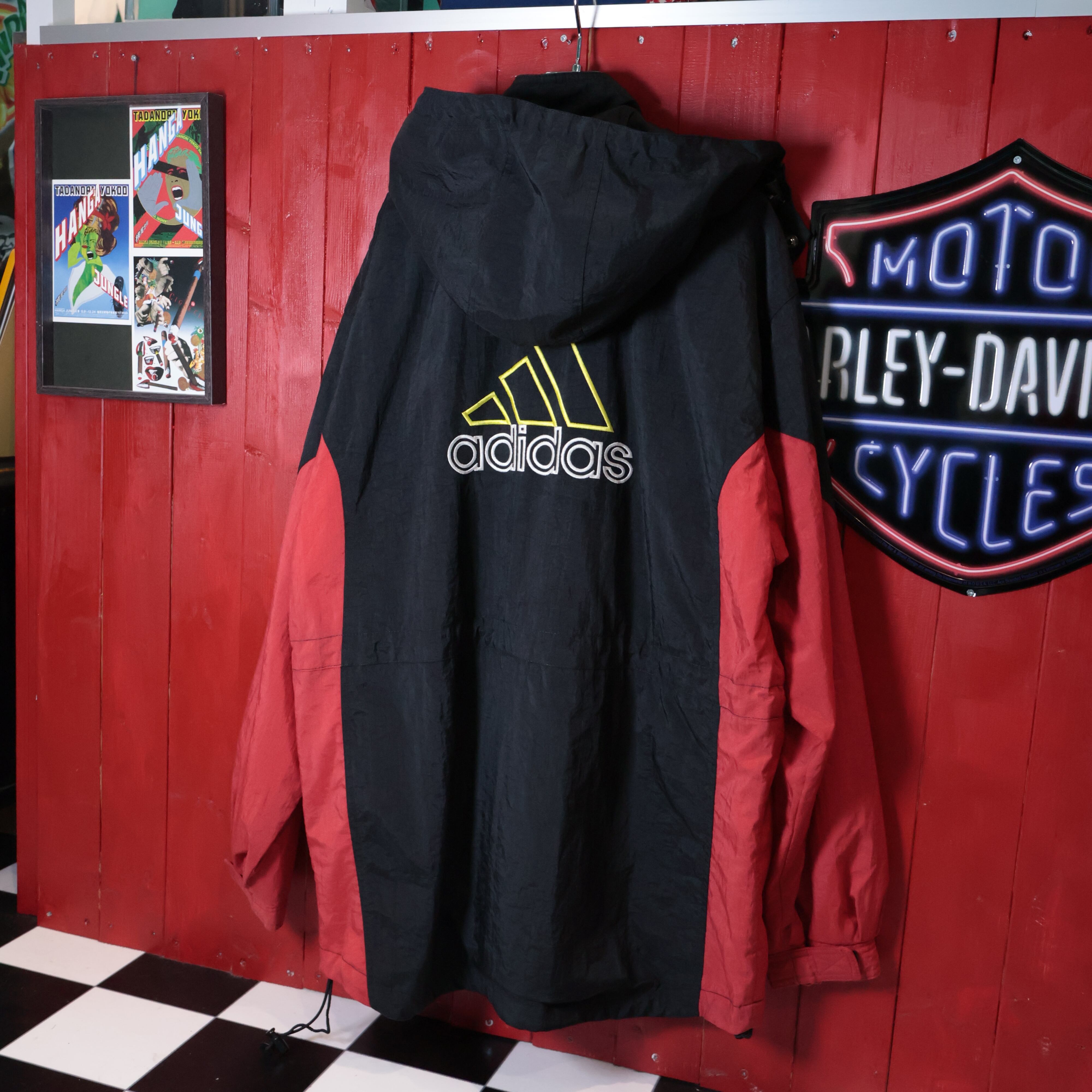 90s adidas マウンテンパーカー ナイロン 黒×赤×黄色 ドローコーS