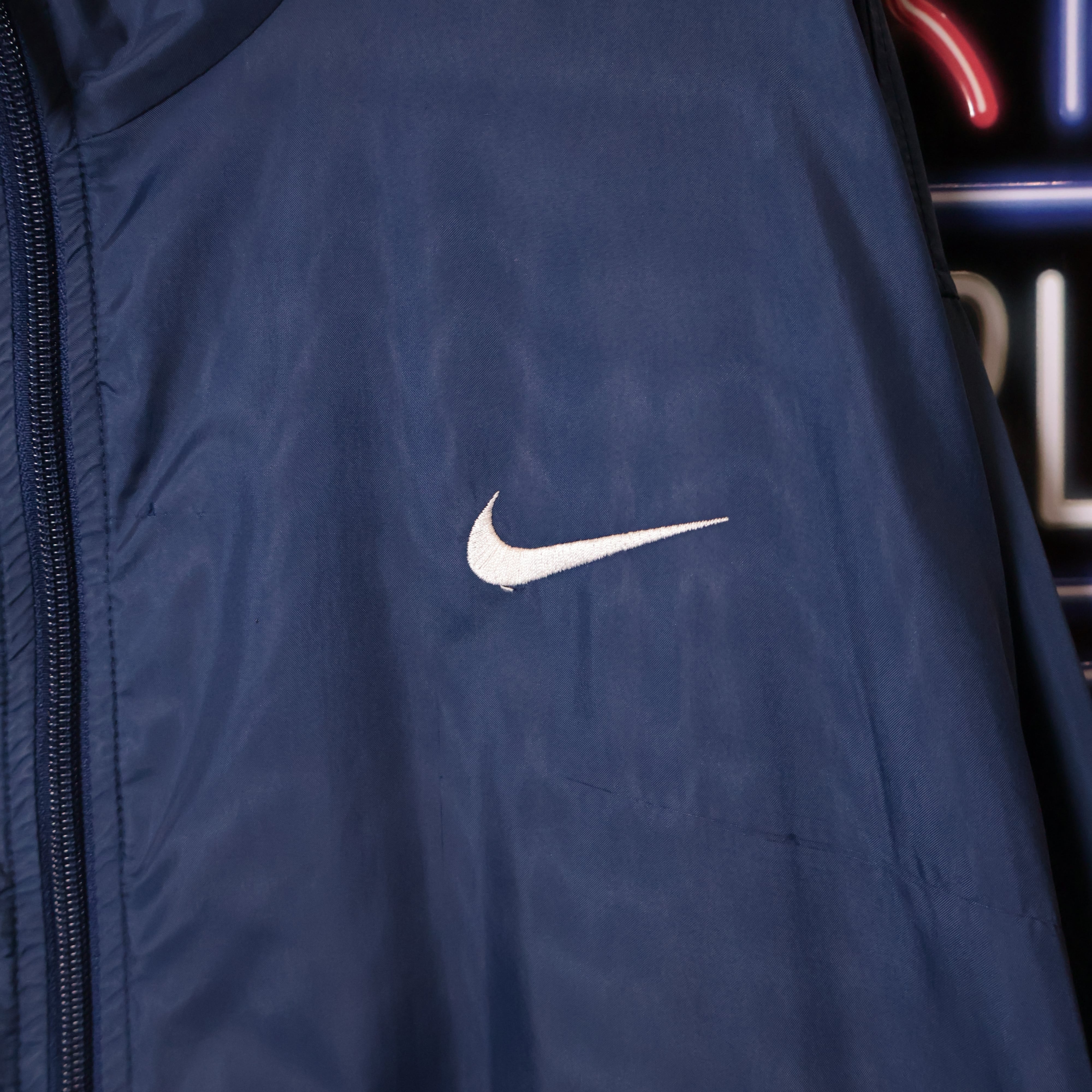 90年代らしい大胆なネイビー×ライムグリーンの切り替えが最高にクールなNIKEジャケット。