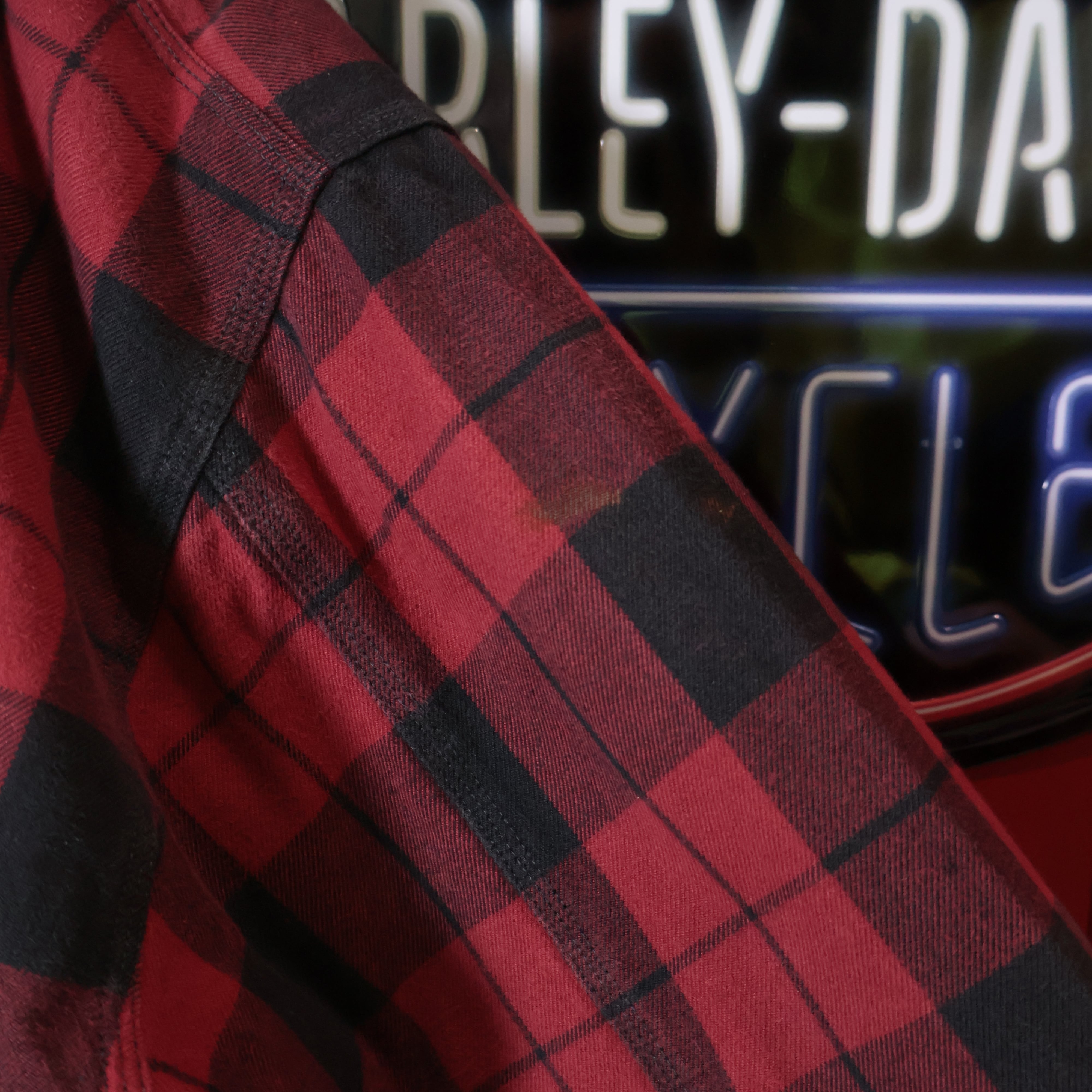 王道のシルエットに個性的な赤黒ブロックチェックの存在感が最高な1着。