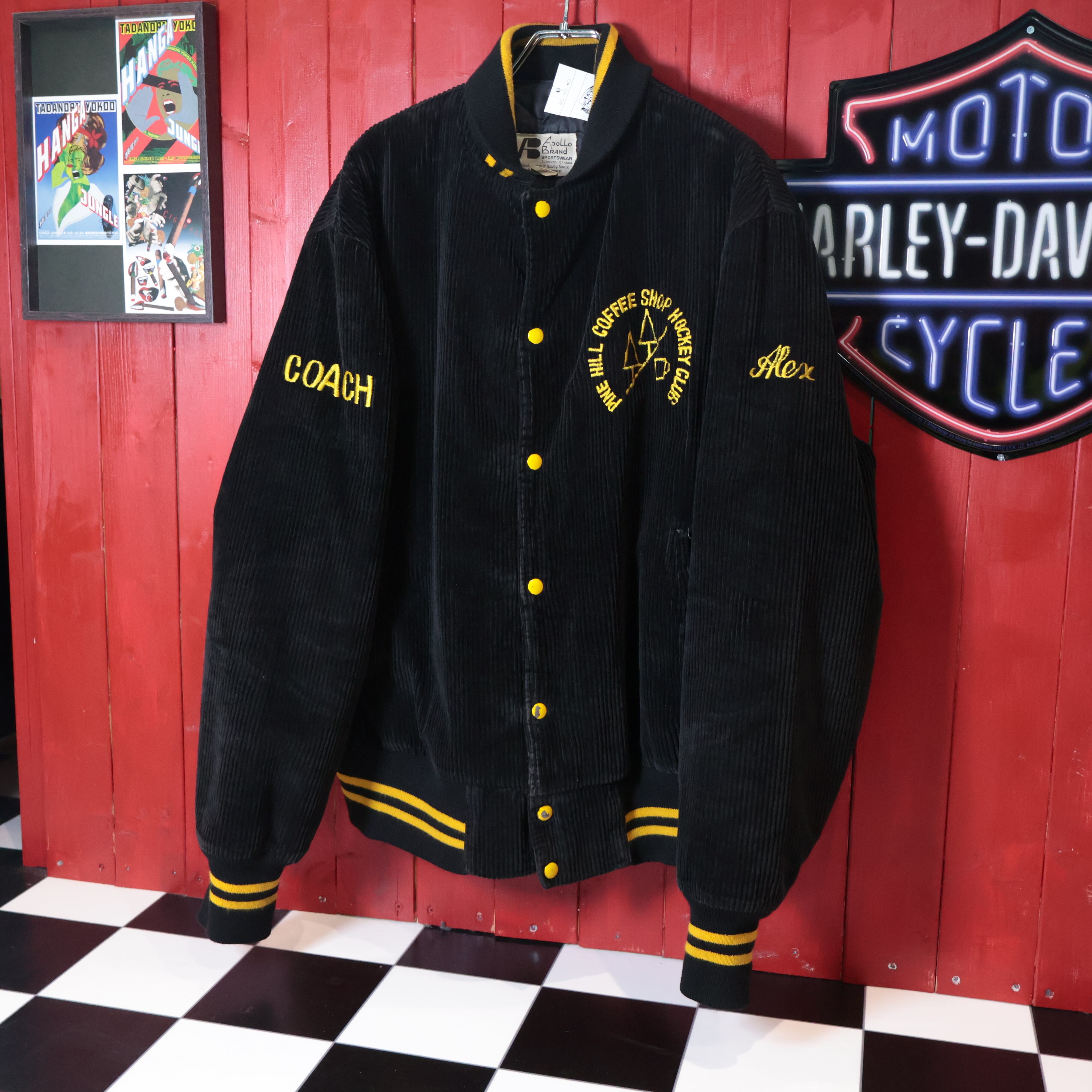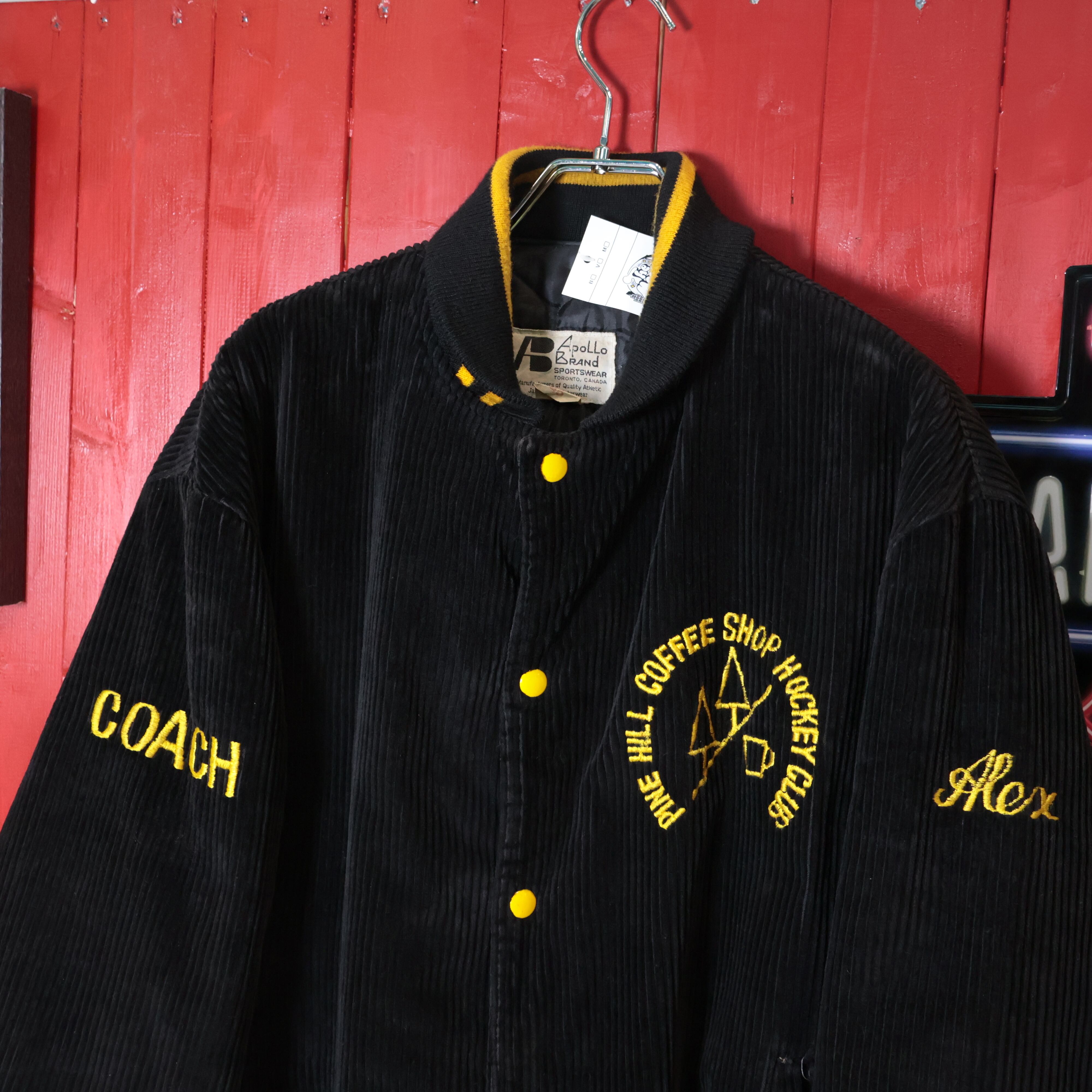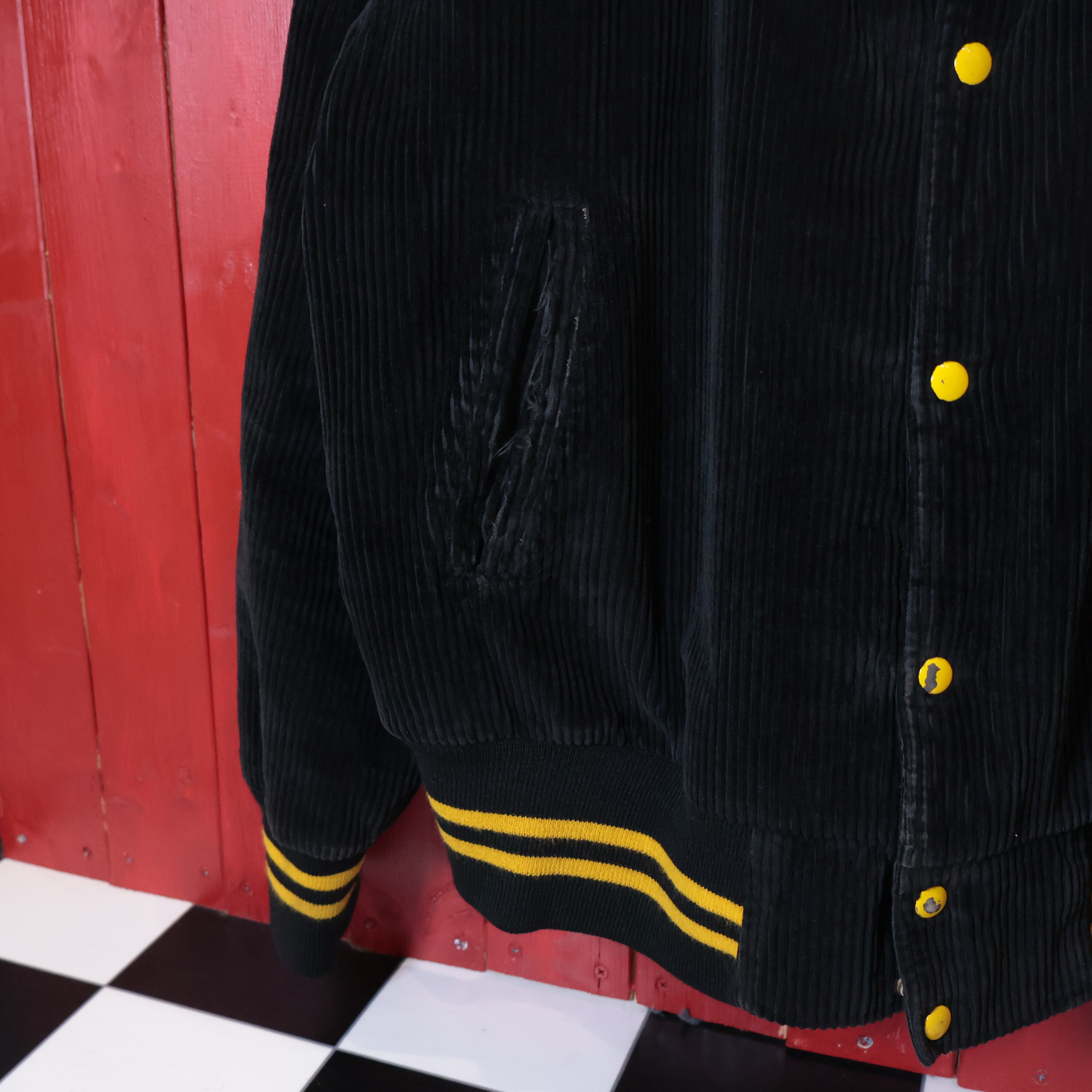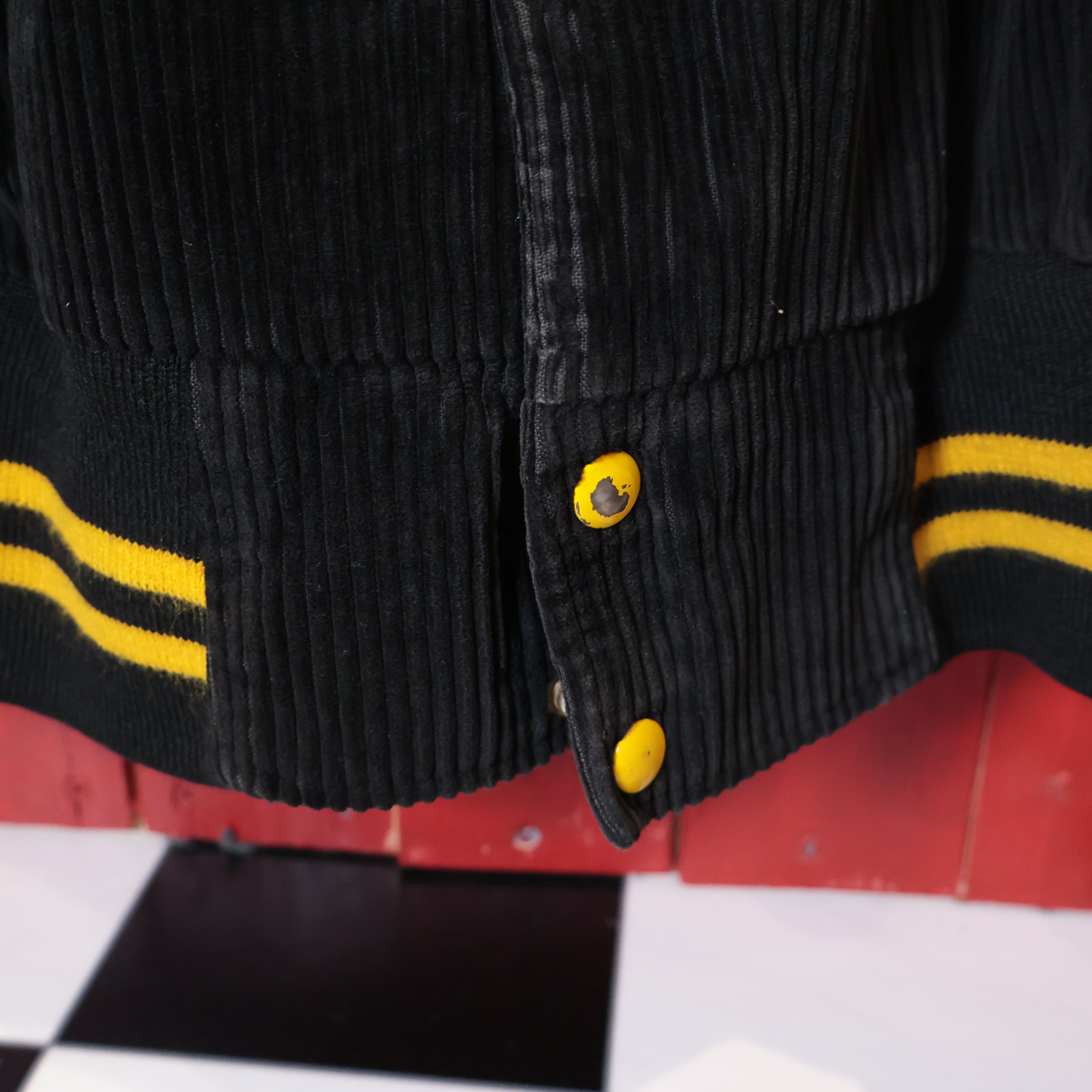 80s CANADA ApolloBrand コーデュロイスタジャン 太畝 黒×黄色 刺繍 48