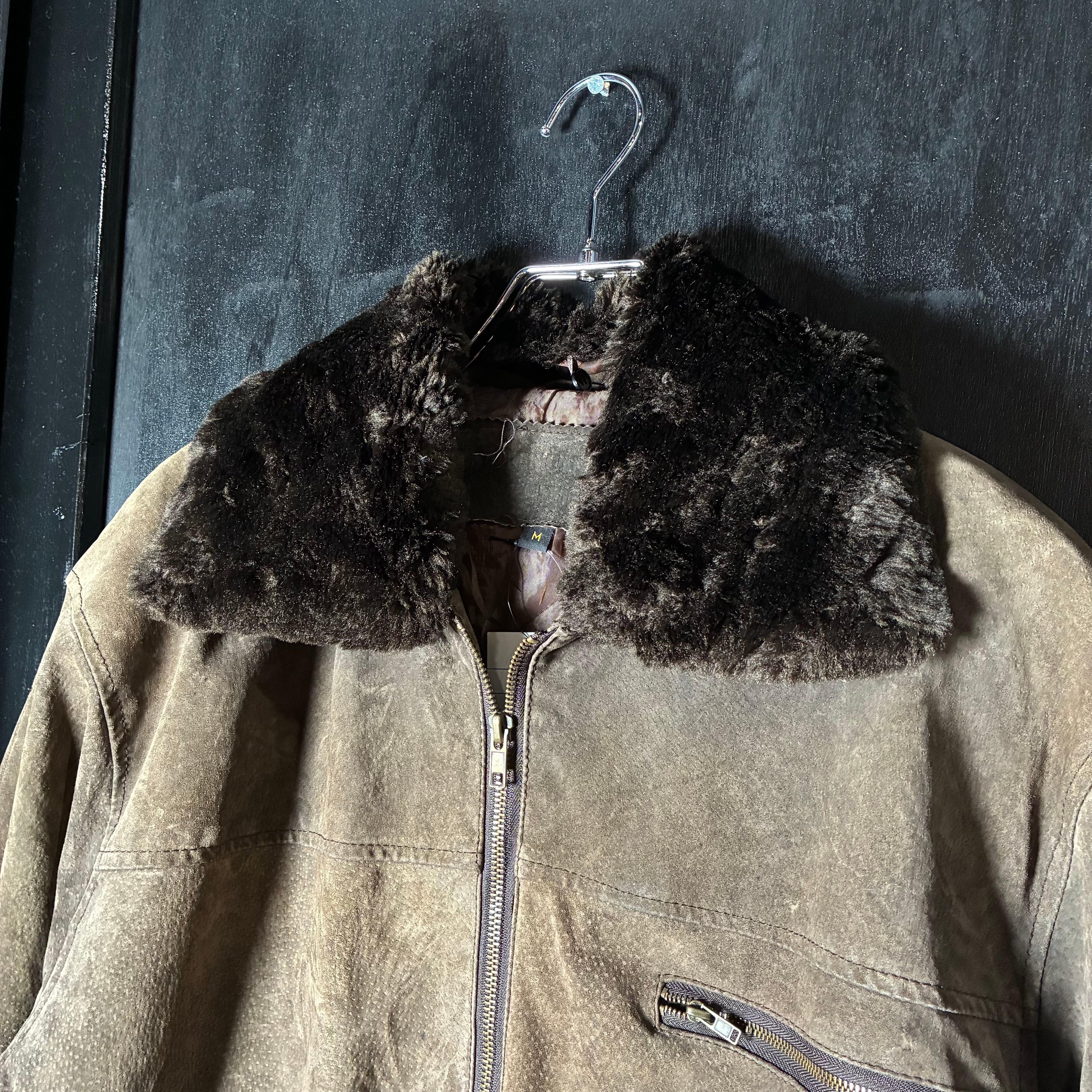 フライトジャケット風 スエードジャケット カーキ / ボア襟