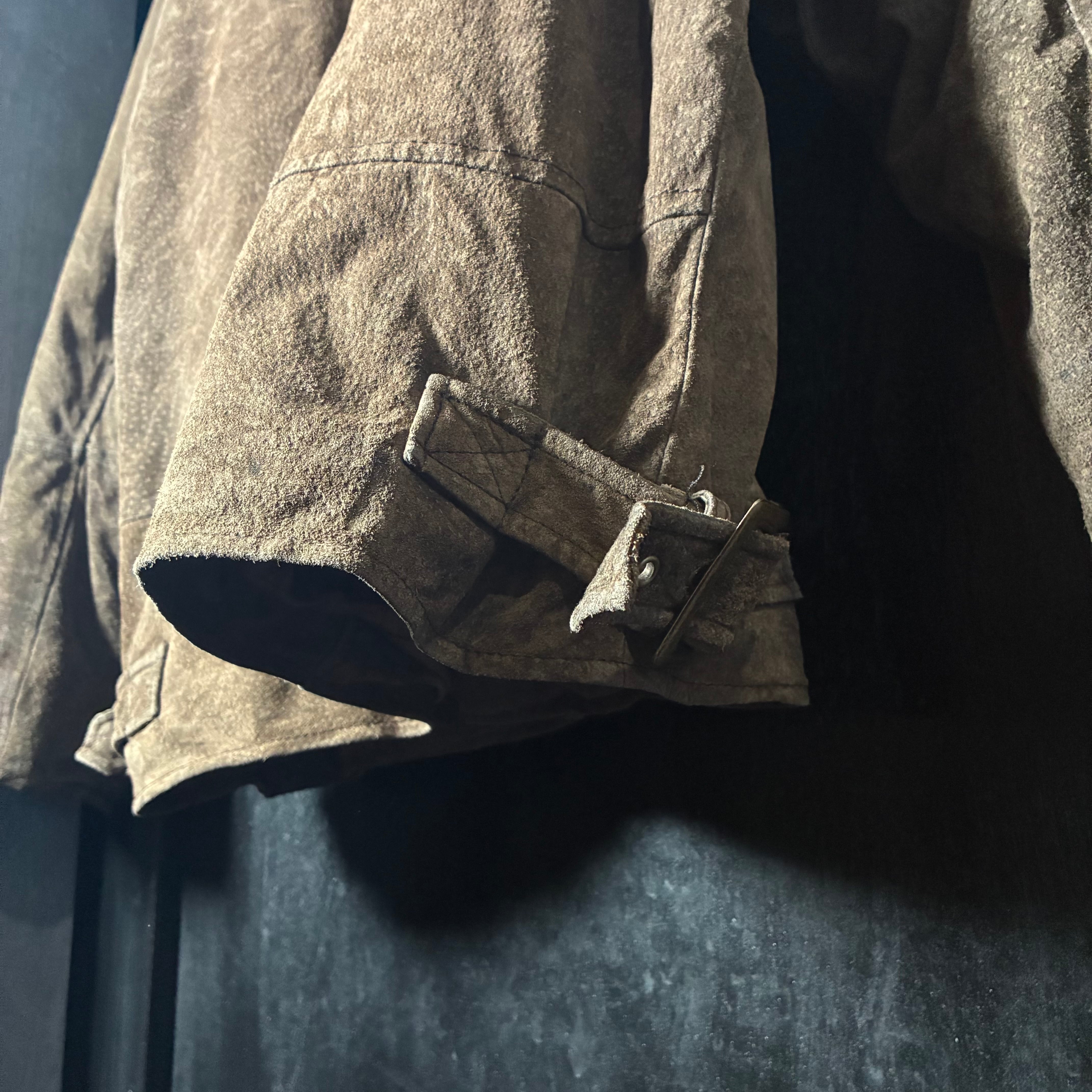 ● 無骨なフライトジャケット風シルエット × 深いカーキスエードの存在感