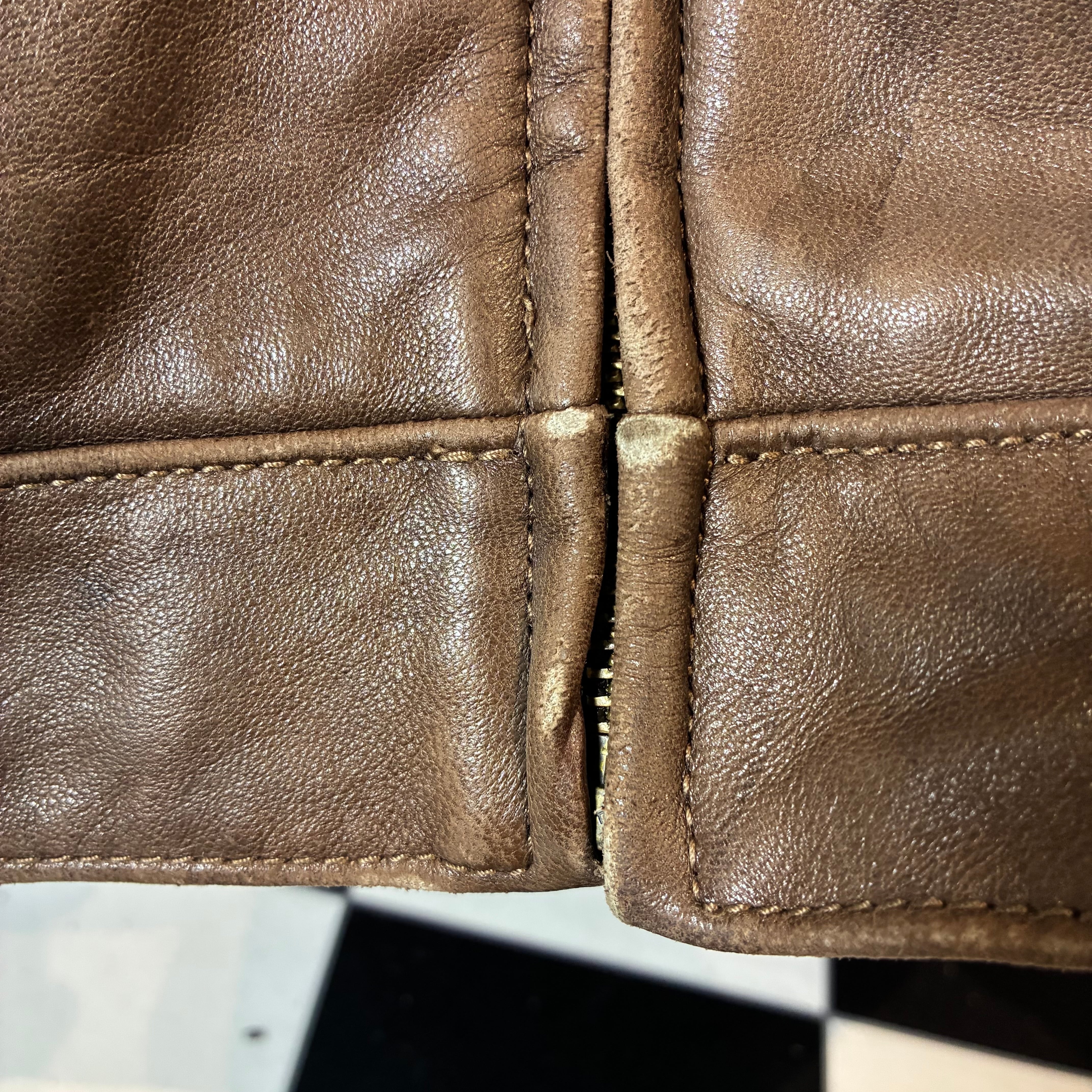 90s POLO RALPH LAUREN / ラムレザージャケット ブラウン / 千鳥格子ライニング / ポニー無し