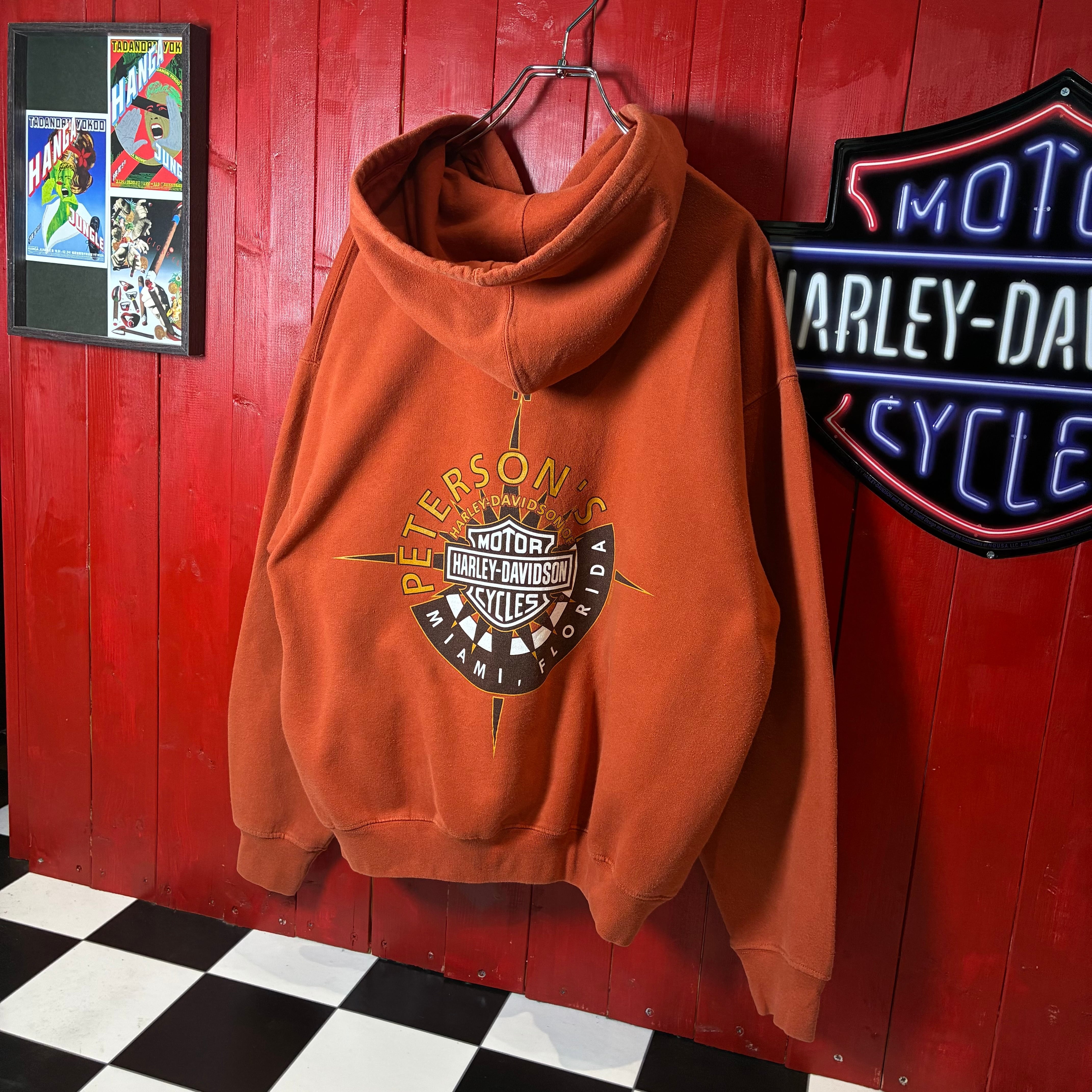 00s Harley-Davidson / ハーフジップパーカー / HD / MIAMIフロリダ / バックプリント / オレンジ