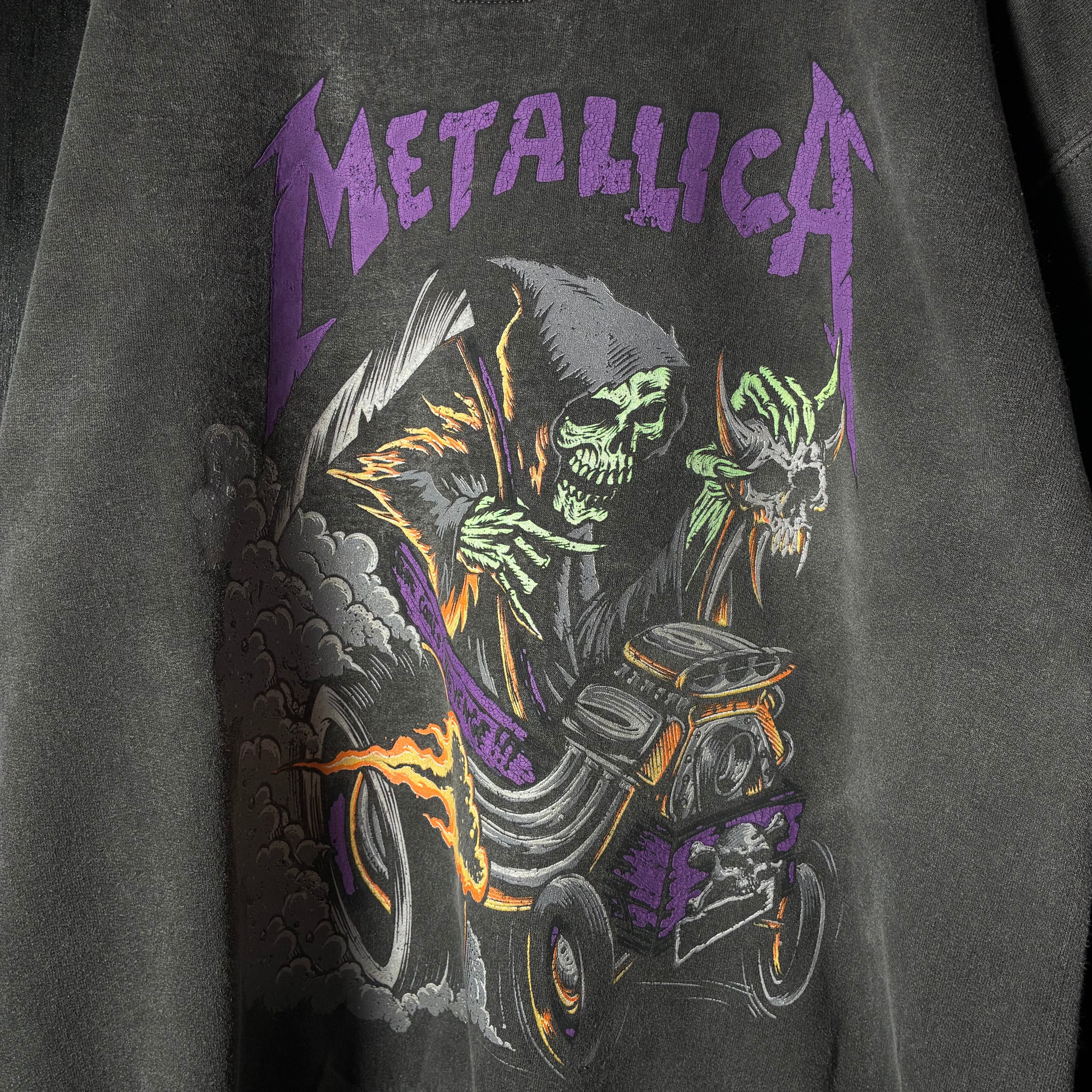 Metallica メタリカ バンドT バンドスウェット オフィシャル ロックT ロックファッション グラフィックスウェット リーパー ホットロッド ヴィンテージ風 フェードブラック