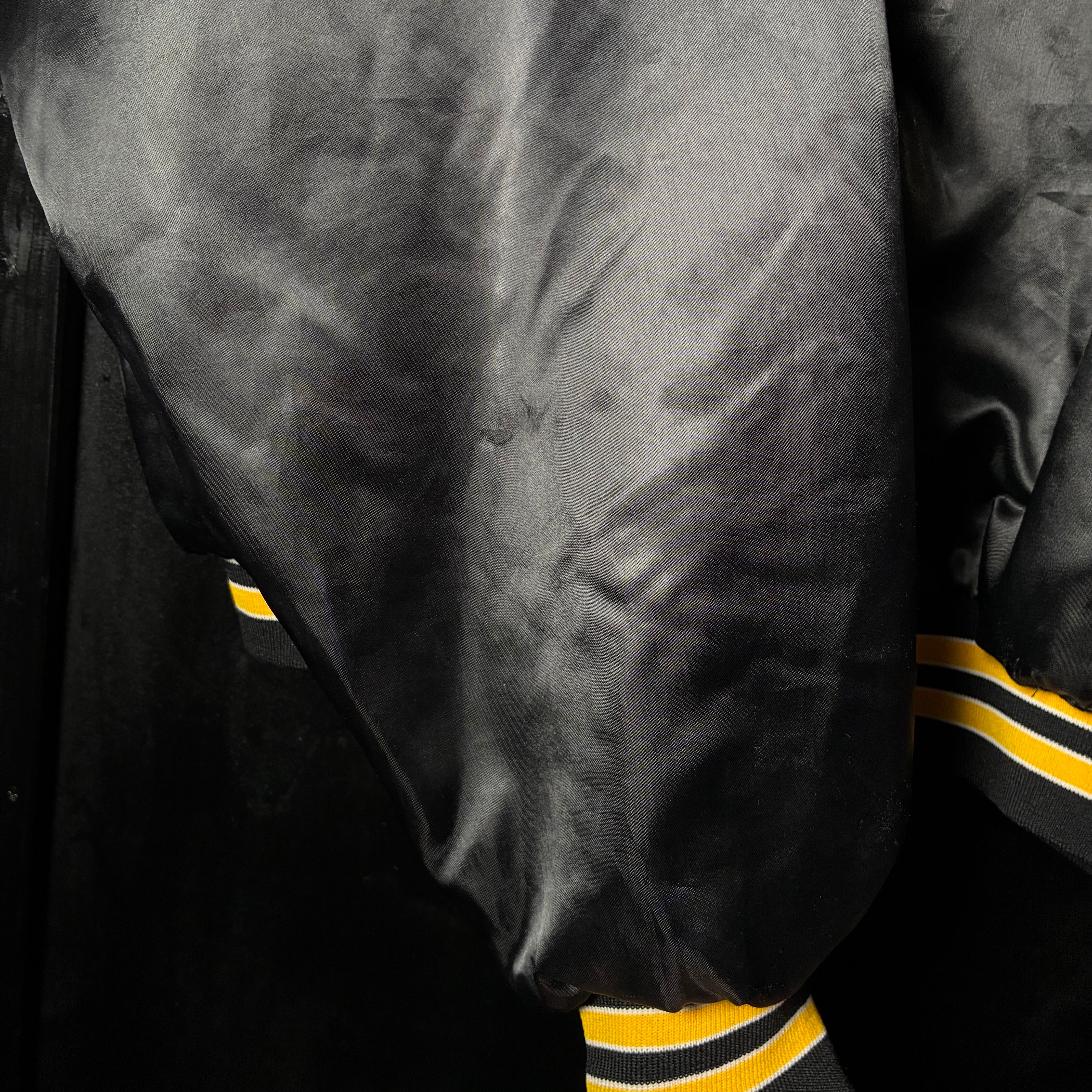70s〜80s USA製 King Louie × TEAMSTERS 黒×イエローリアルワーク ナイロンサテンスタジャン