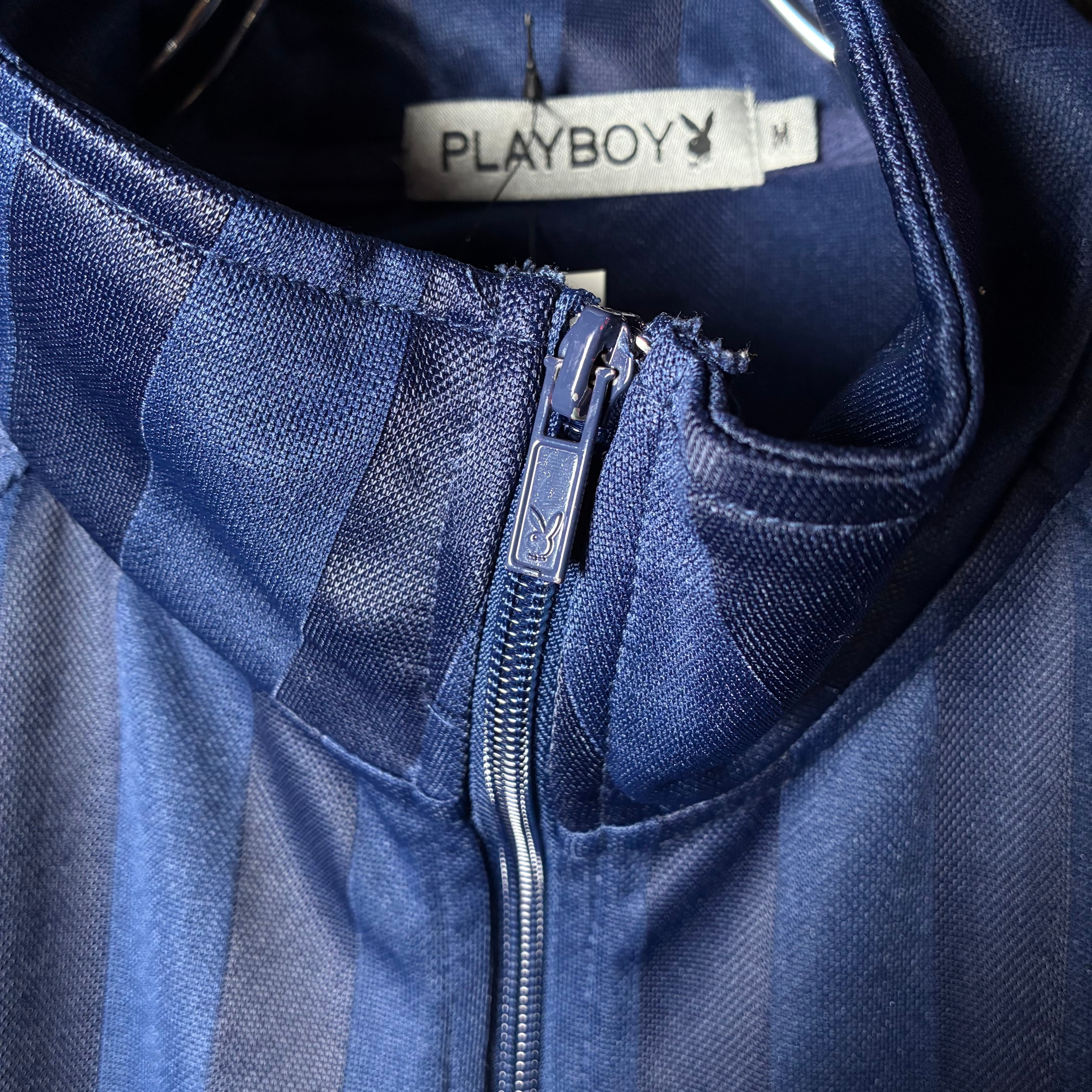 Y2K PLAYBOY トラックジャケット ビッグロゴ × サイドライン ネイビーストライプ