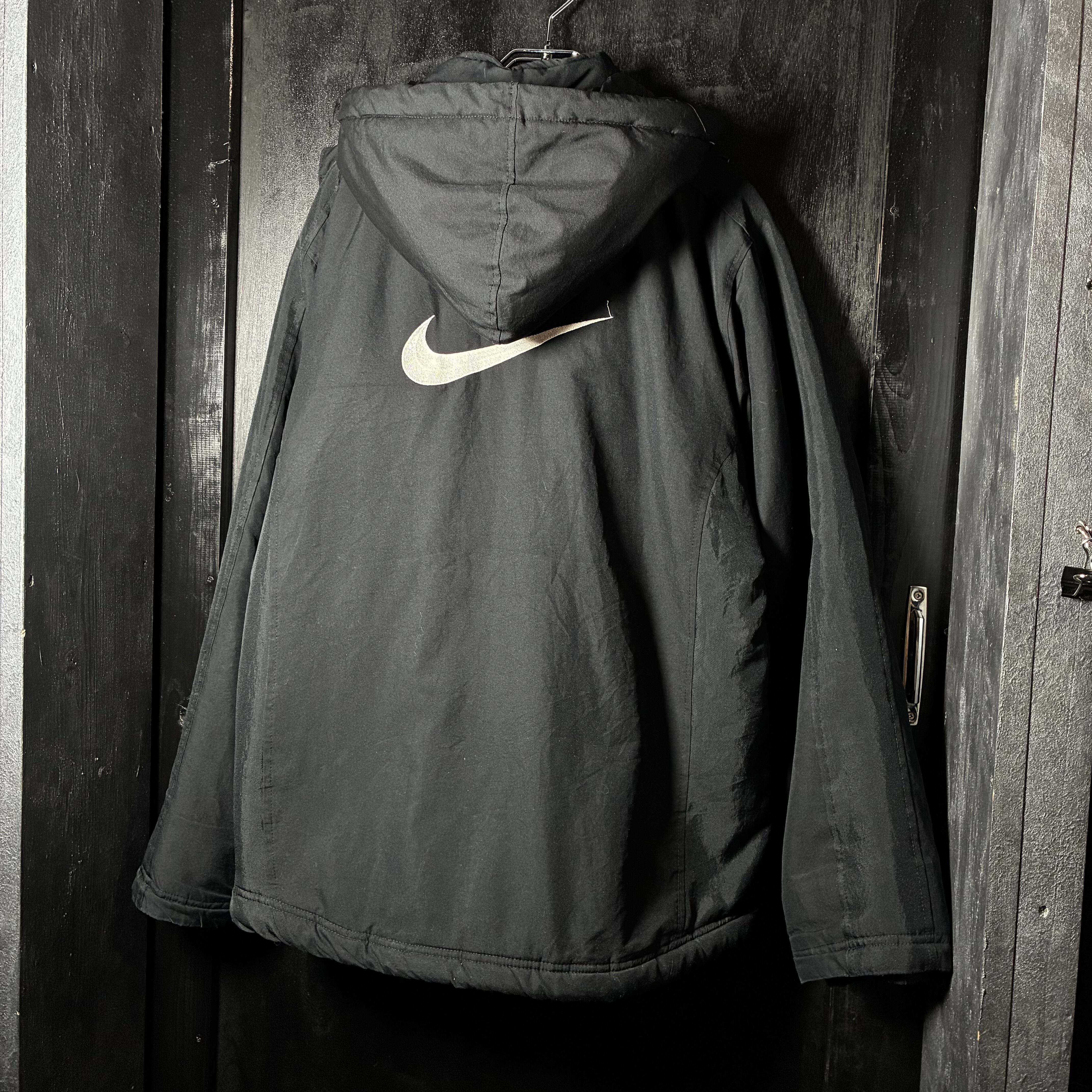00sナイキ ナイキアウター NIKE中綿 ナイロンジャケット ビッグスウッシュ 黒アウター フード脱着 00年代NIKE