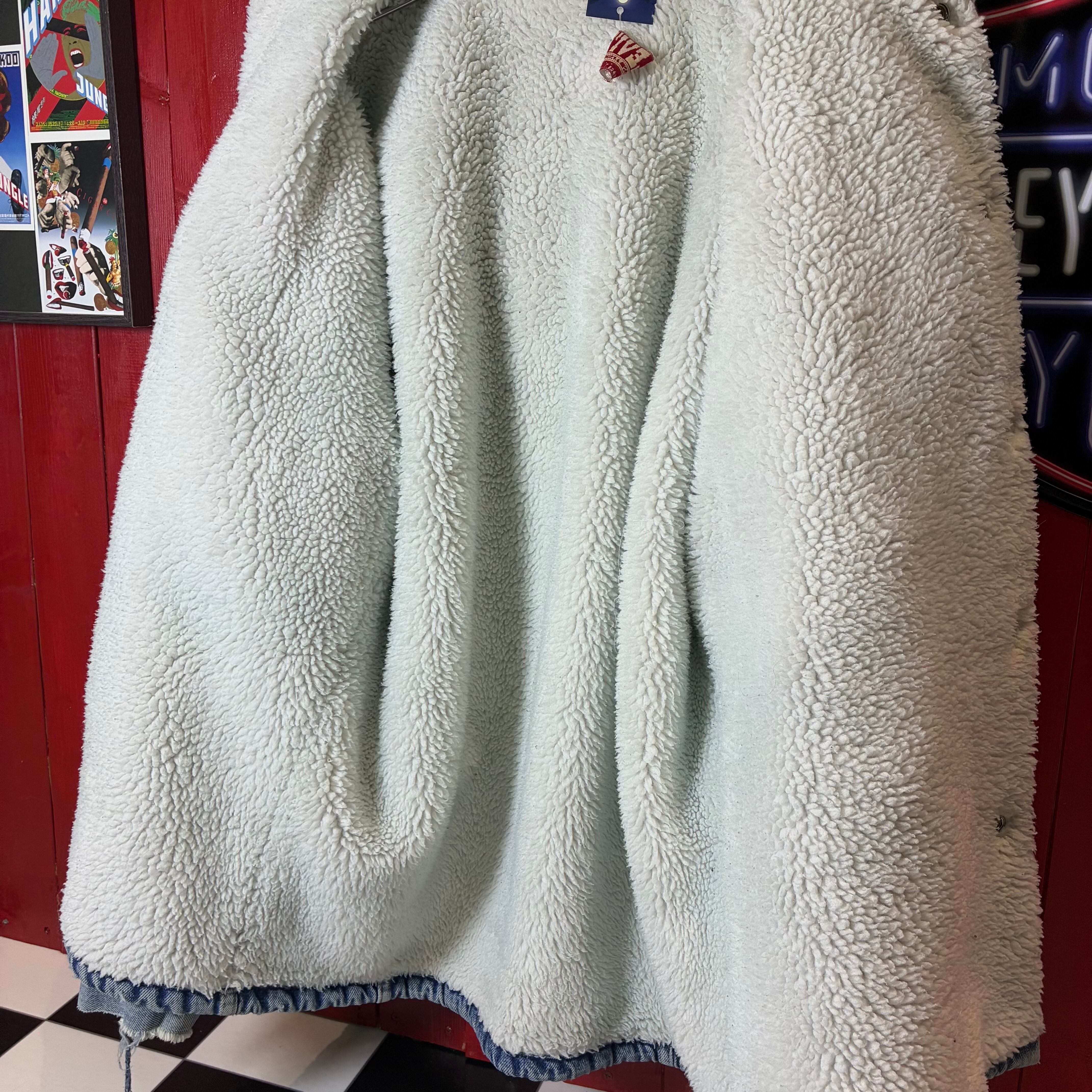 80s〜90s USA製 Levi’s ボアデニムジャケット ミドル丈 ブルー L リーバイス