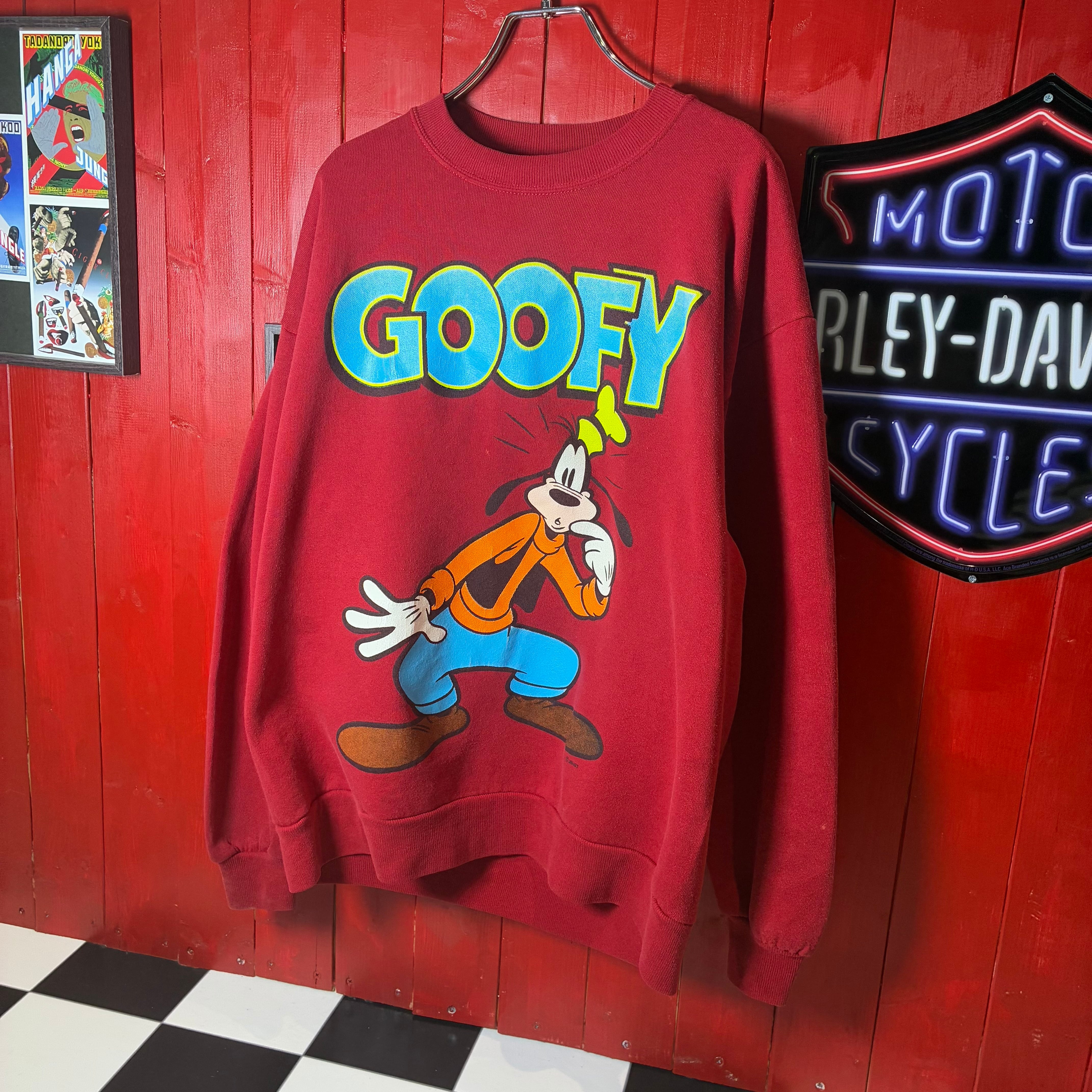 90s USA製 Velva Sheen Disney GOOFY オフィシャルスウェット 赤 L