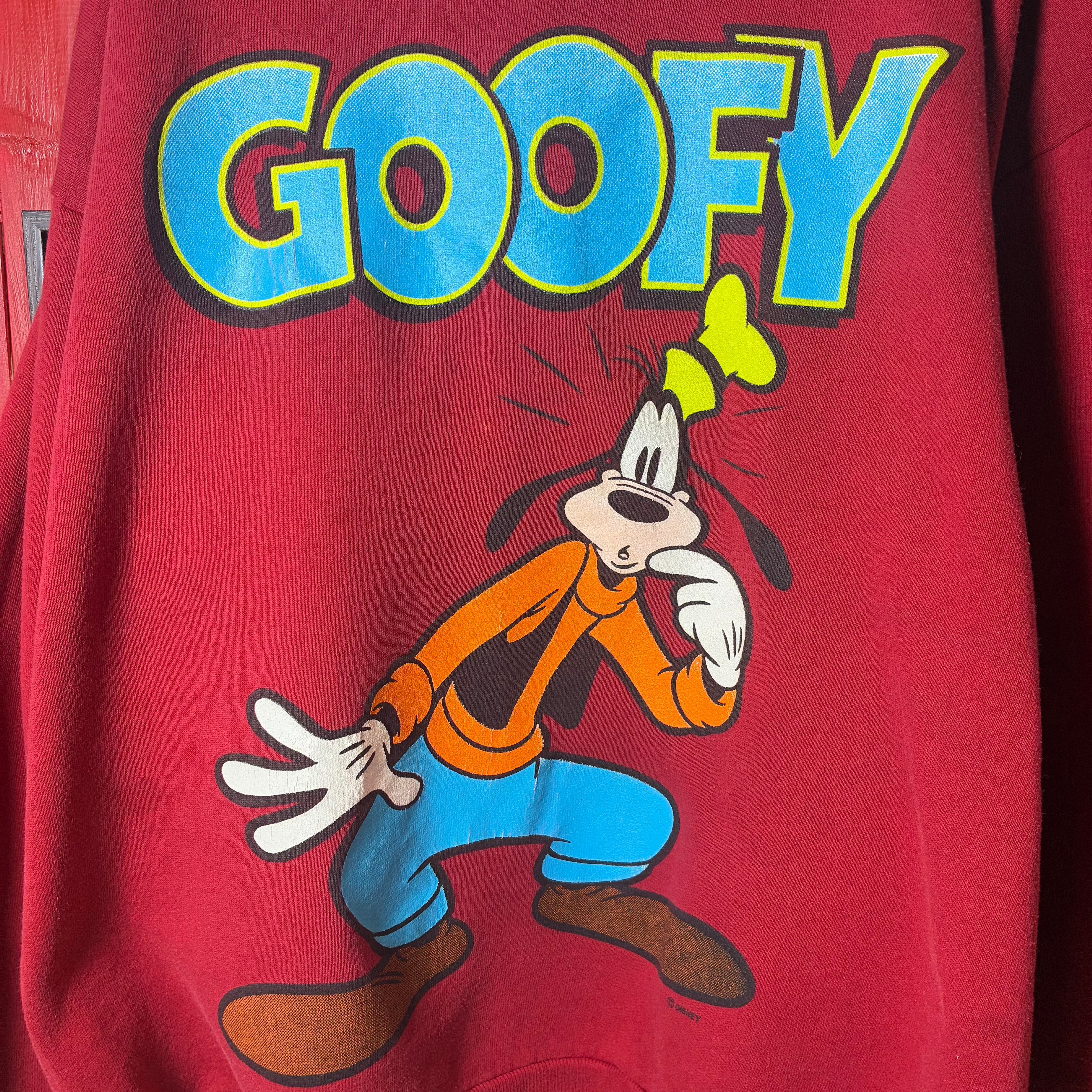 発色の良いレッドに、大判で描かれたGOOFYの表情がとにかくキャッチーな一着。