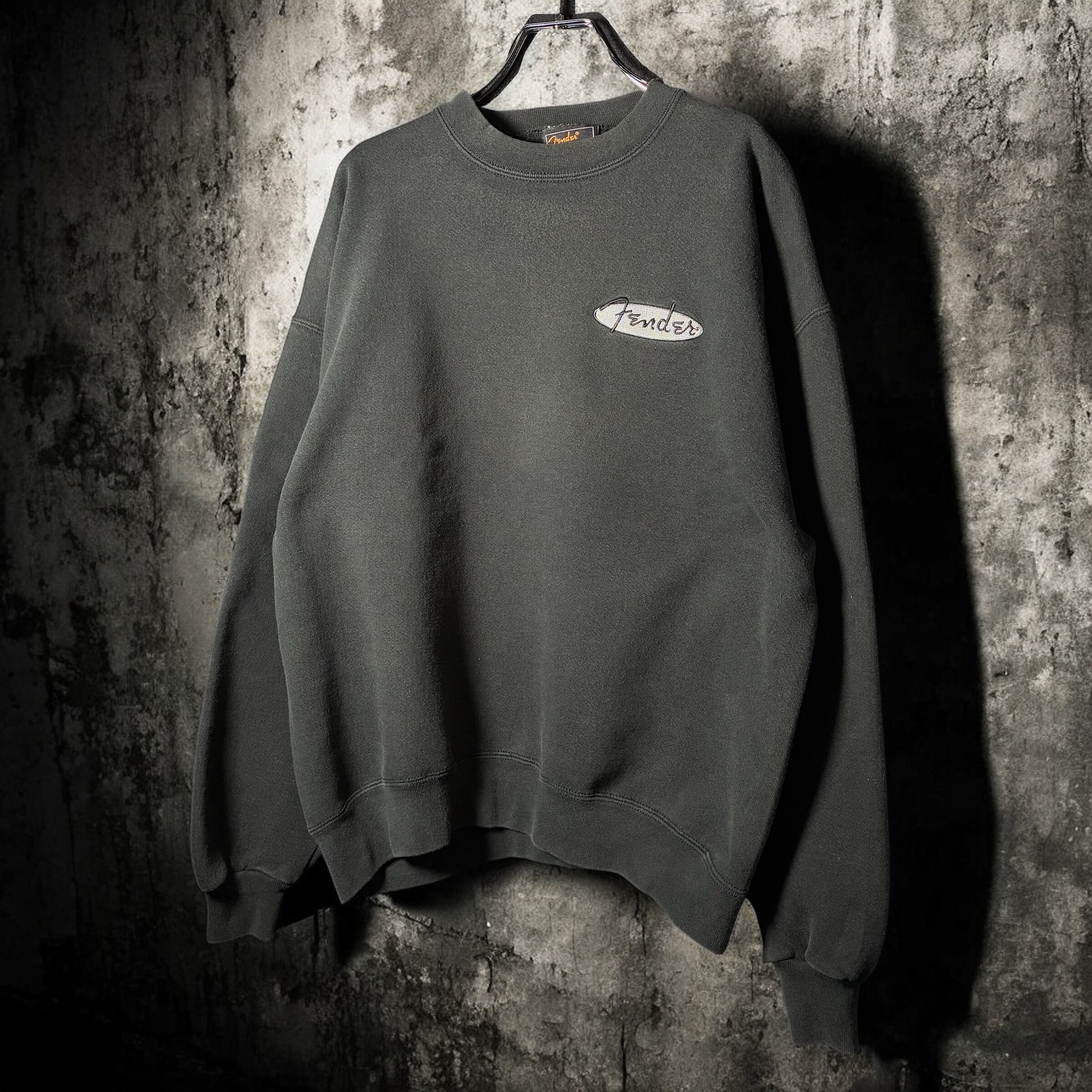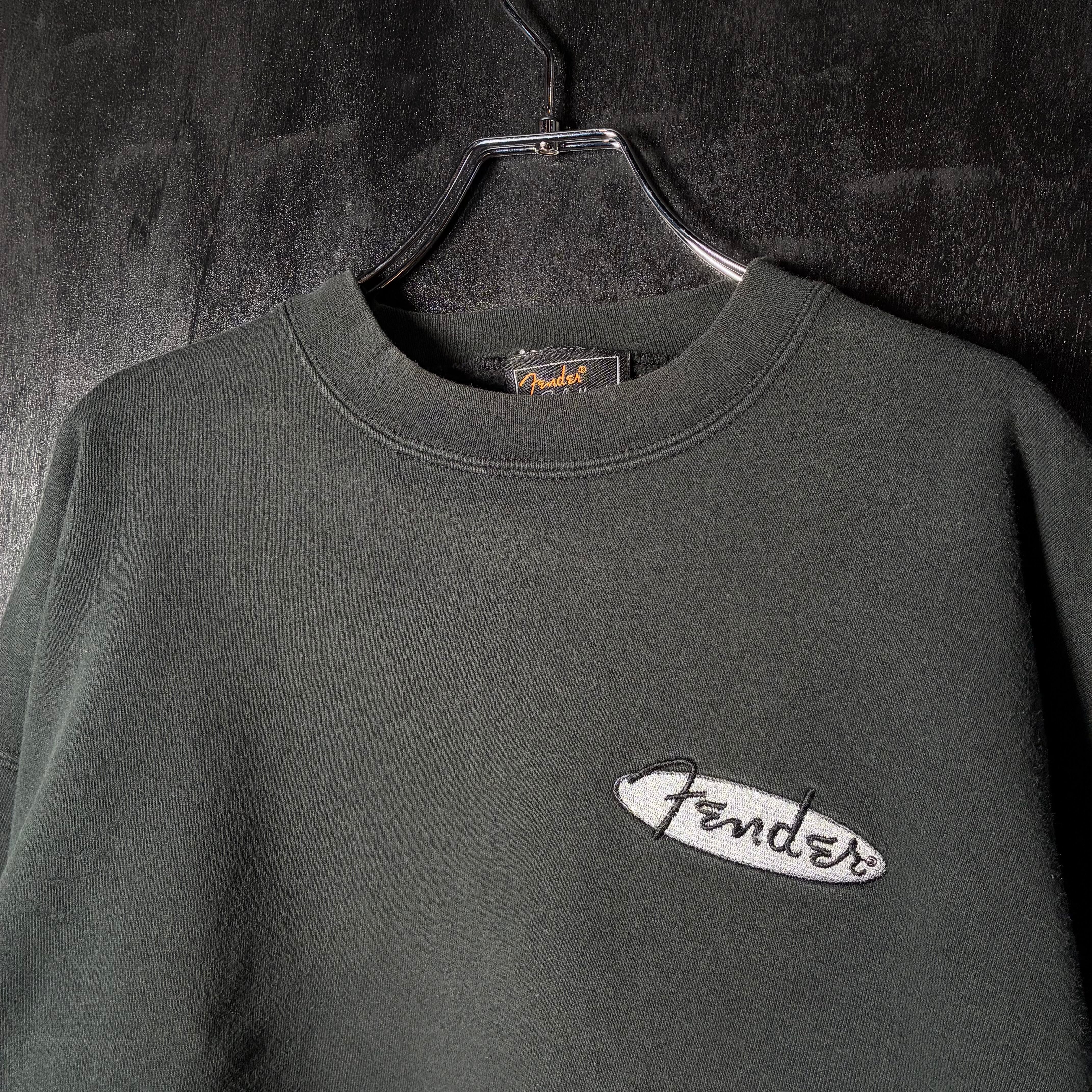 90s USA製 Fender Solidbody ロゴスウェット フェードブラック XL