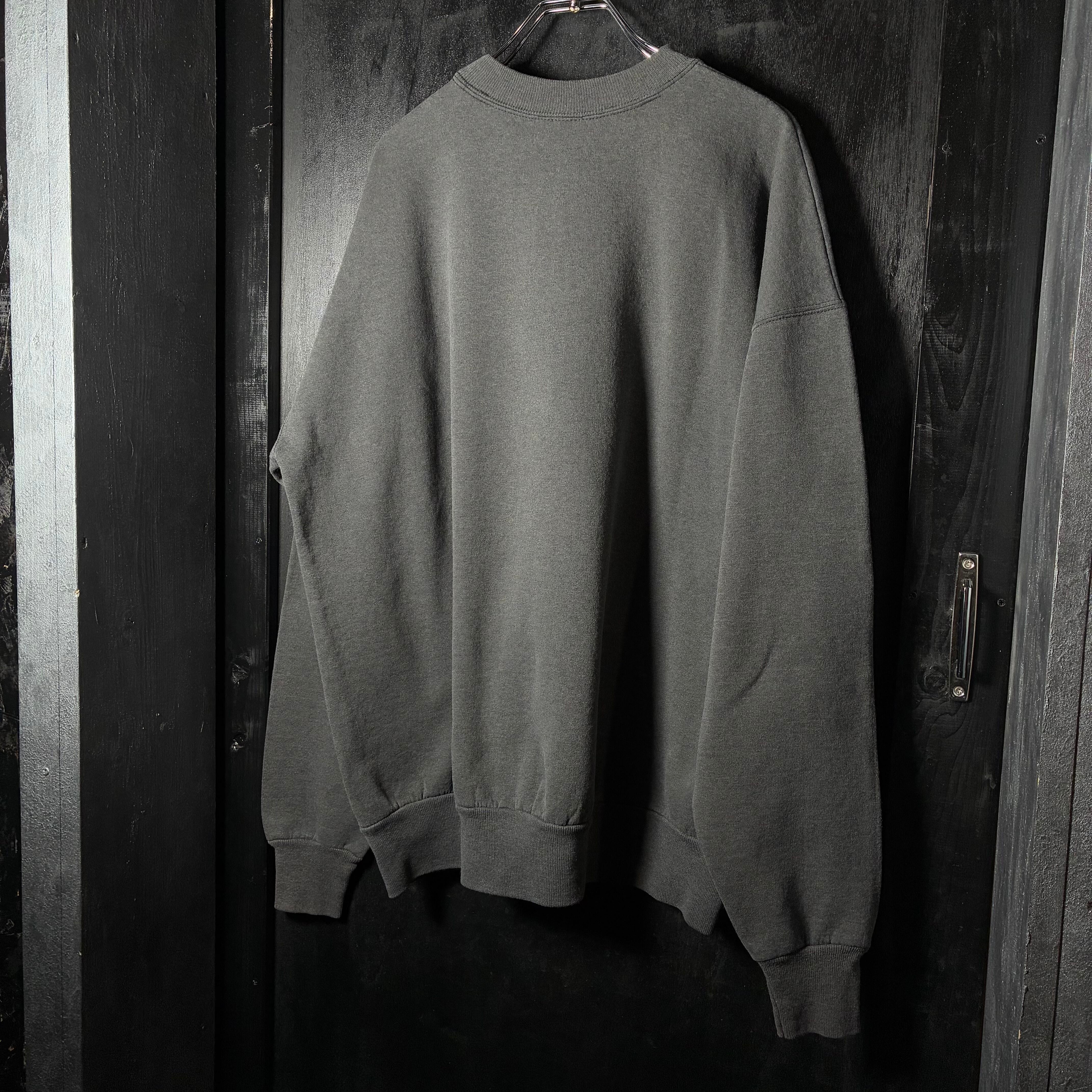 ブラックボディは経年でムラ感のあるフェードへと仕上がり、プリントのブルーがより印象的に浮かび上がる、完成された雰囲気を持つスウェットです