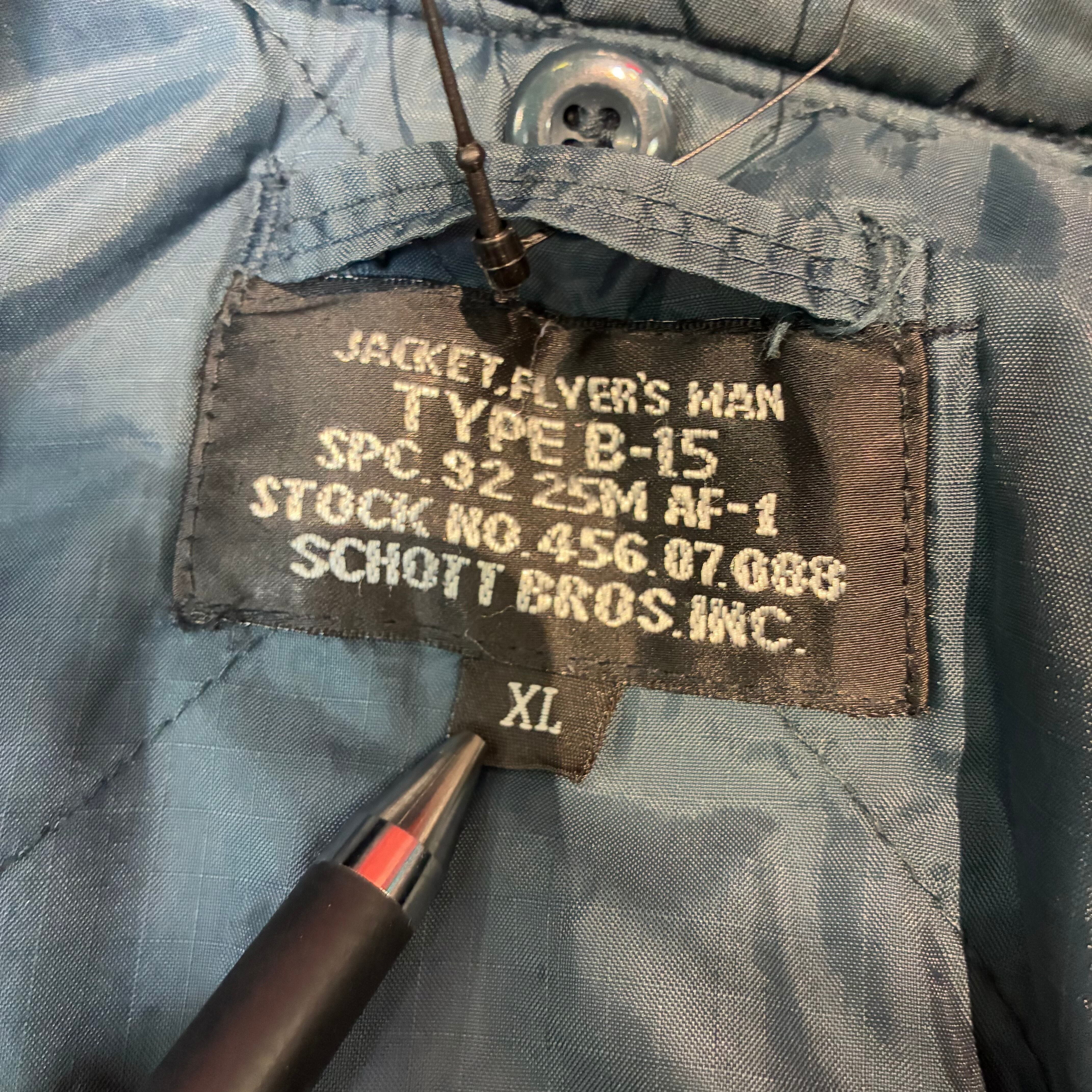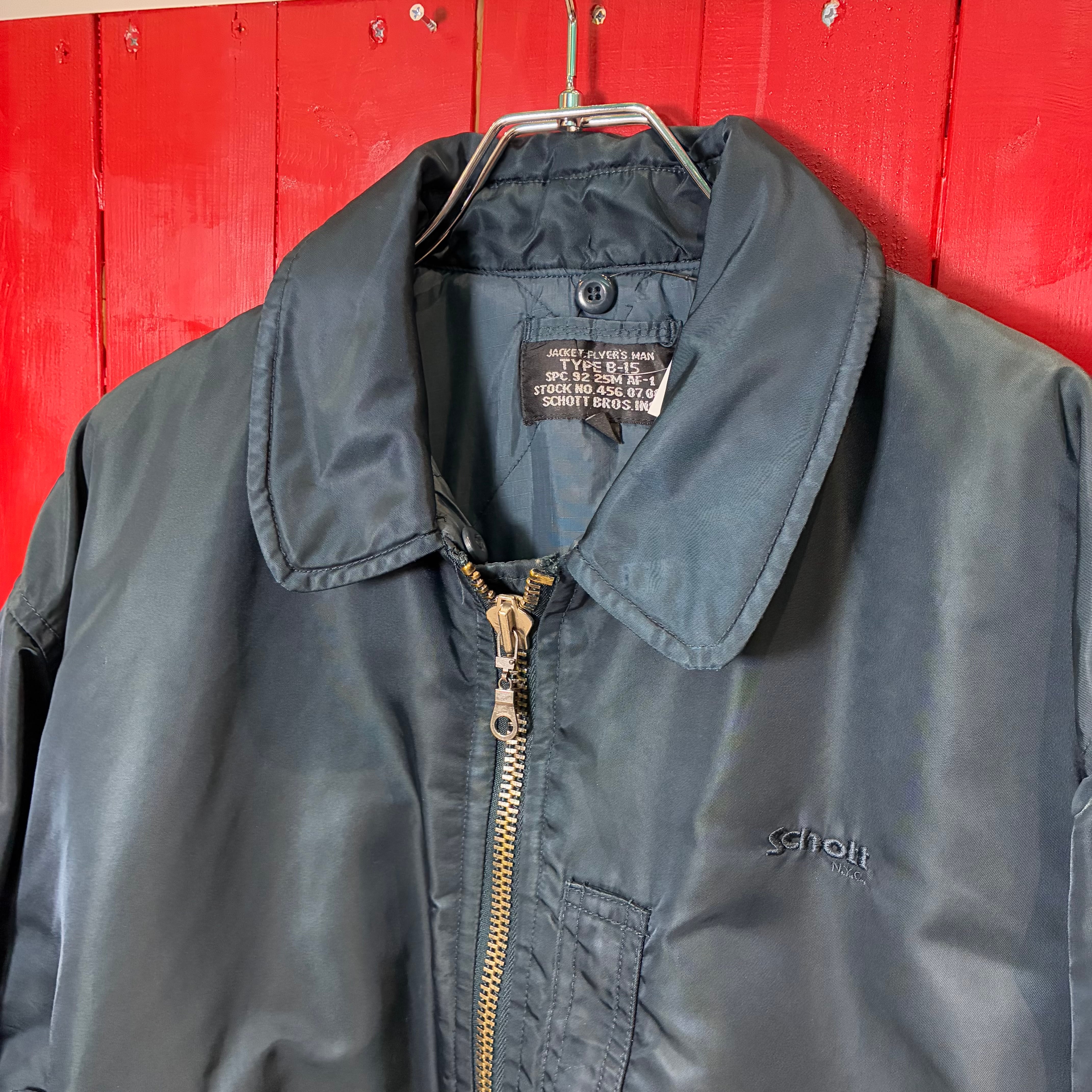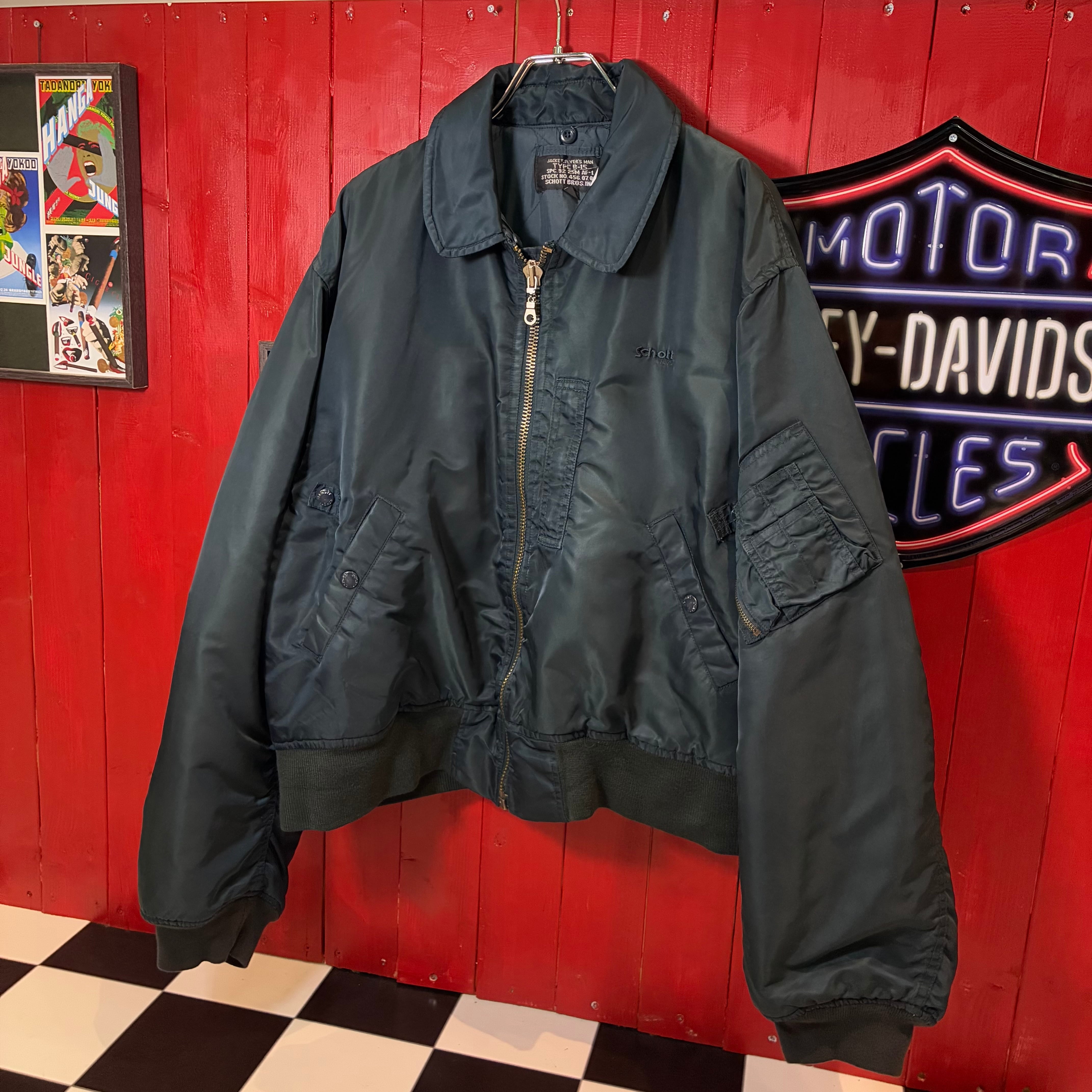 Schott,B-15,フライトジャケット,ボンバージャケット,MA-1,ミリタリージャケット,短丈,ネイビー,ナイロンジャケット,ショット,古着,アウター