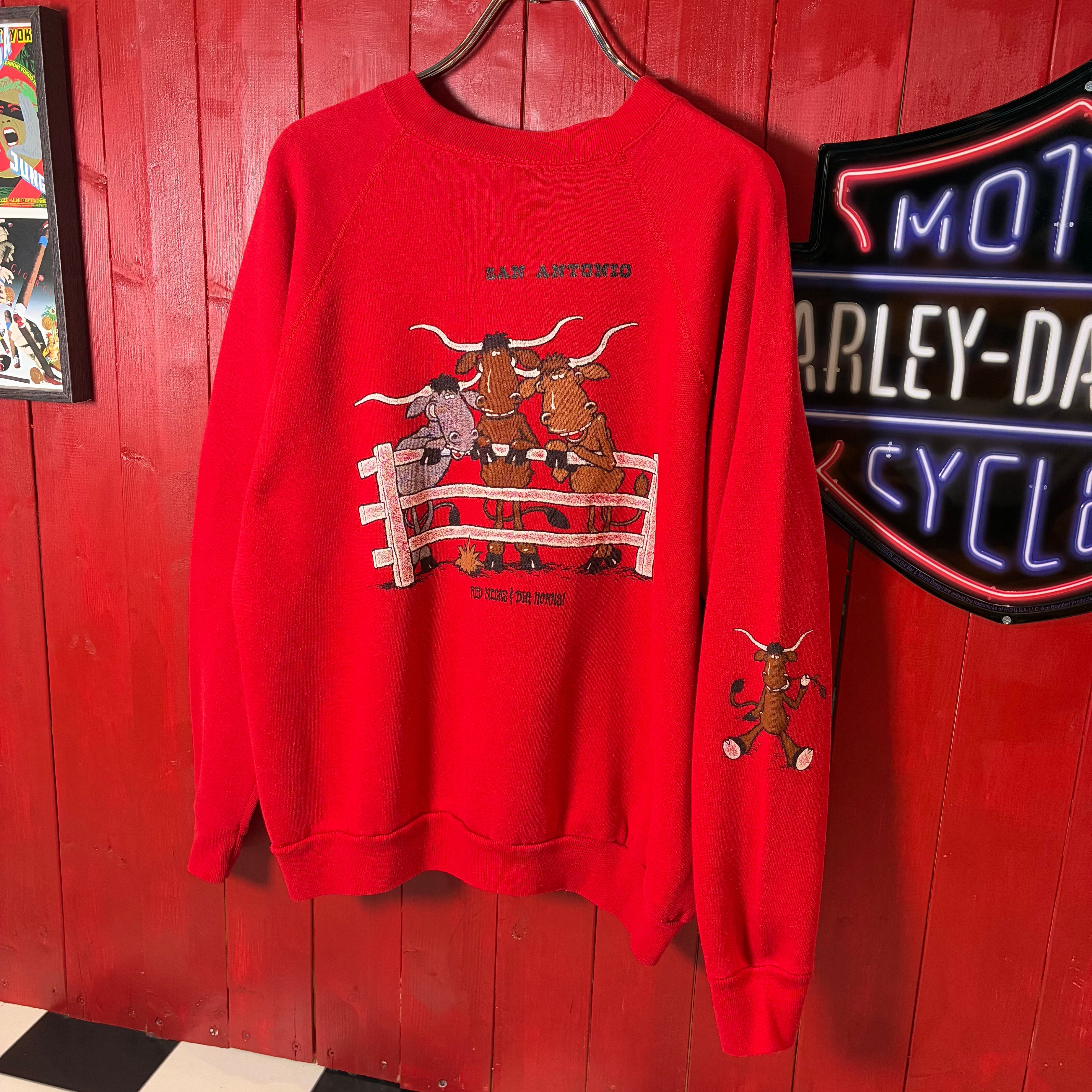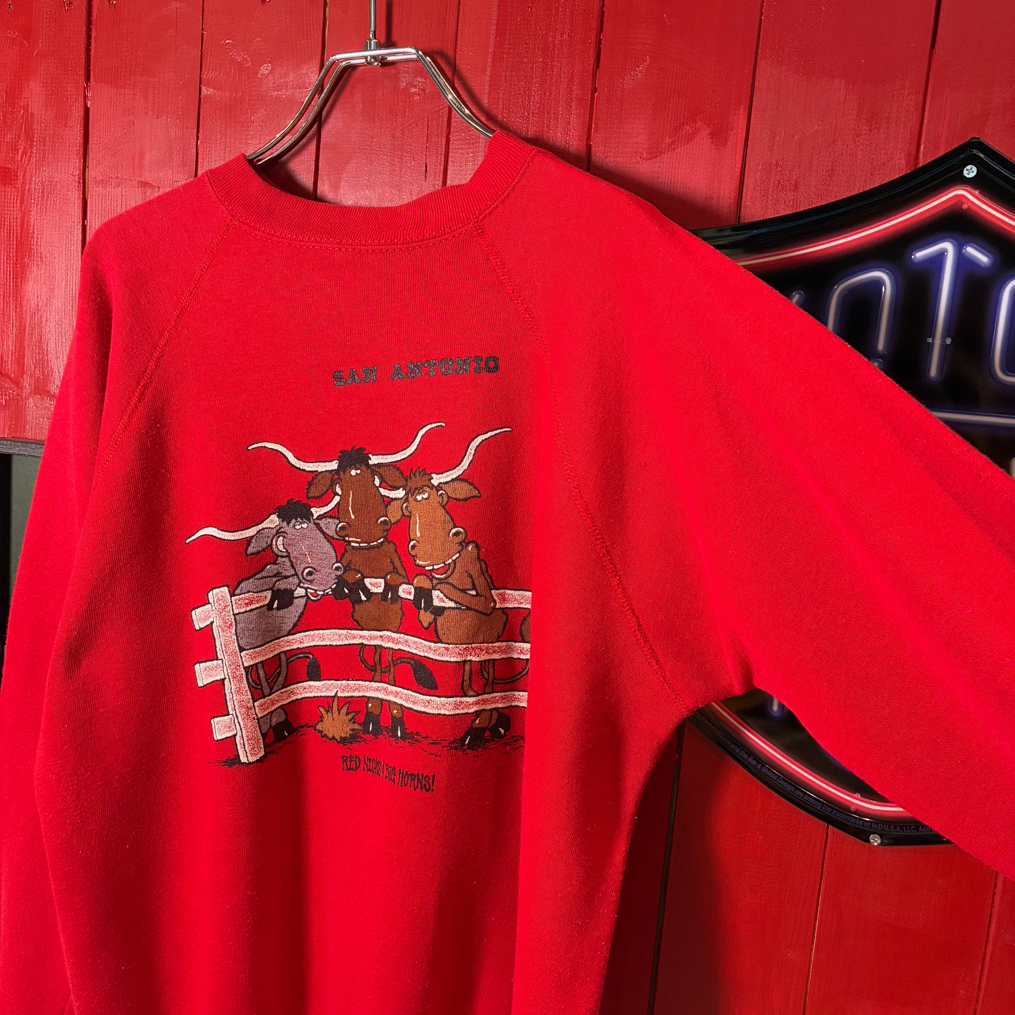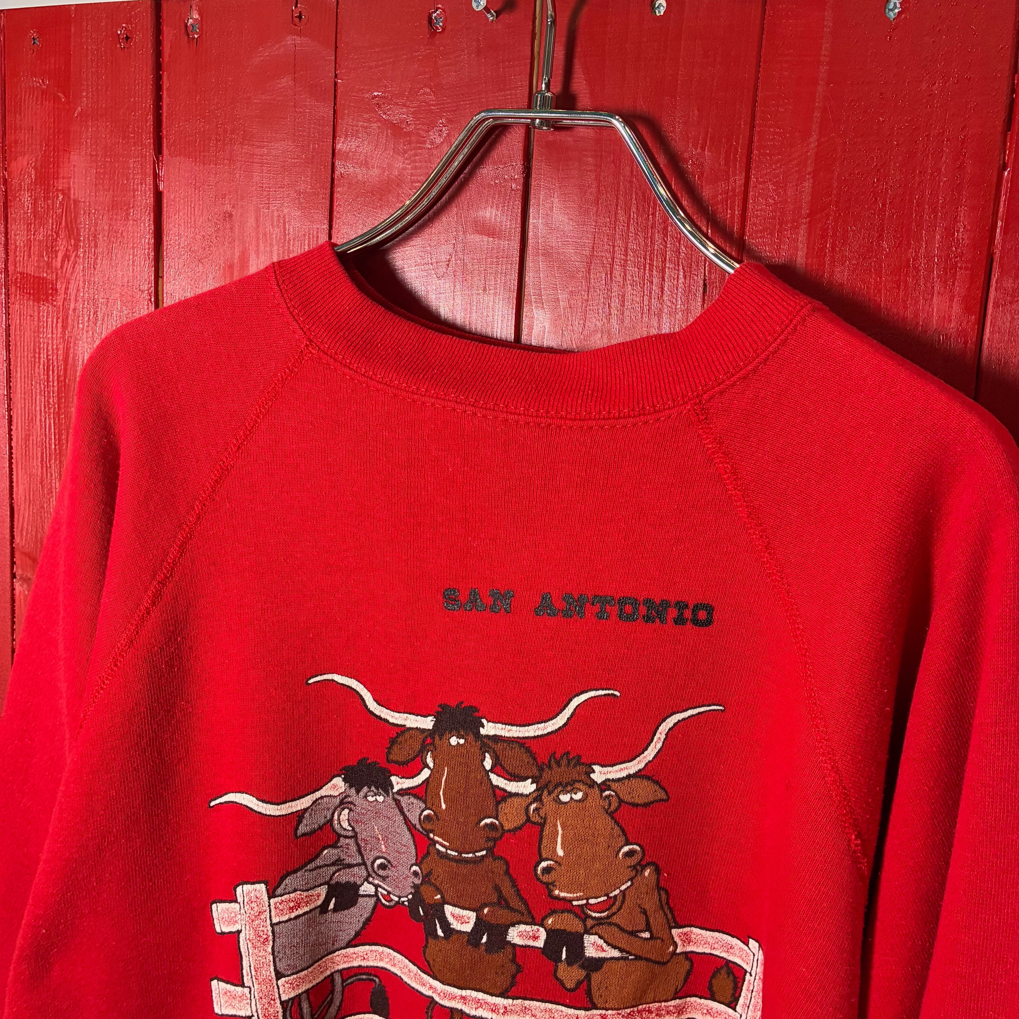 80s USA製Tultex テキサスサンアントニオ ヴィンテージラグランスウェット ロデオ カウボーイ 牛