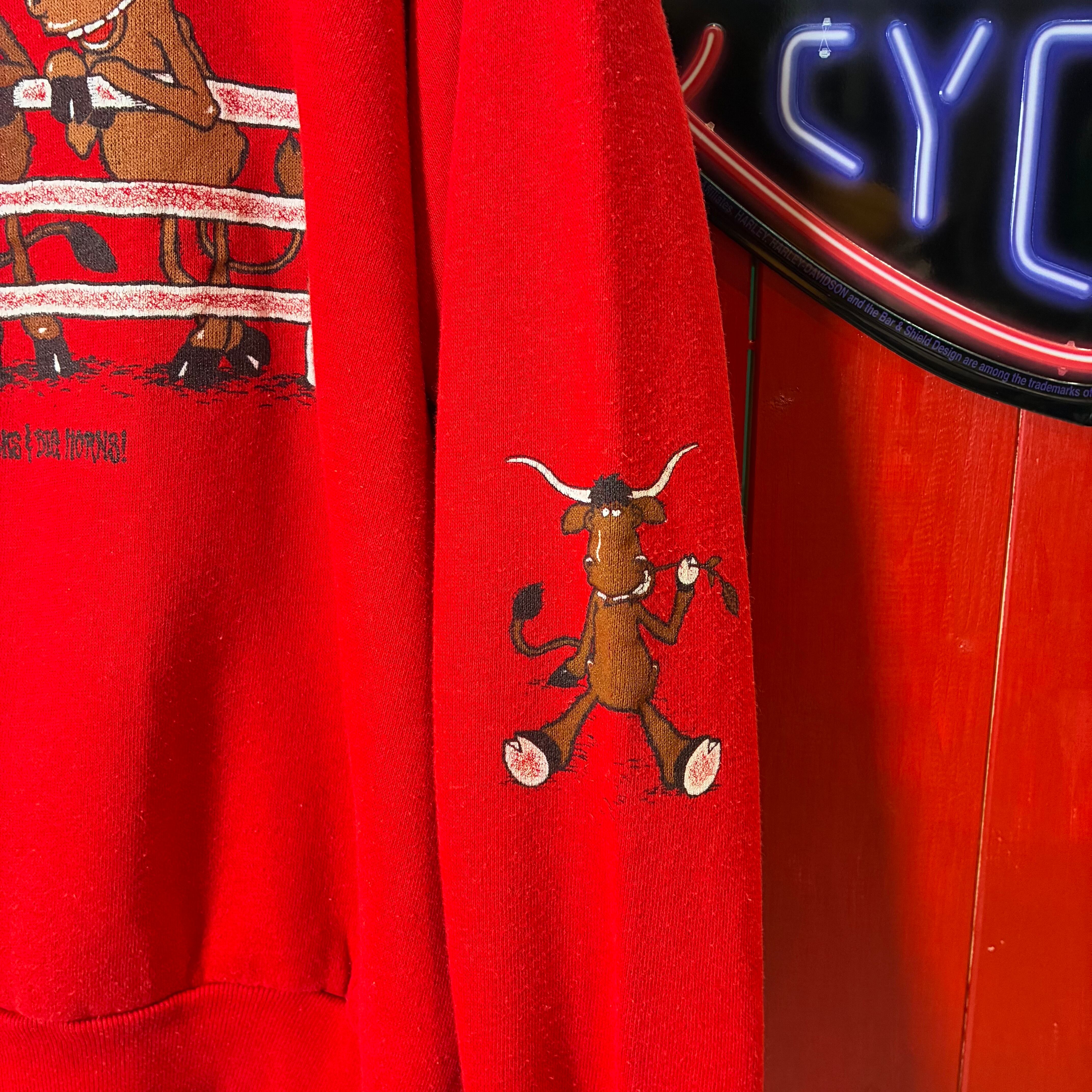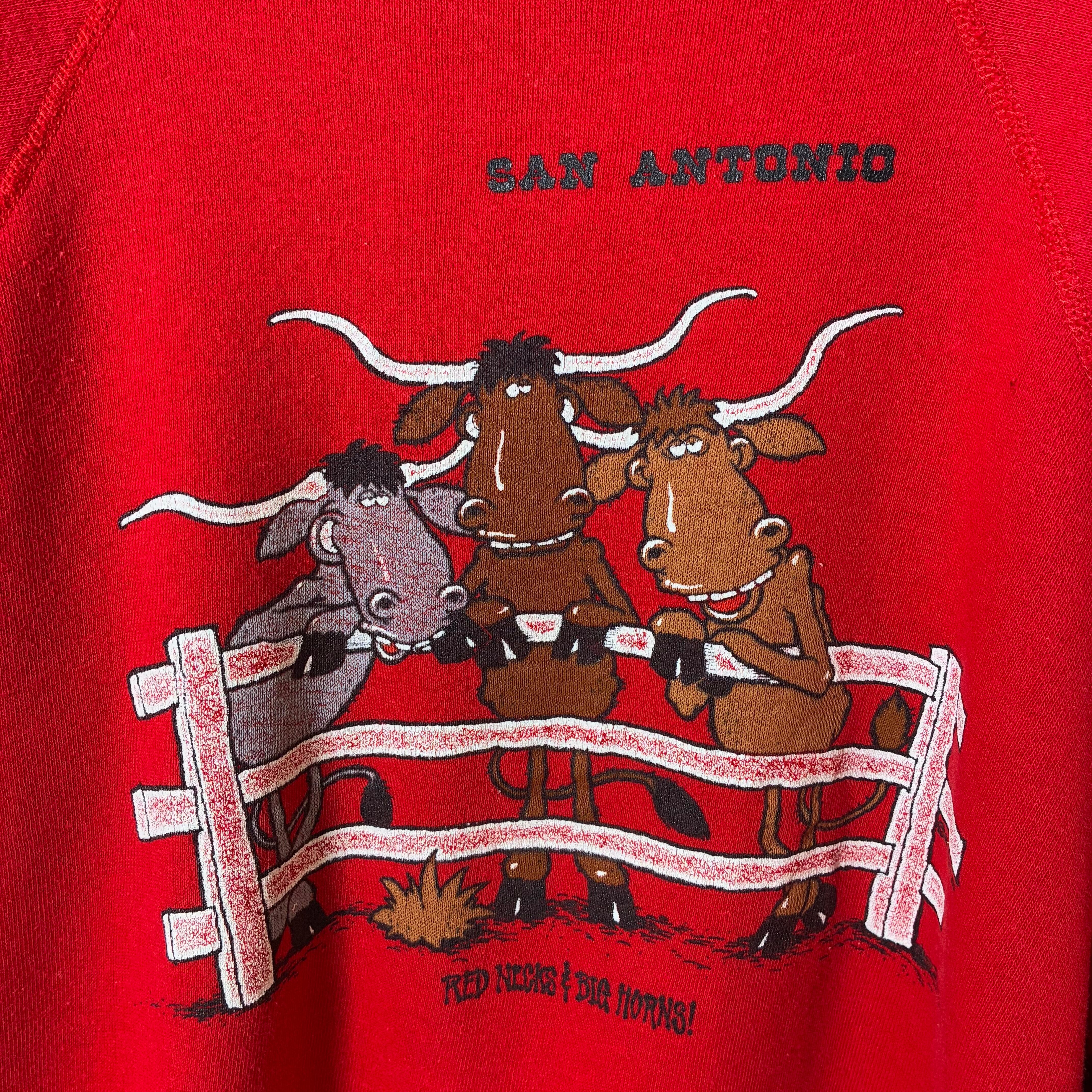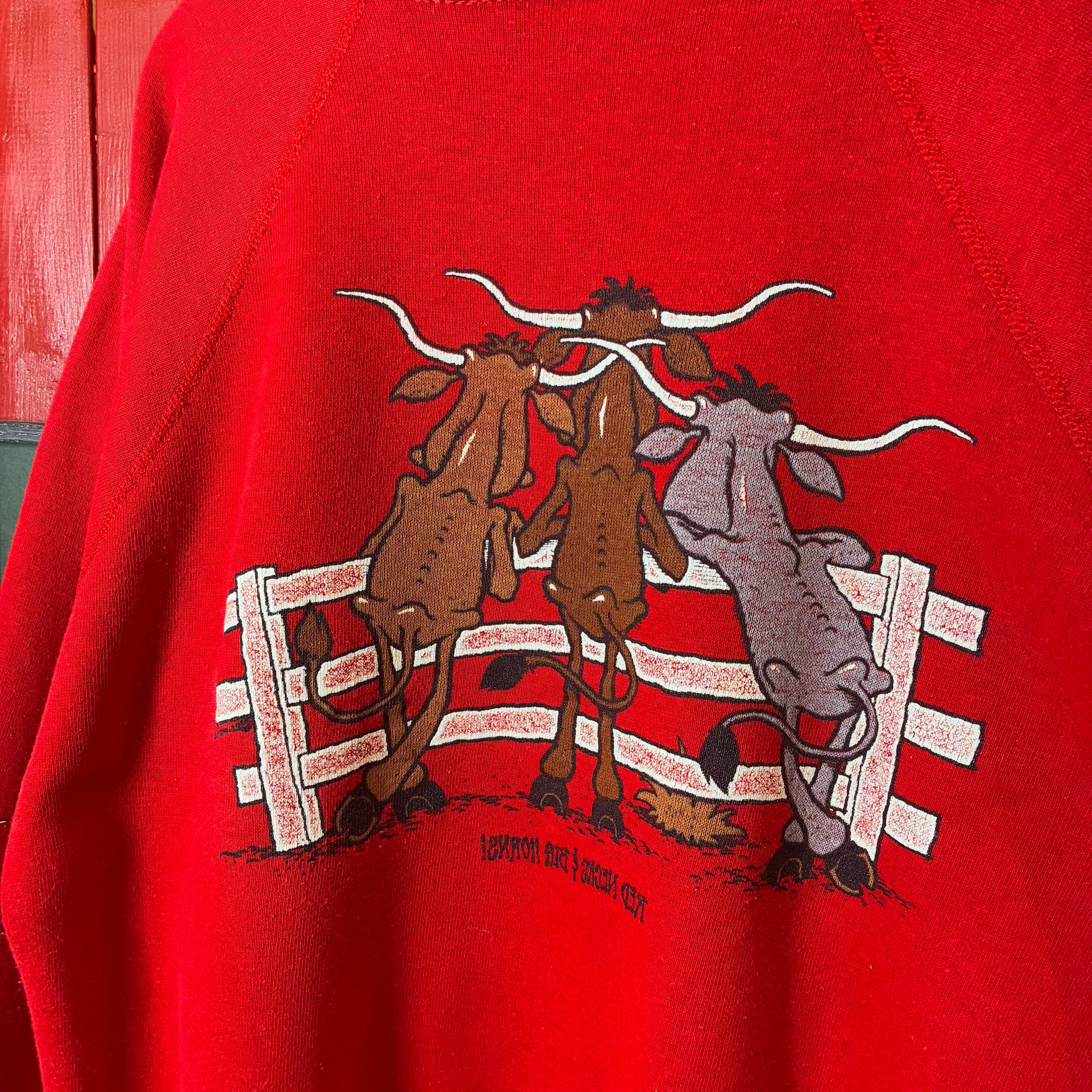 80s USA製Tultex テキサスサンアントニオ ヴィンテージラグランスウェット ロデオ カウボーイ 牛