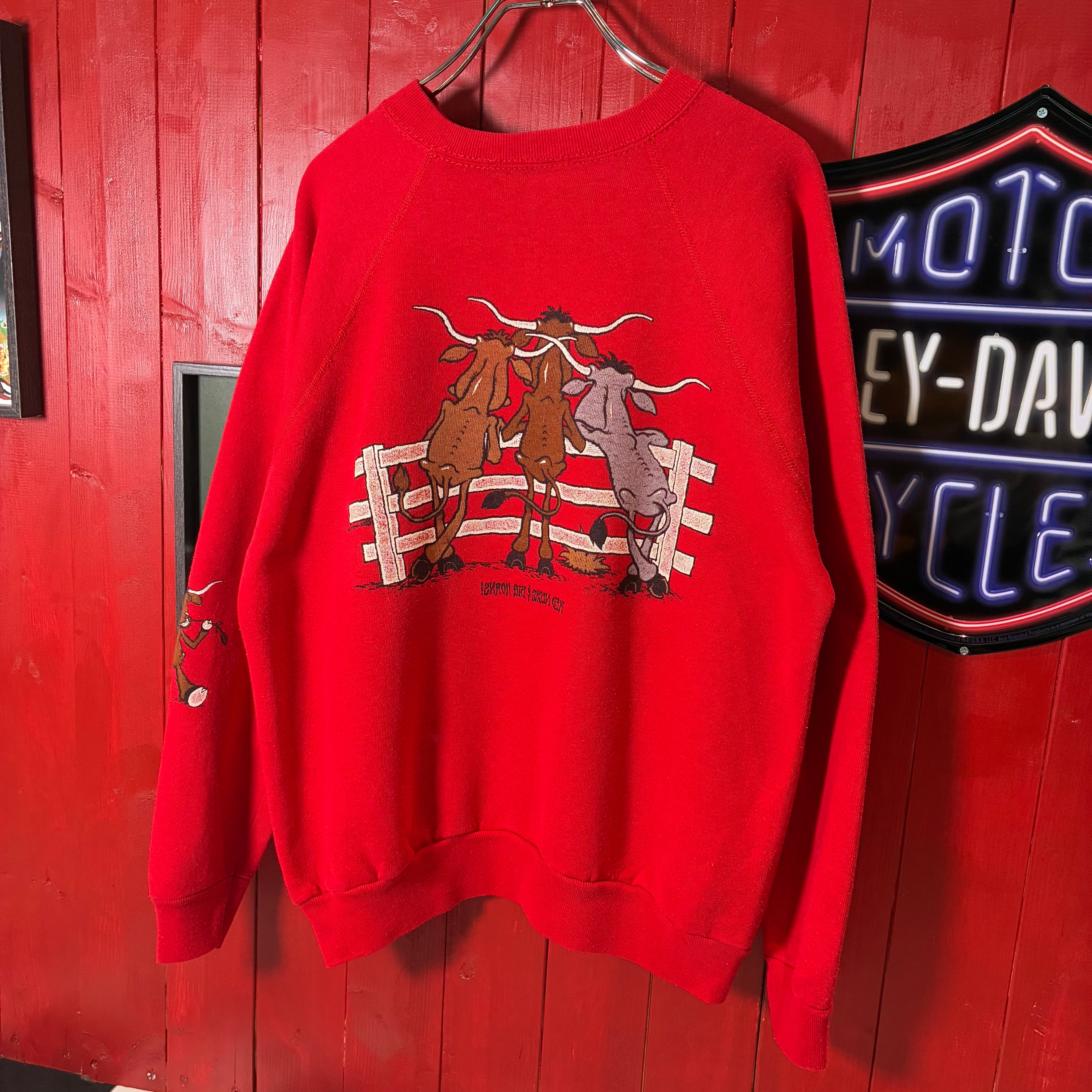 80s, USA製, TULTEX, ヴィンテージスウェット, アニマルプリント, バックプリント, 袖プリント, カウボーイ, レッドスウェット, 古着