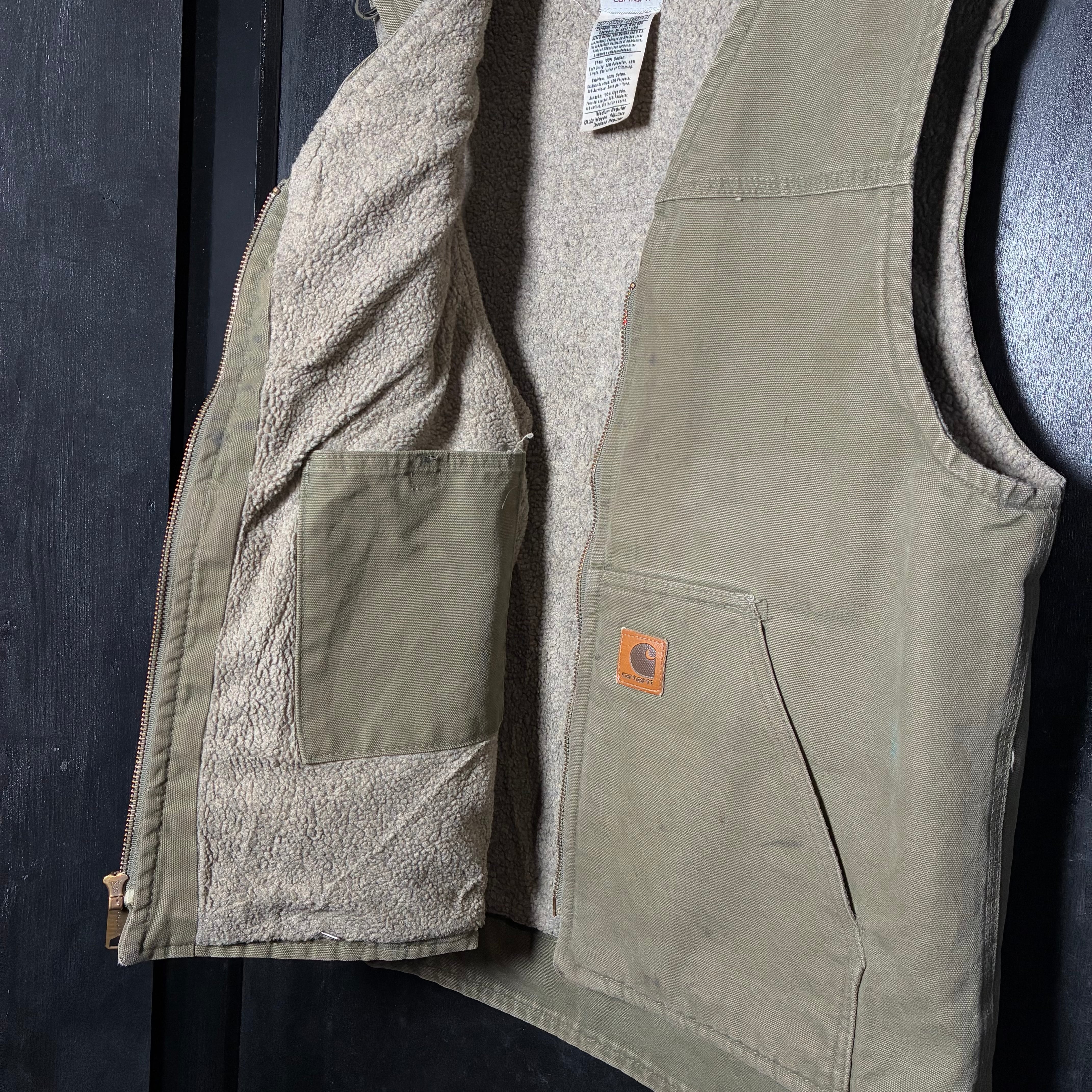 Carhartt ダックベスト, カーハート ベスト, 裏ボアベスト, ワークベスト, カーキベスト, メキシコ製 Carhartt, USA古着, ワークウェア