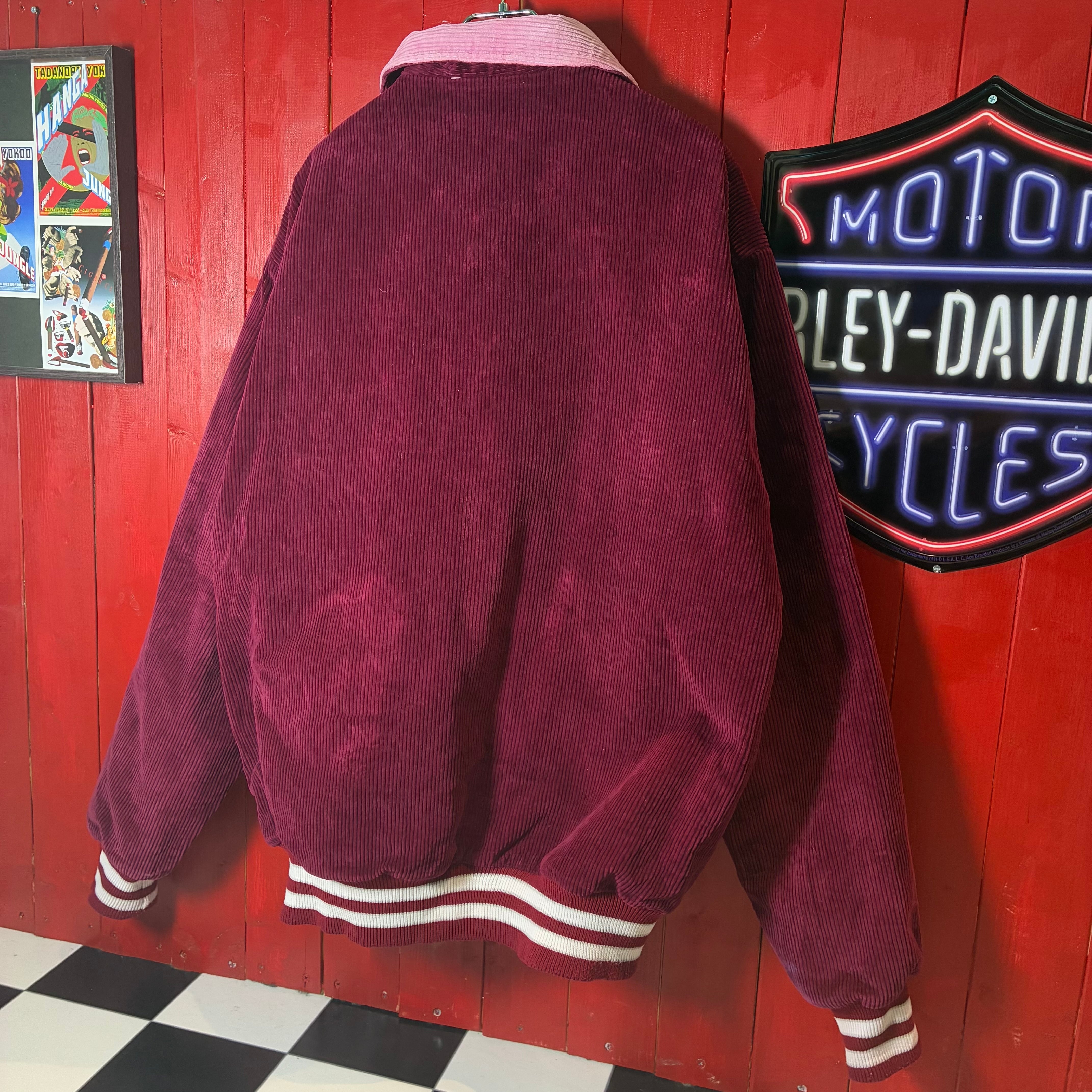 90s USA製 DeLONG コーデュロイスタジャン ガス会社企業モノ バーガンディ L