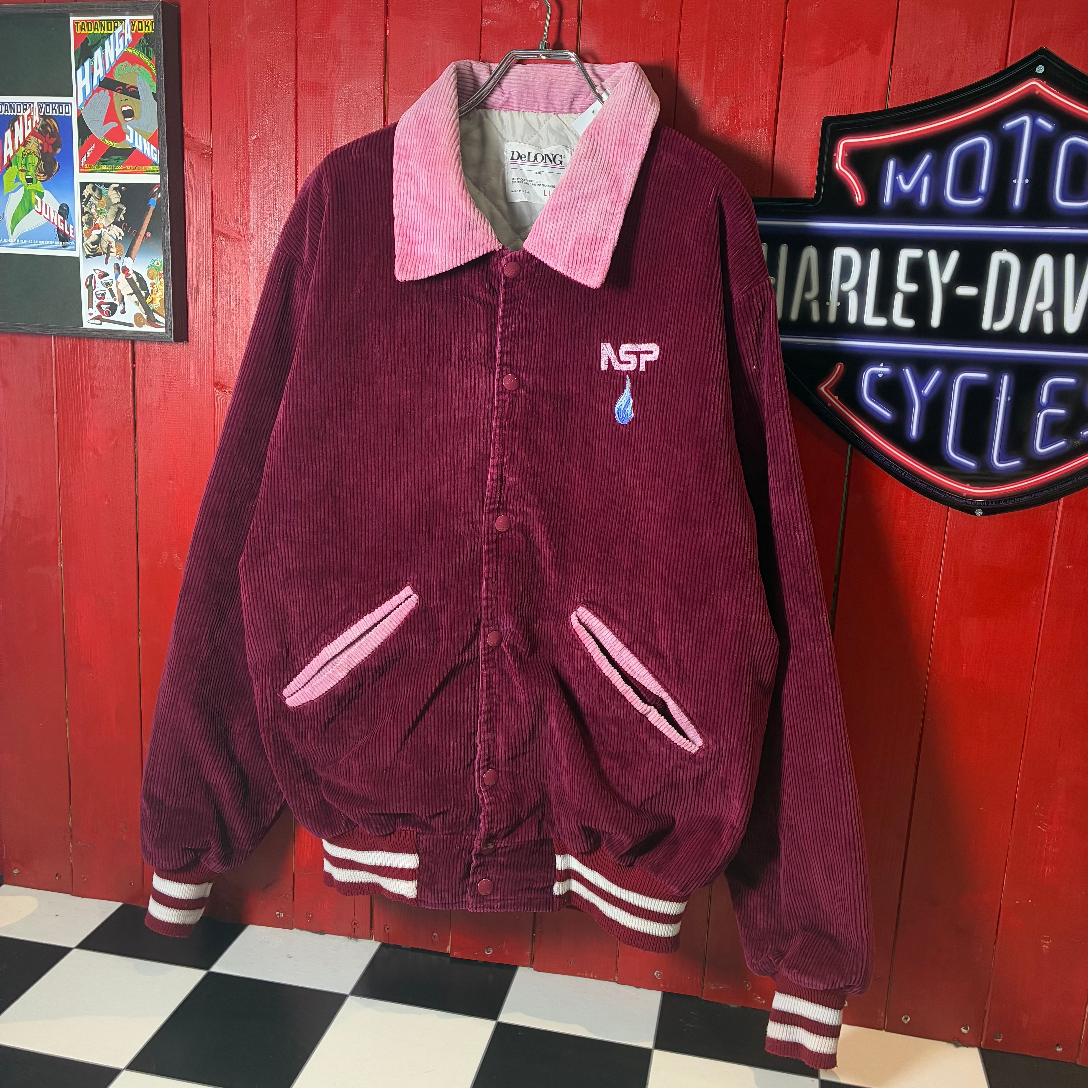 DeLONG USA製 コーデュロイスタジャン 90s 企業ロゴ バーガンディ スタジャン アメリカ古着 ワーク系 ヴィンテージ