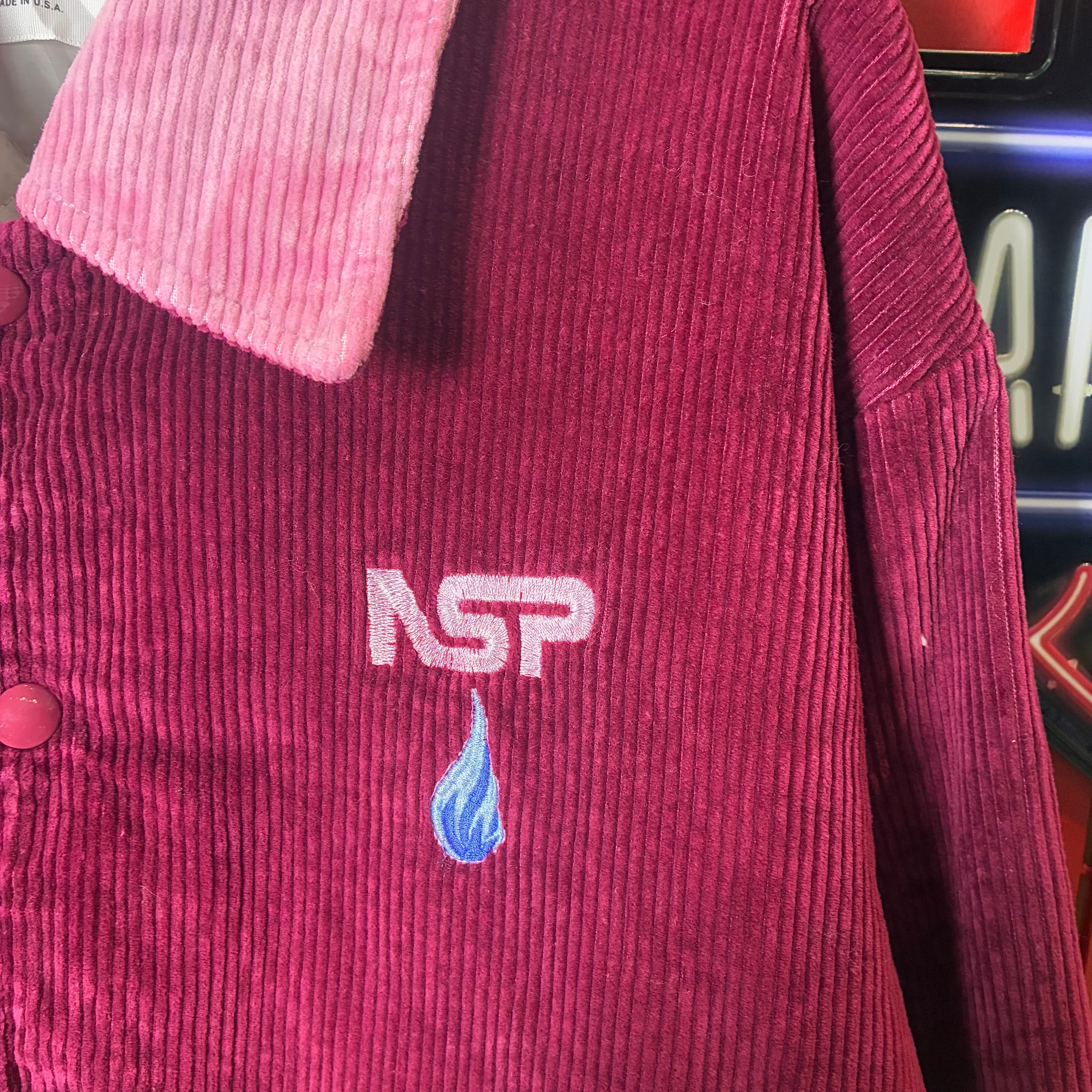 胸元の「NST」ロゴとブルーフレイム刺繍は、アメリカのガス関連企業モノと見られるデザインで、いかにもUSワークカルチャーらしい一着。
