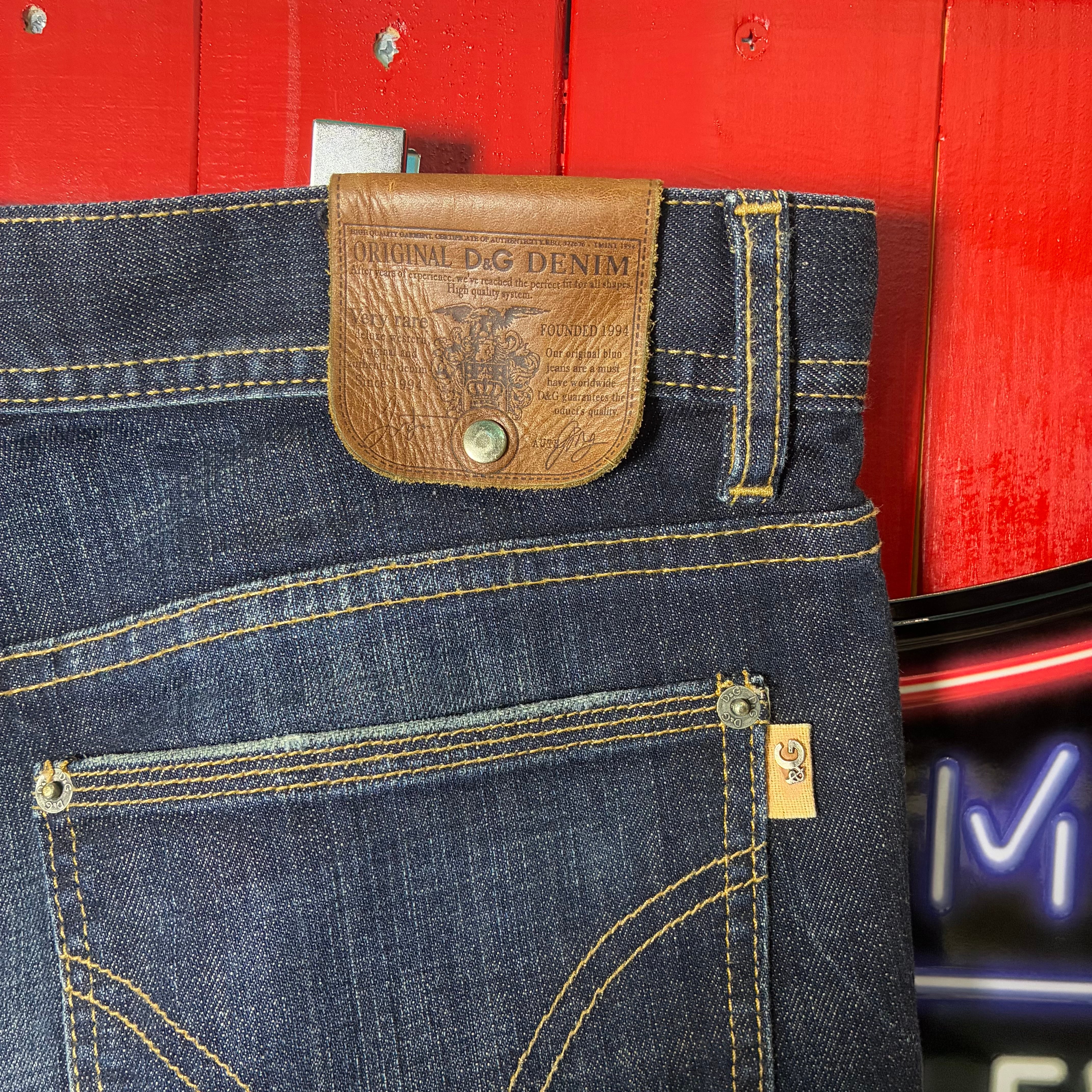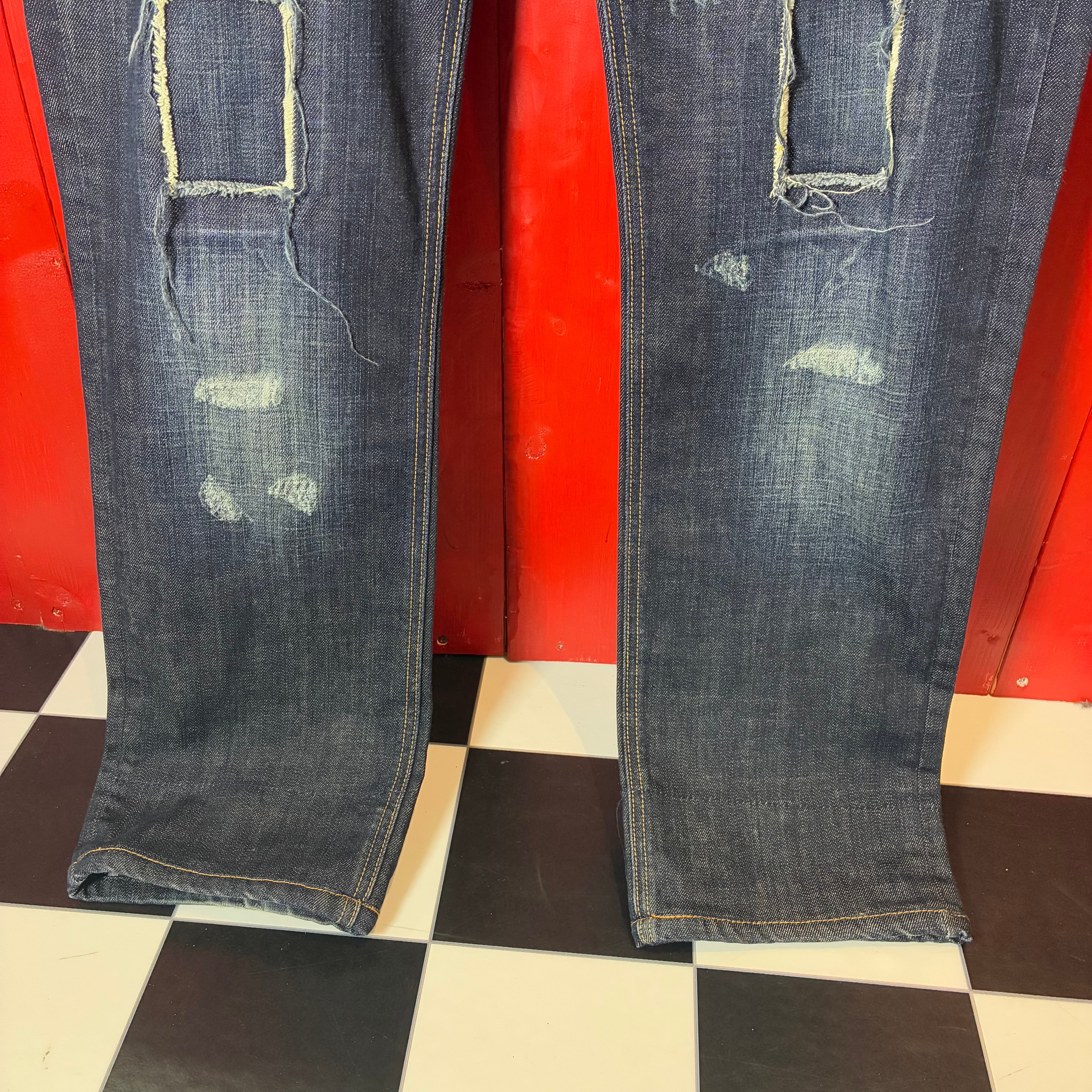 00s イタリア製 D&G DOLCE&GABBANA Y2Kダメージデニムパンツ 濃紺 ドルガバ W34
