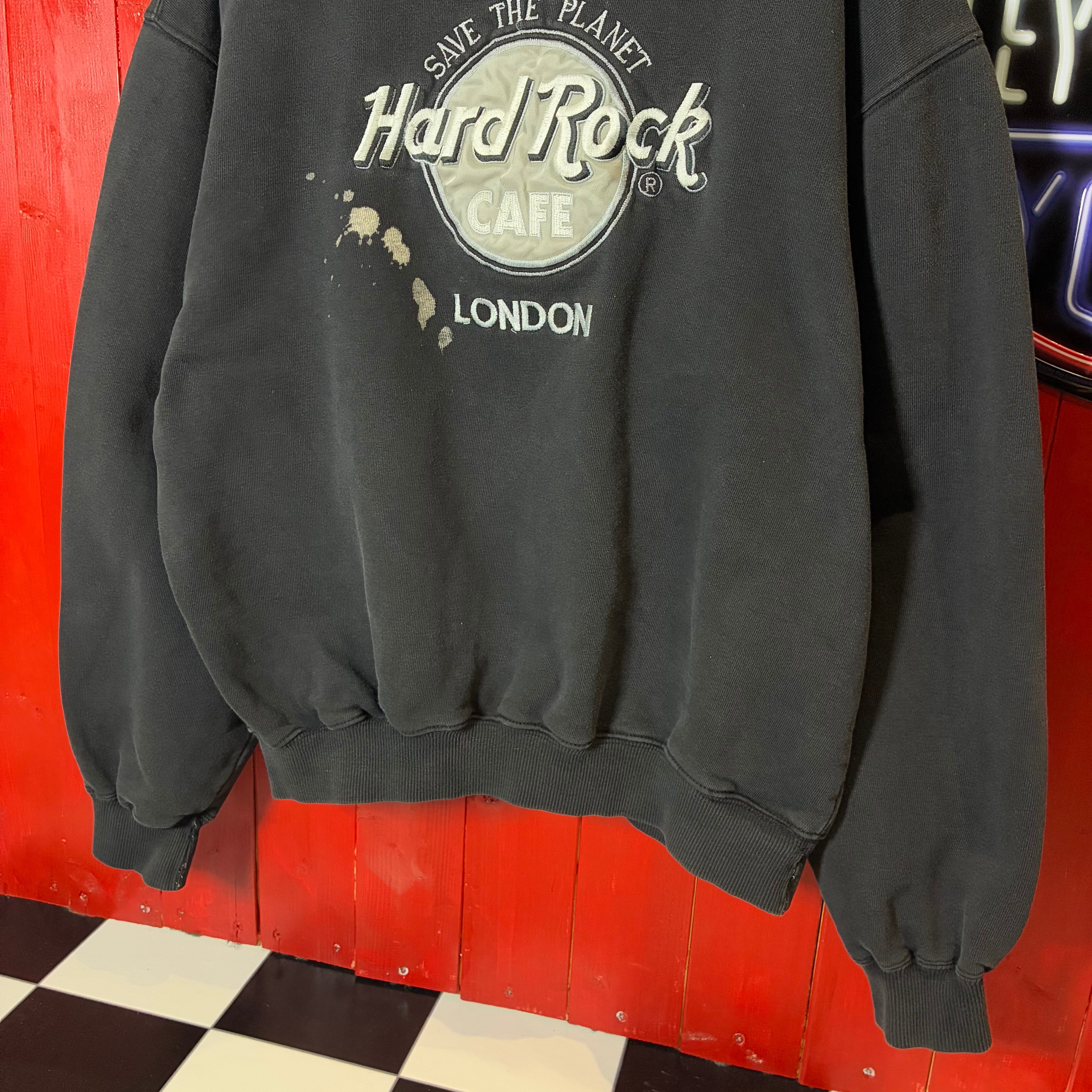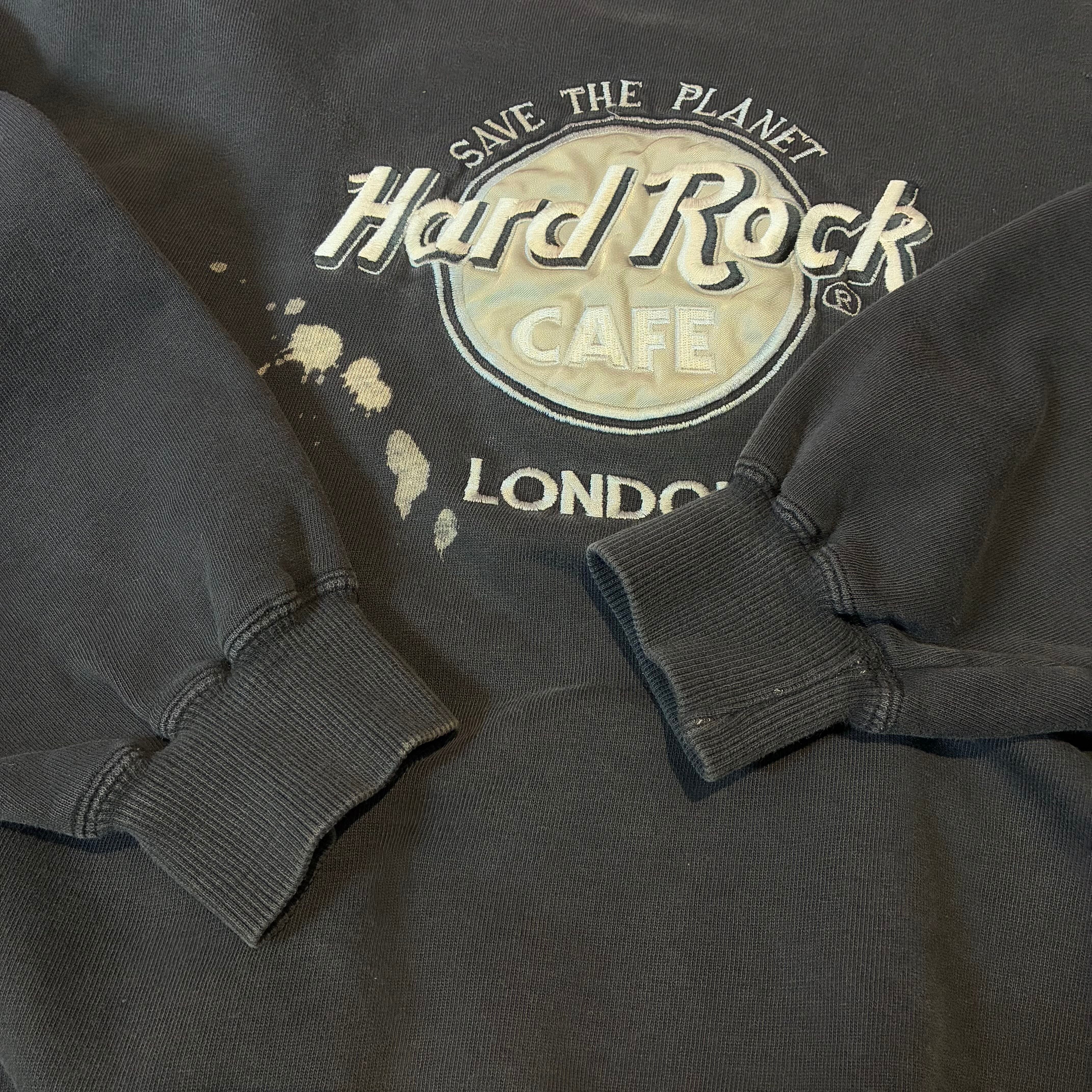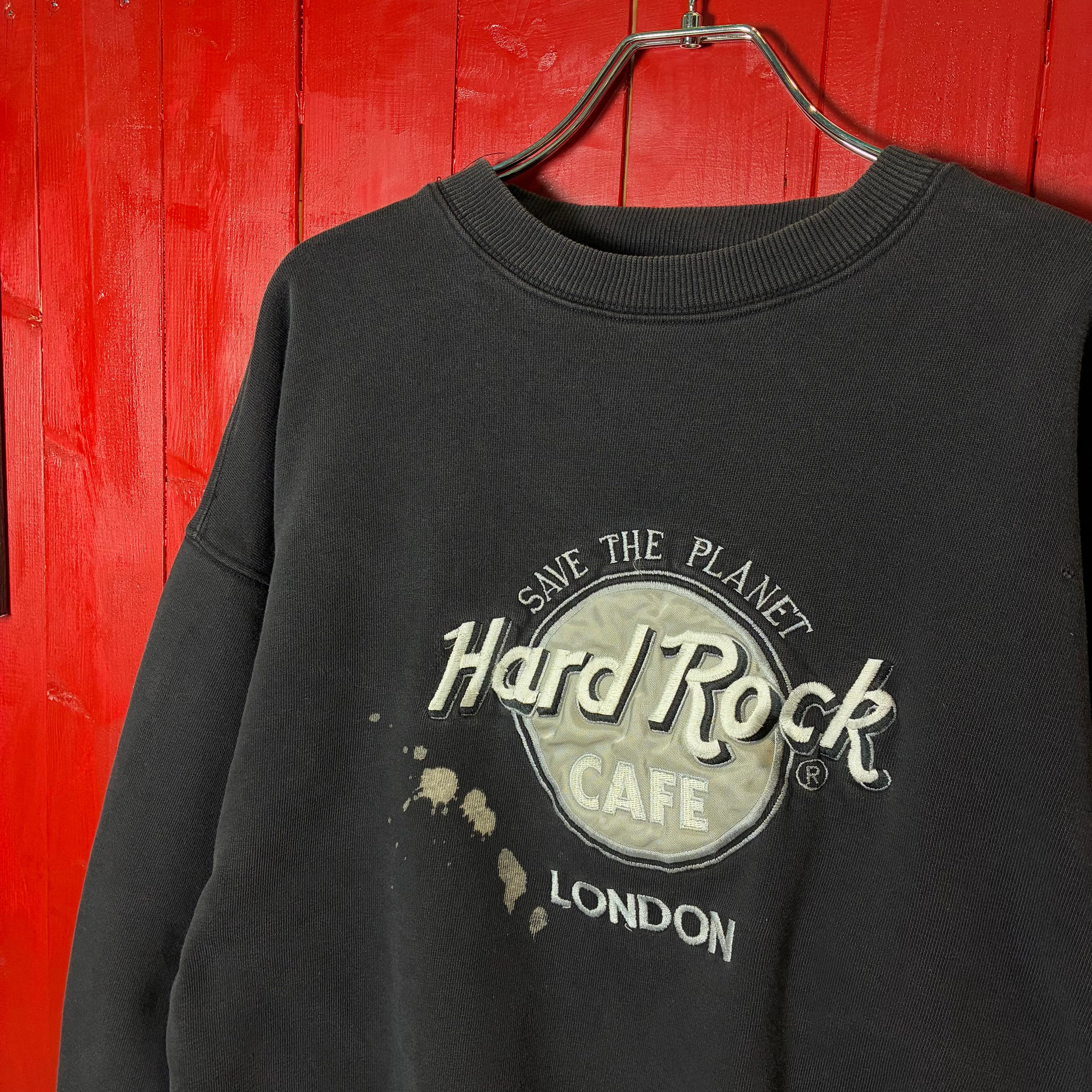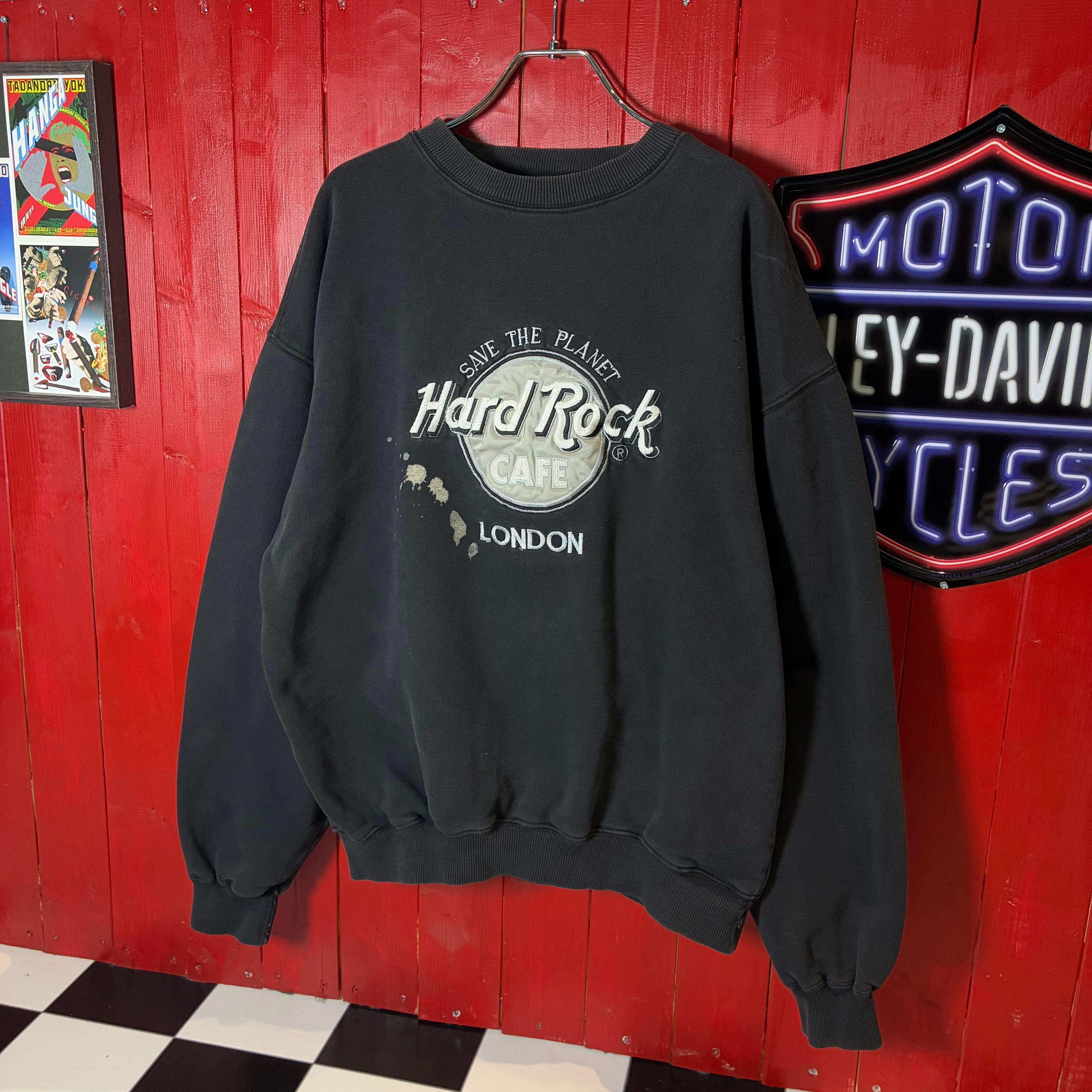 ハードロックカフェ 90sスウェット HardRockCafe LONDON ブラックフェード 刺繍スウェット ヴィンテージスウェット USA古着
