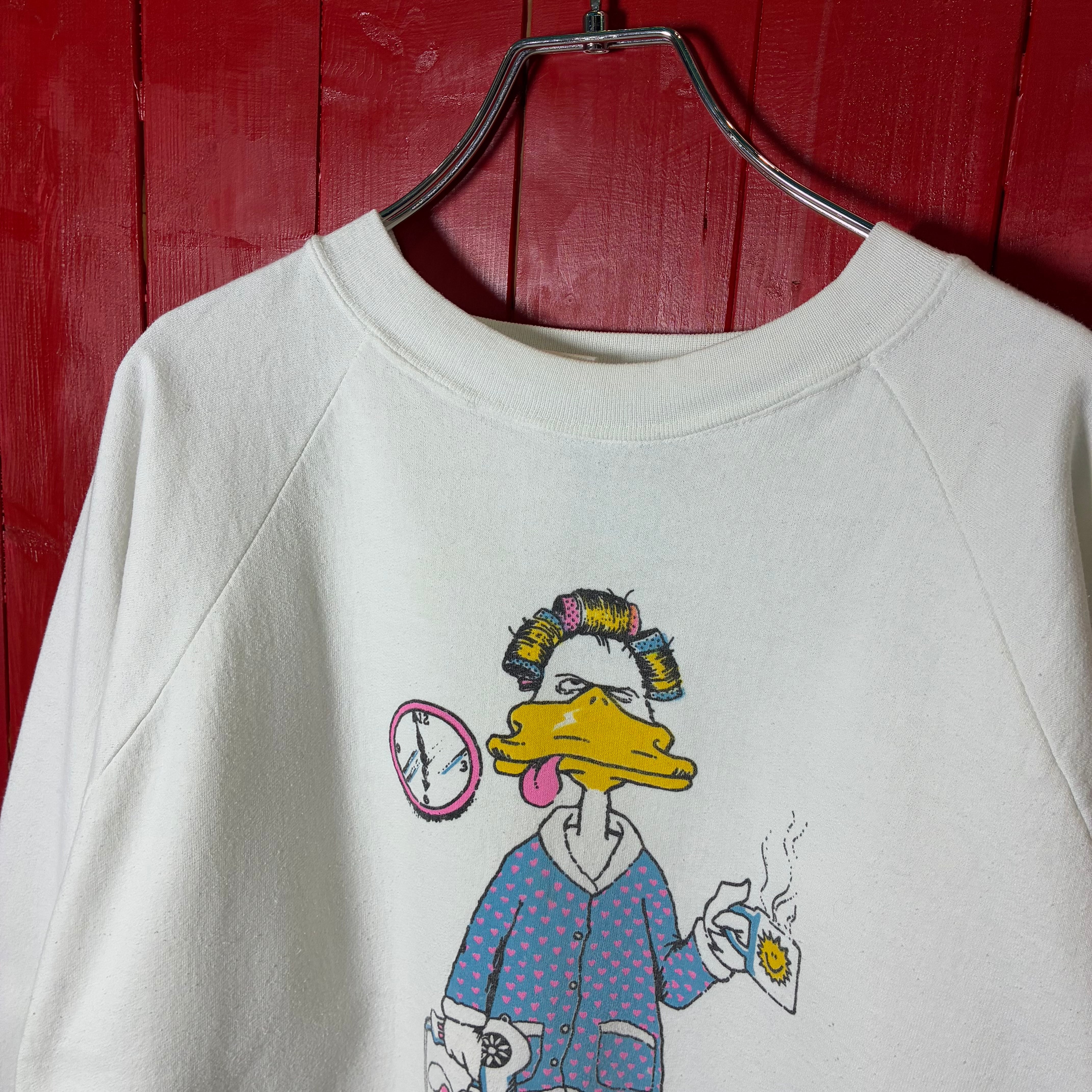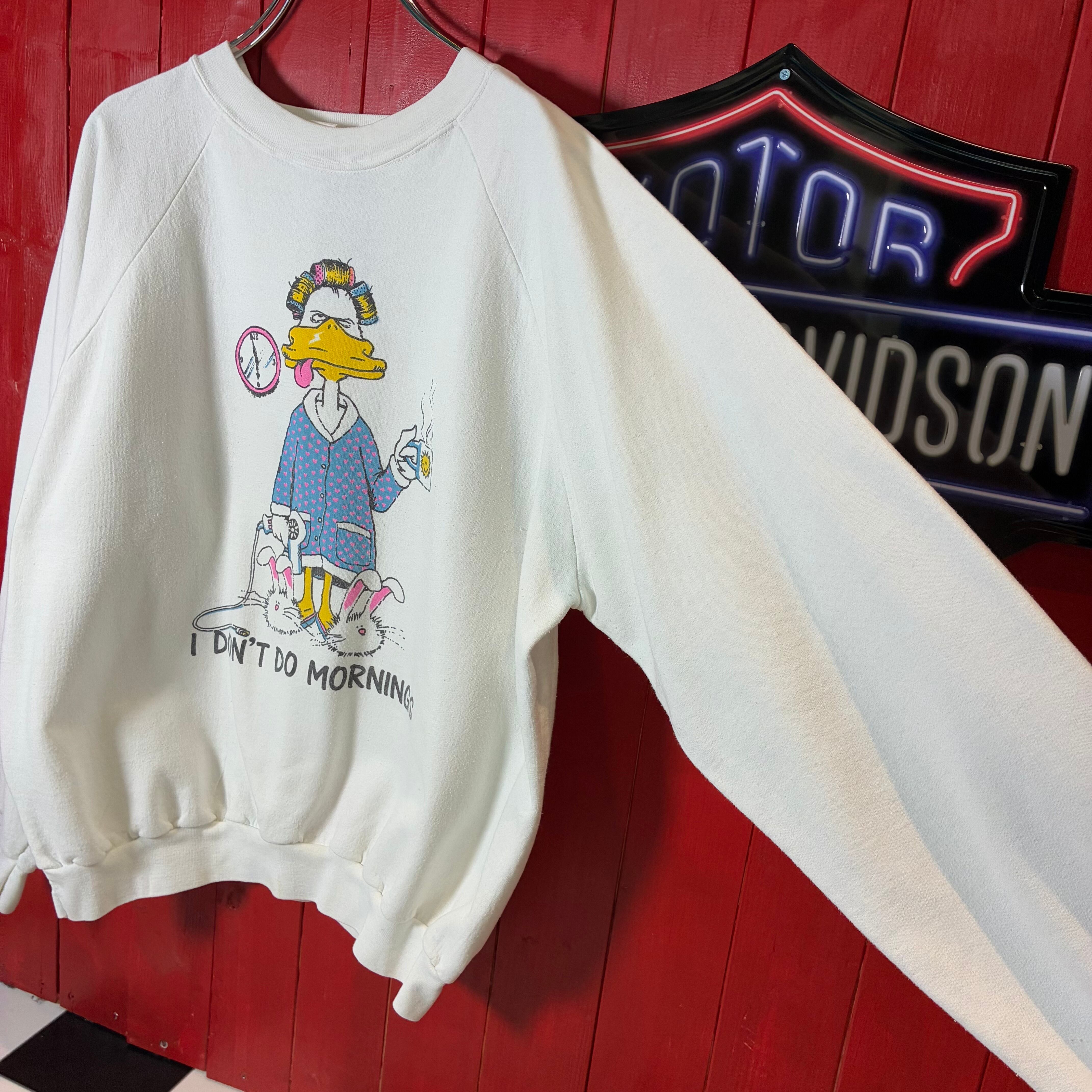 80s, USA製, ヴィンテージスウェット, ラグランスリーブ, アニマルプリント, ユーモア, ホワイトスウェット, 古着, アメリカ古着