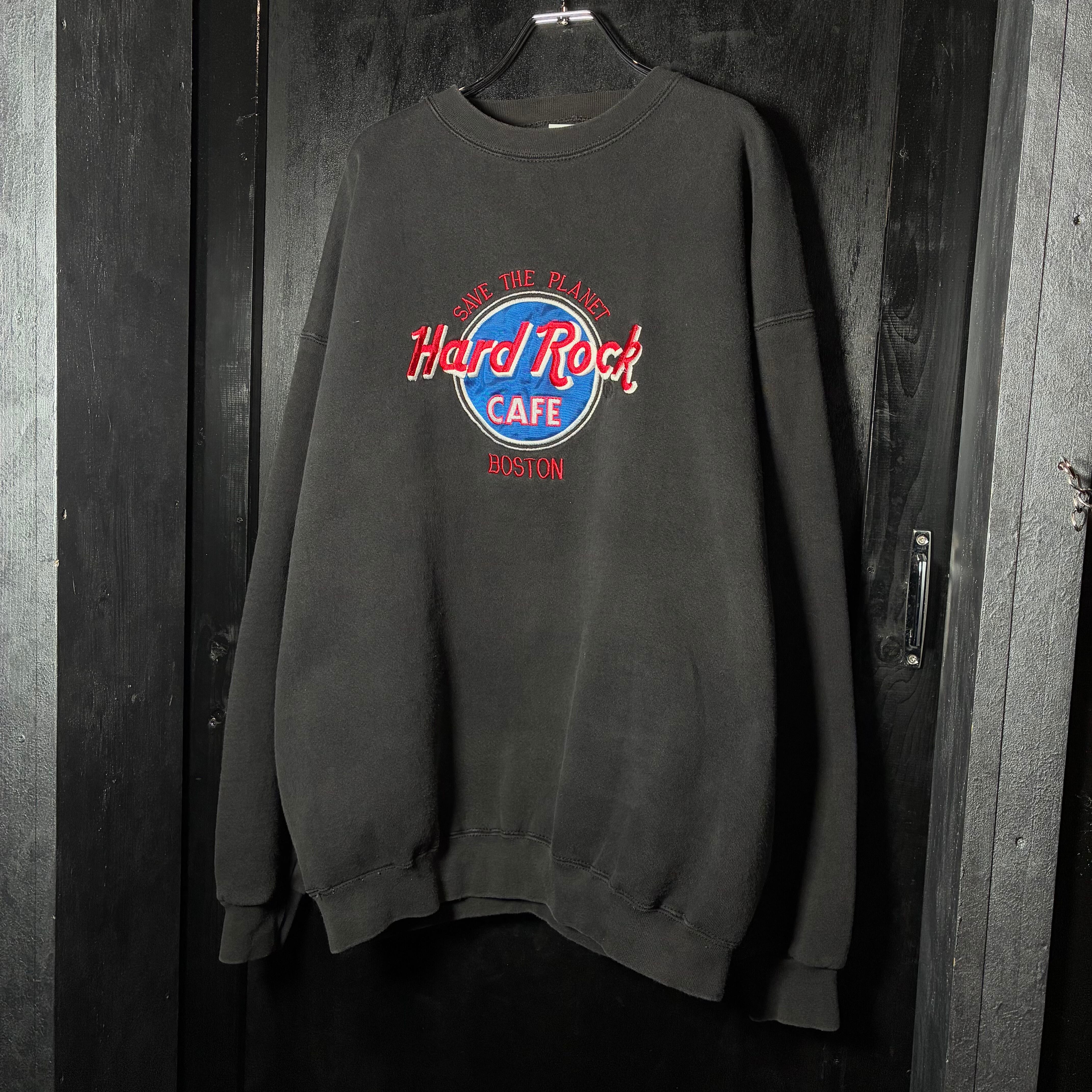90s USA製 Hard Rock Cafe BOSTON スウェット ブラック×赤刺繍 ハードロック