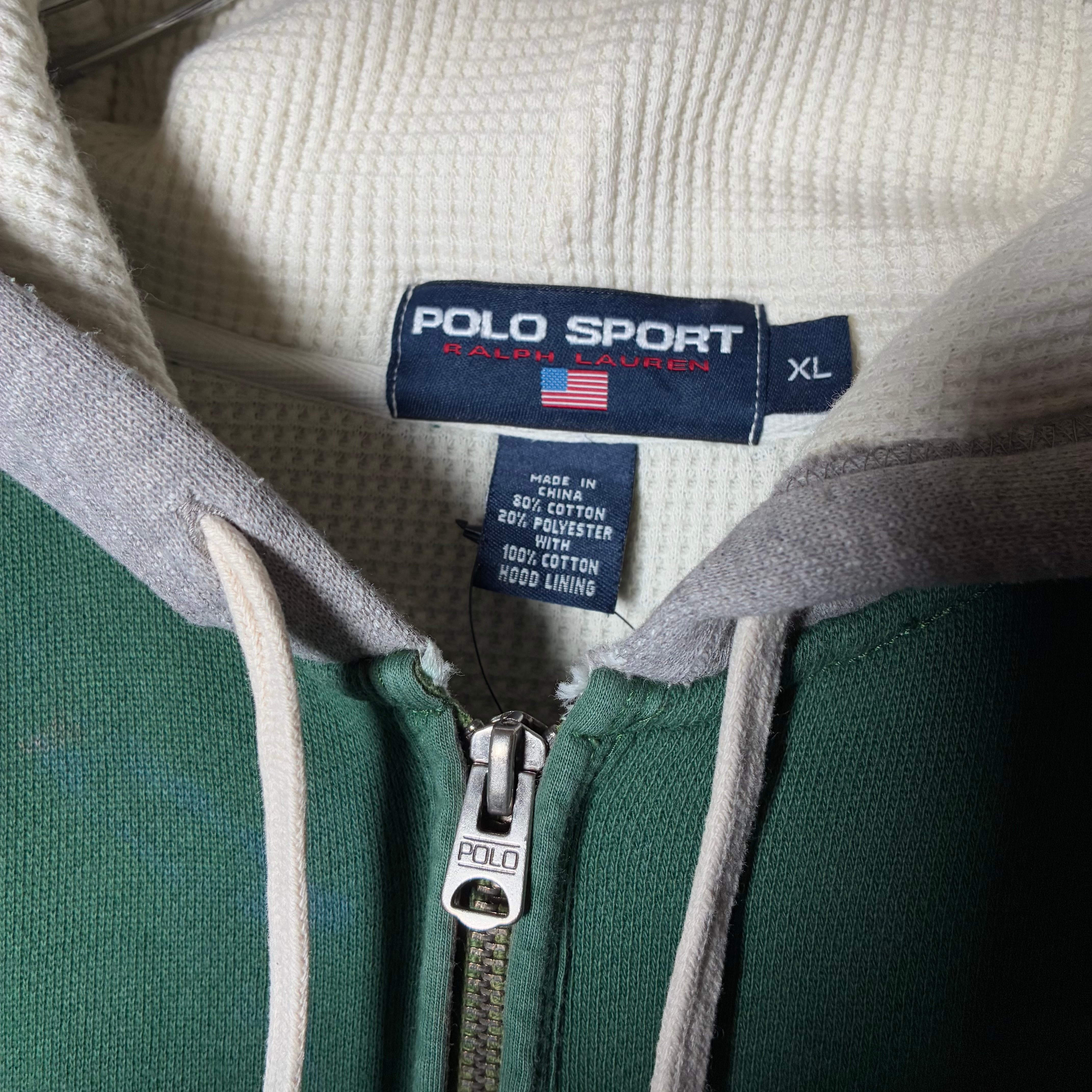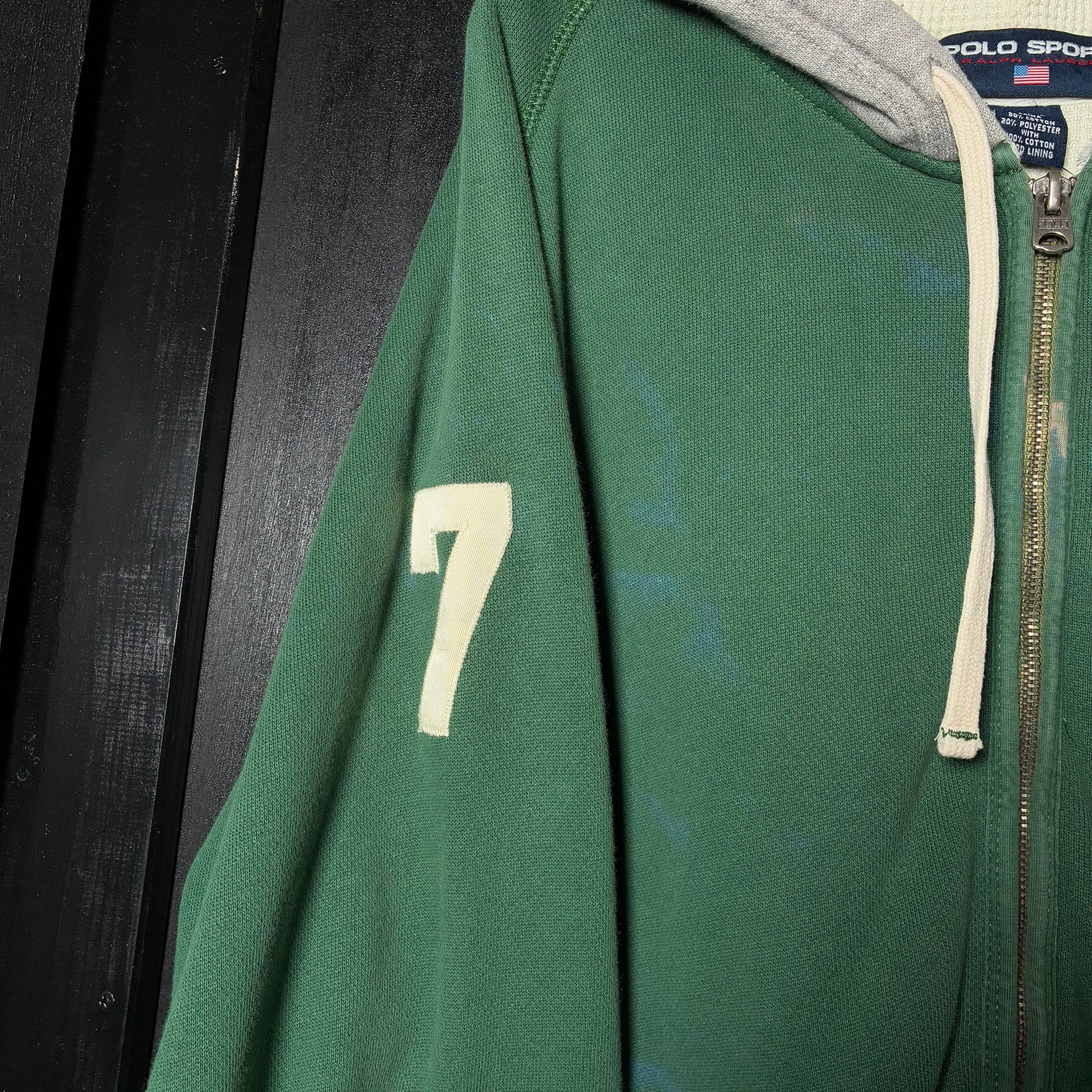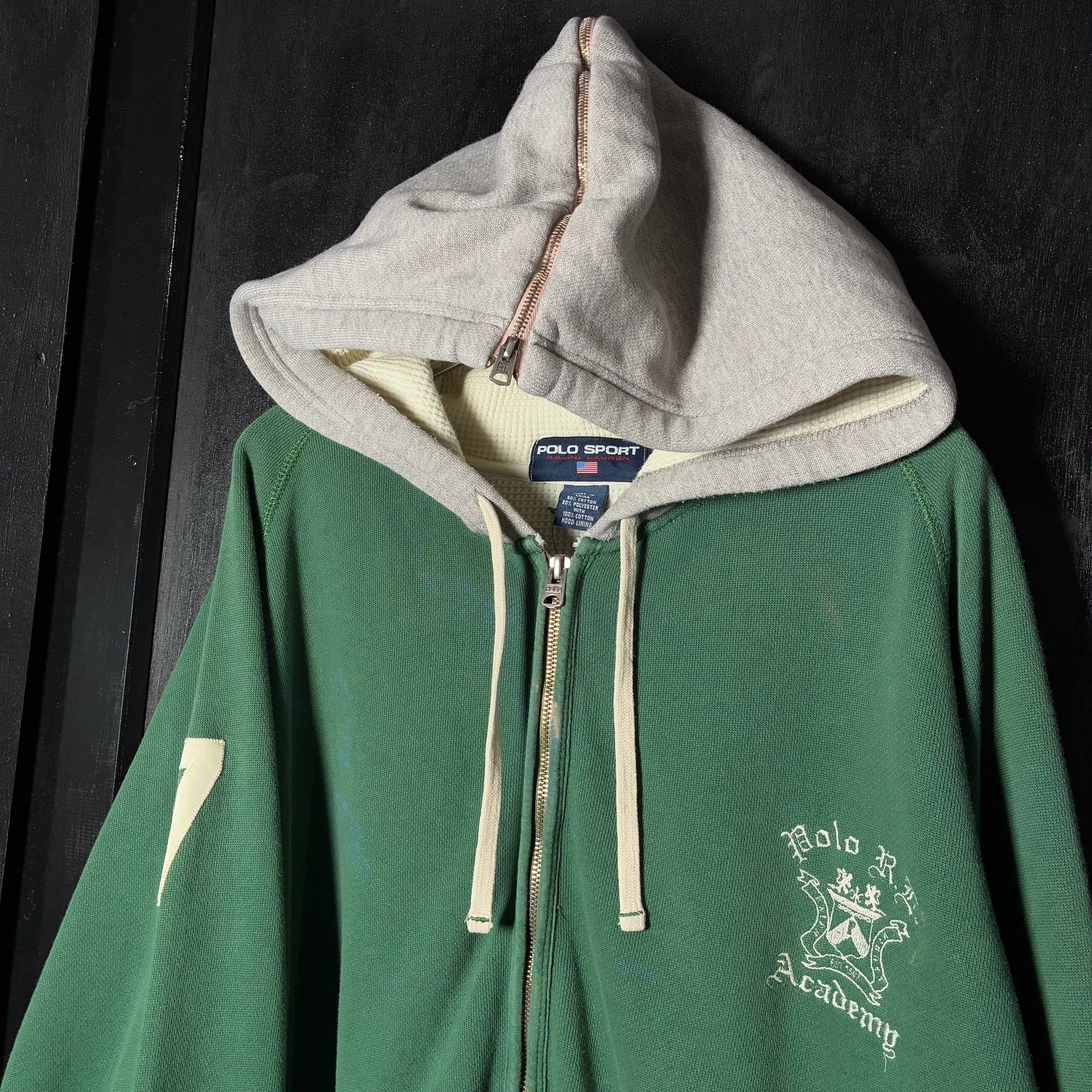 90s POLO SPORT ナンバリング ジップパーカー フード裏サーマル 緑 ポロスポ