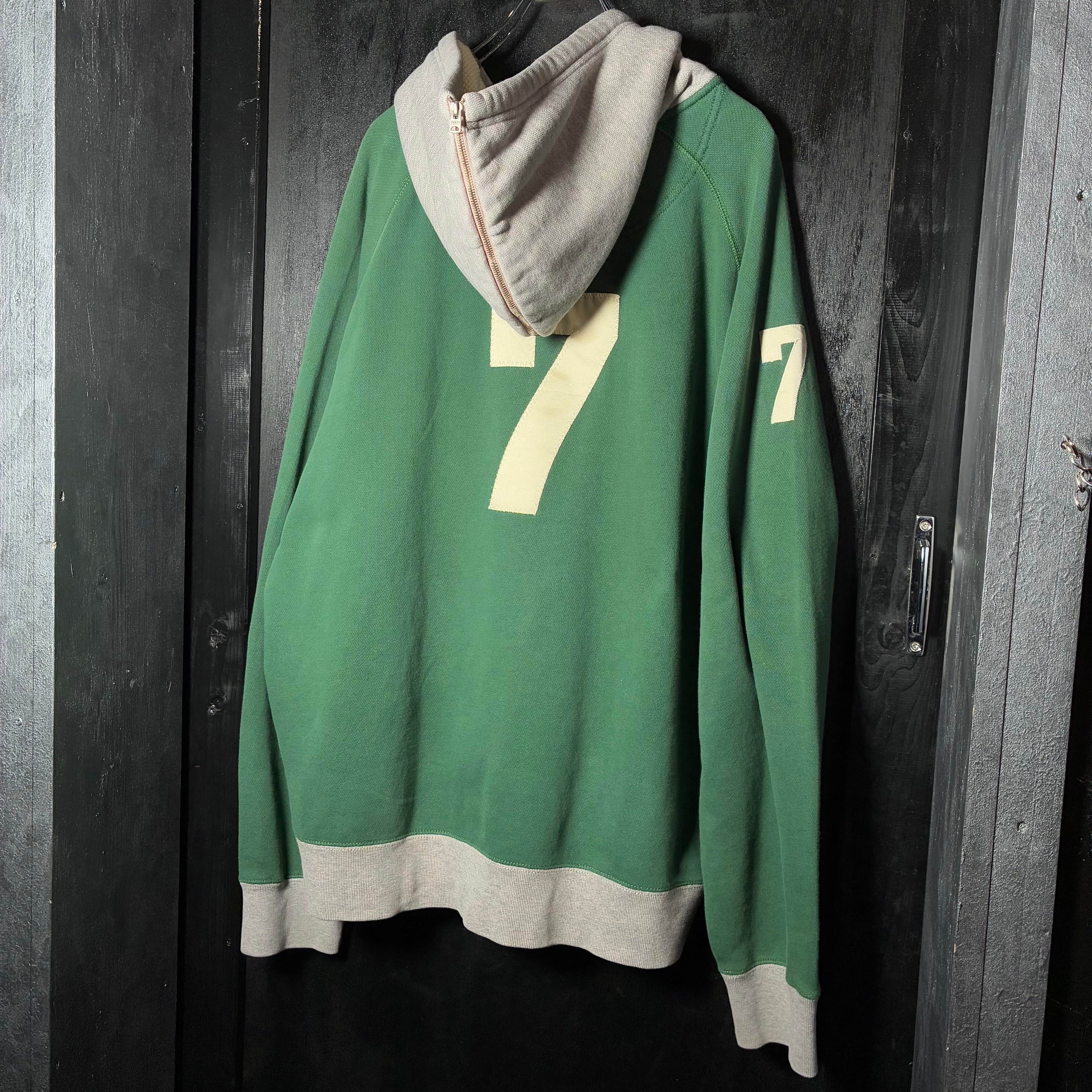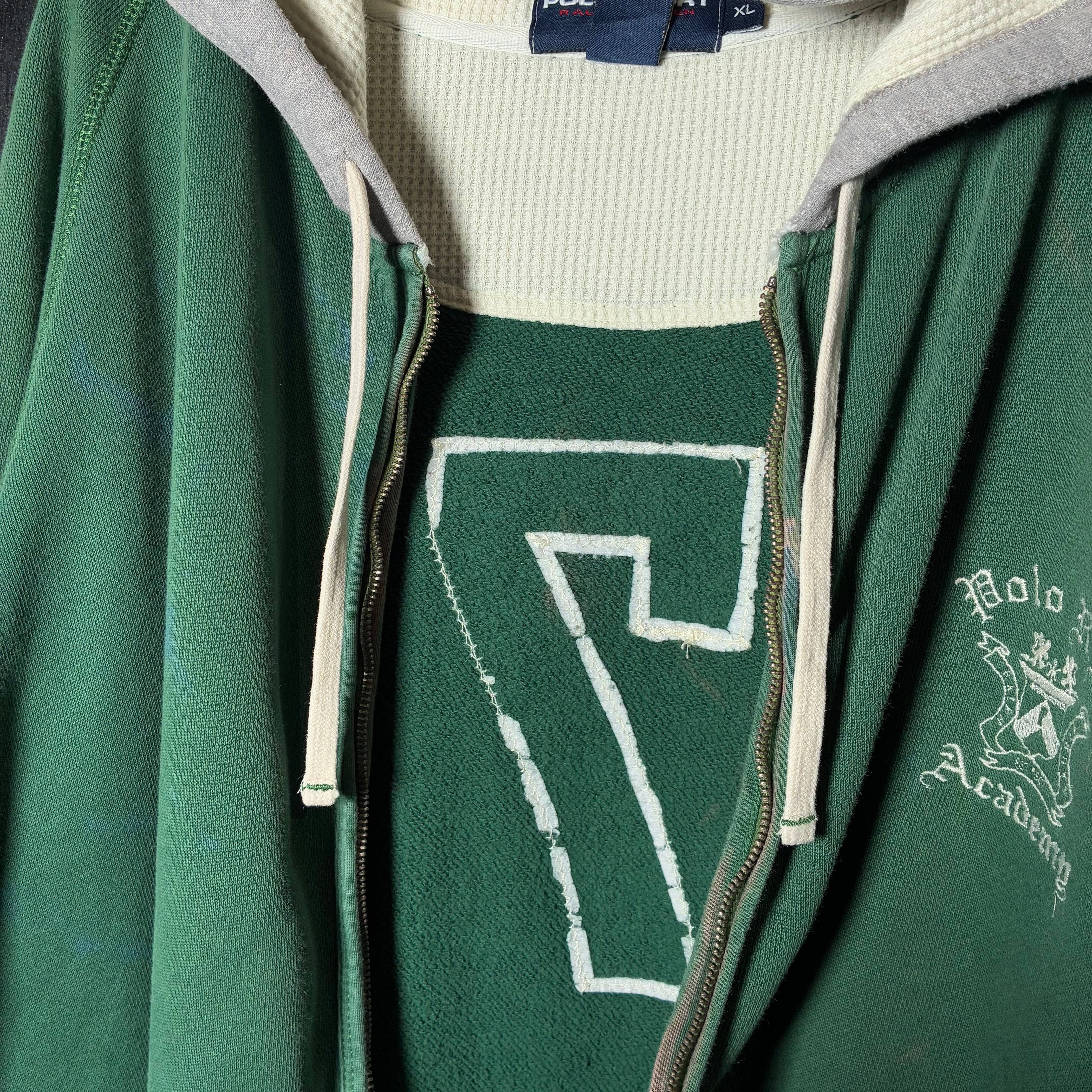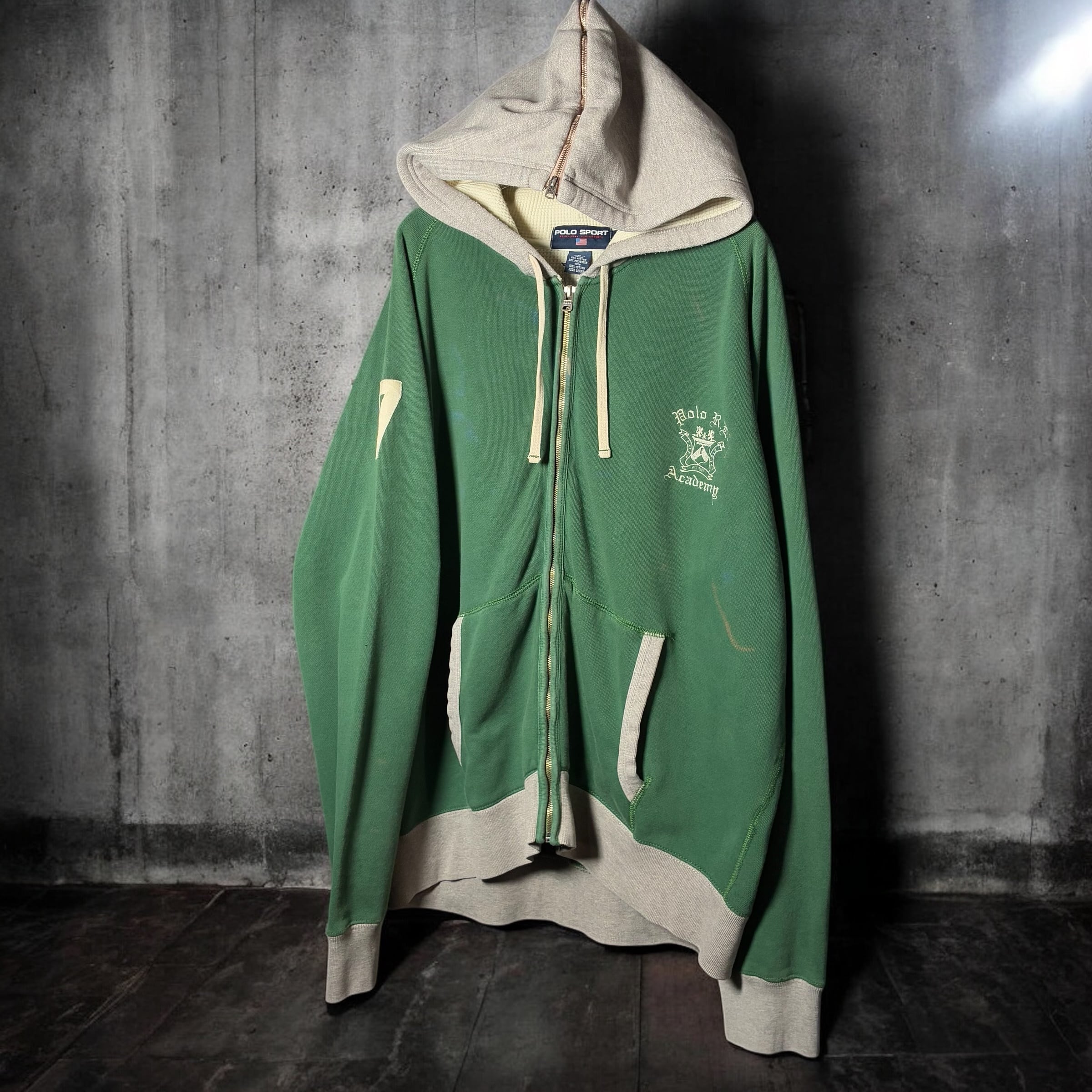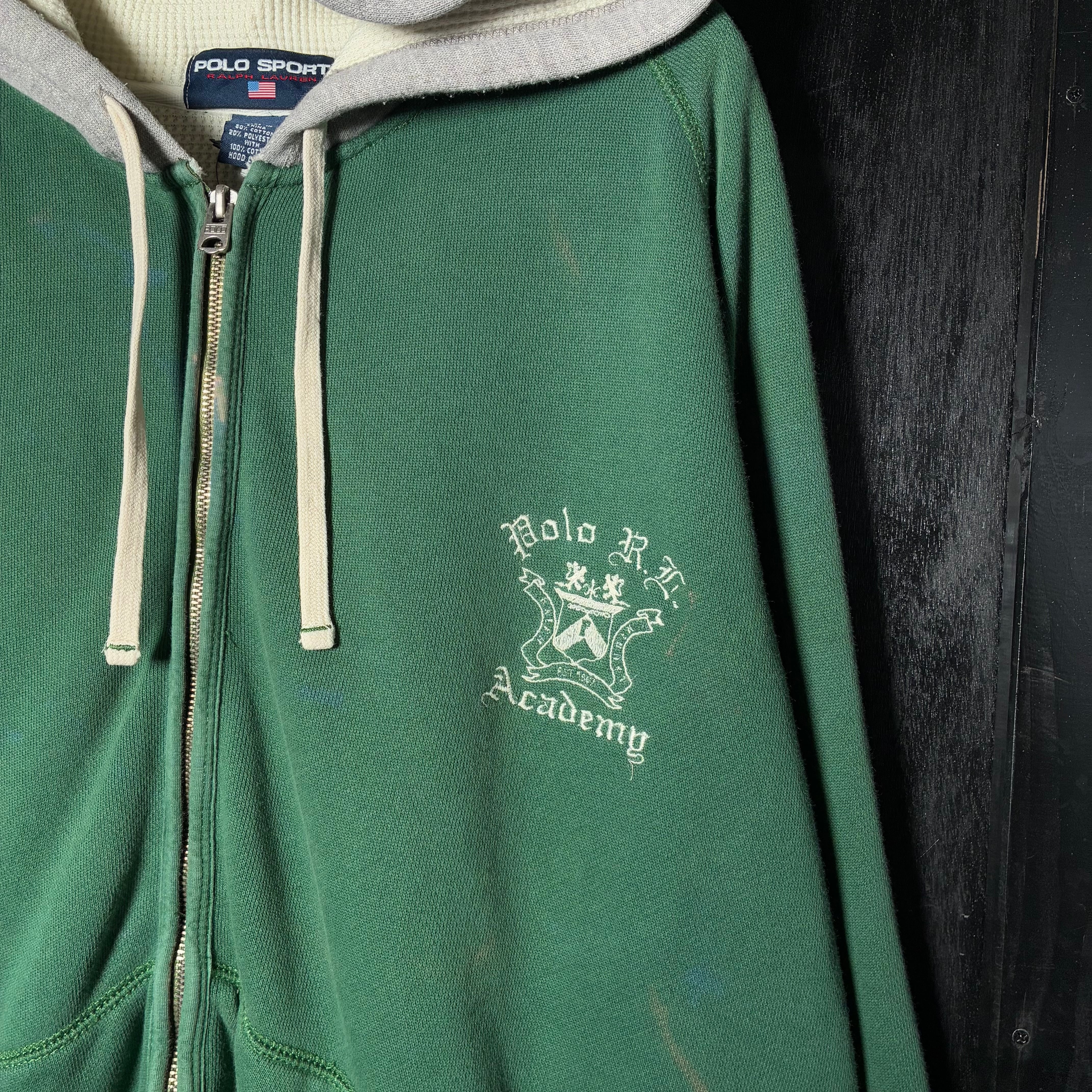 90s POLO SPORT ナンバリング ジップパーカー フード裏サーマル 緑 ポロスポ